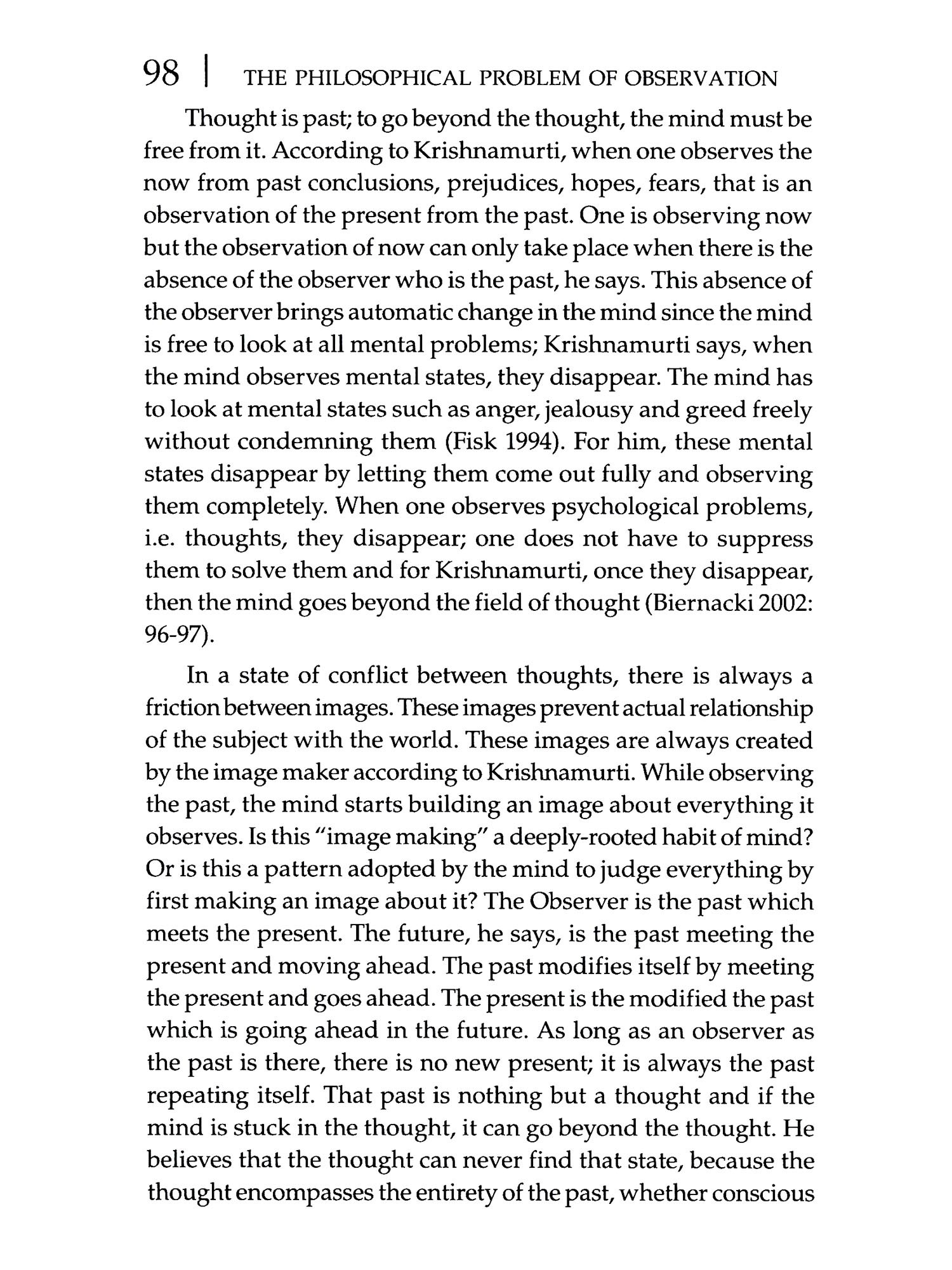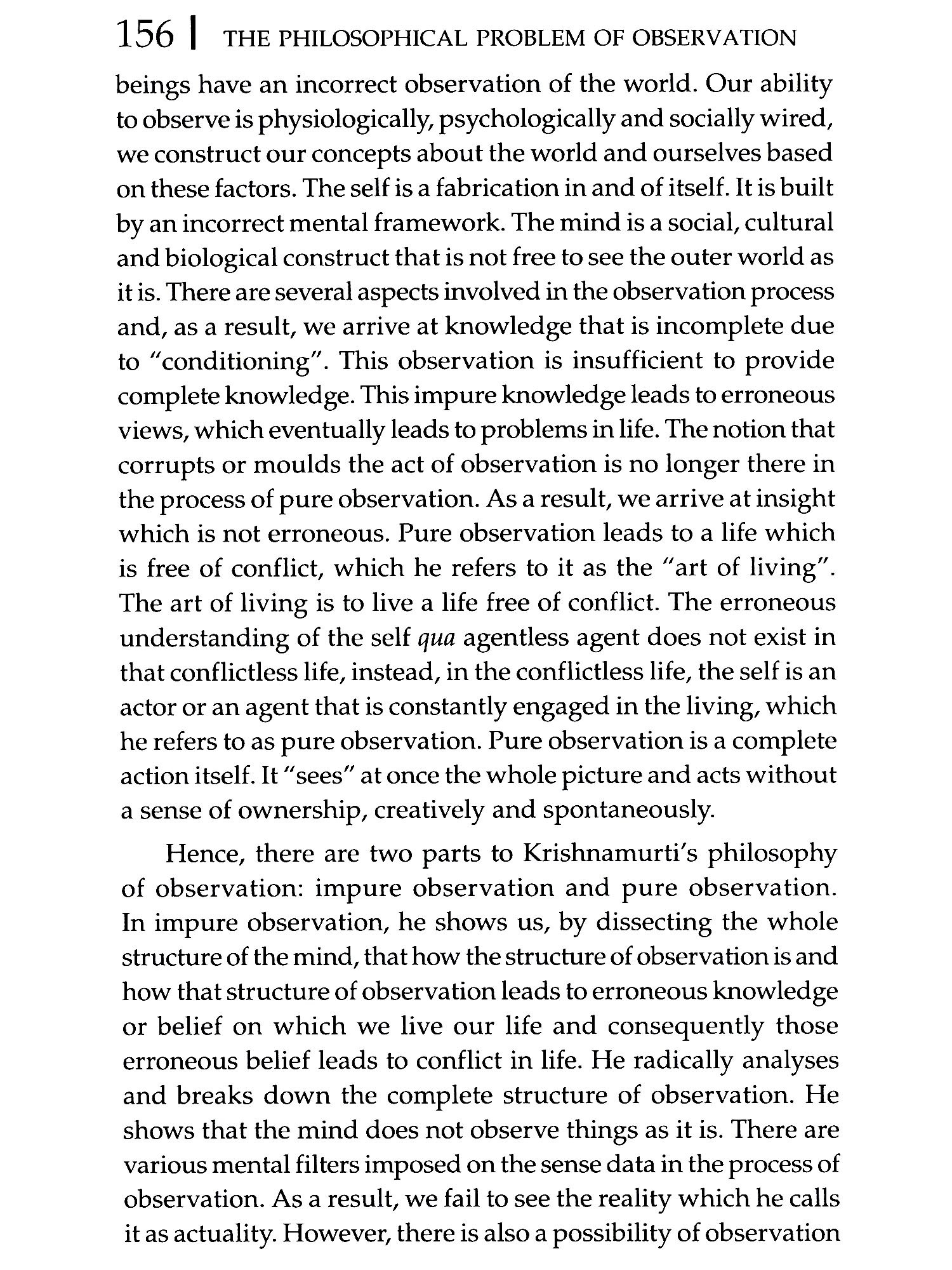 The Philosophical Problem of Observation with Reference to David Hume and J. Krishnamurti