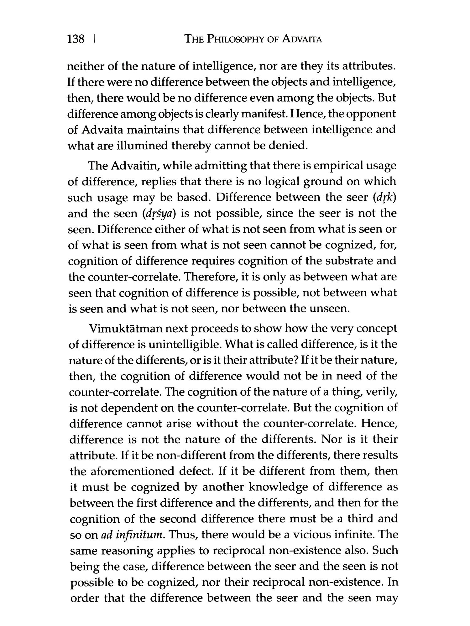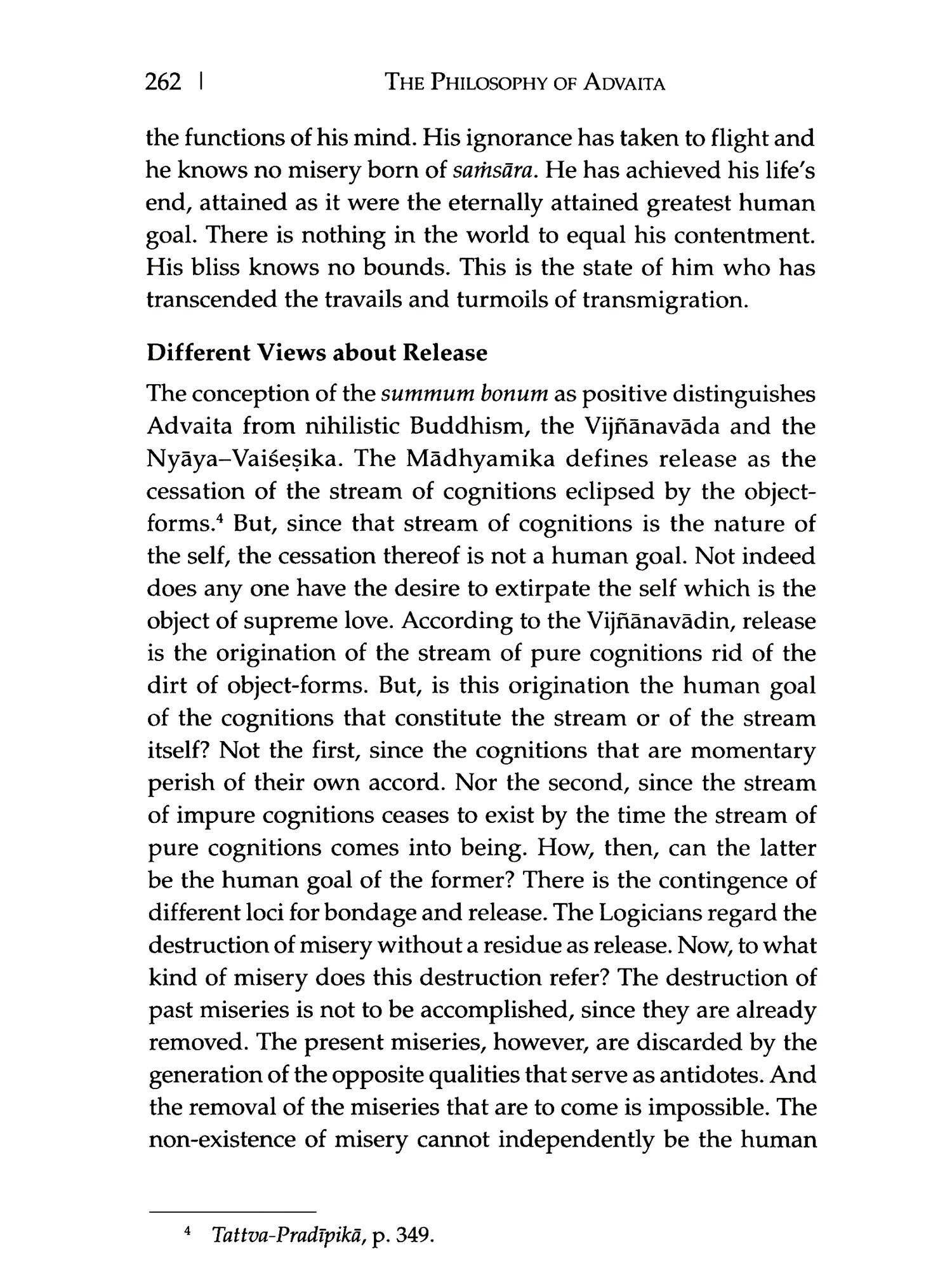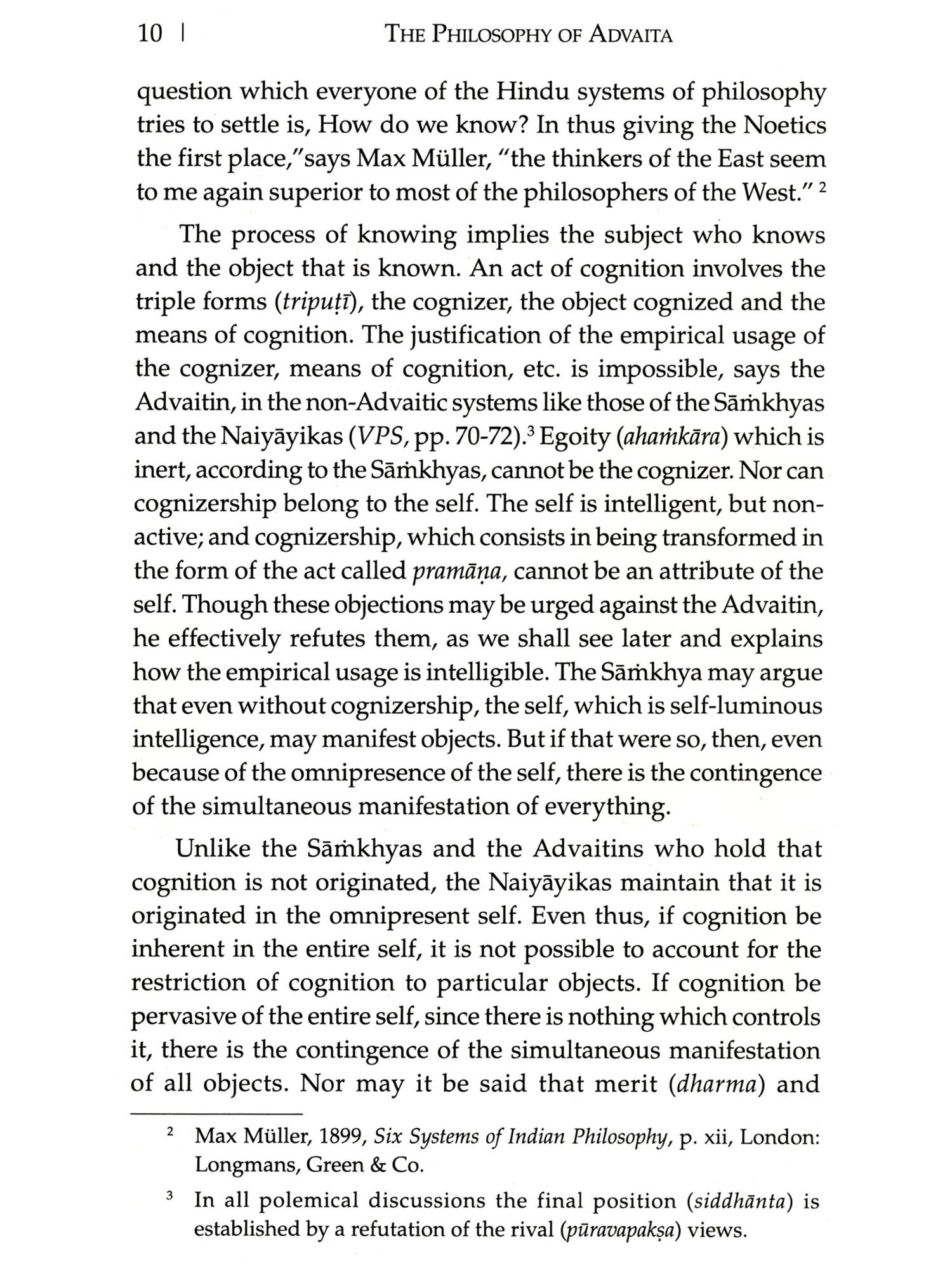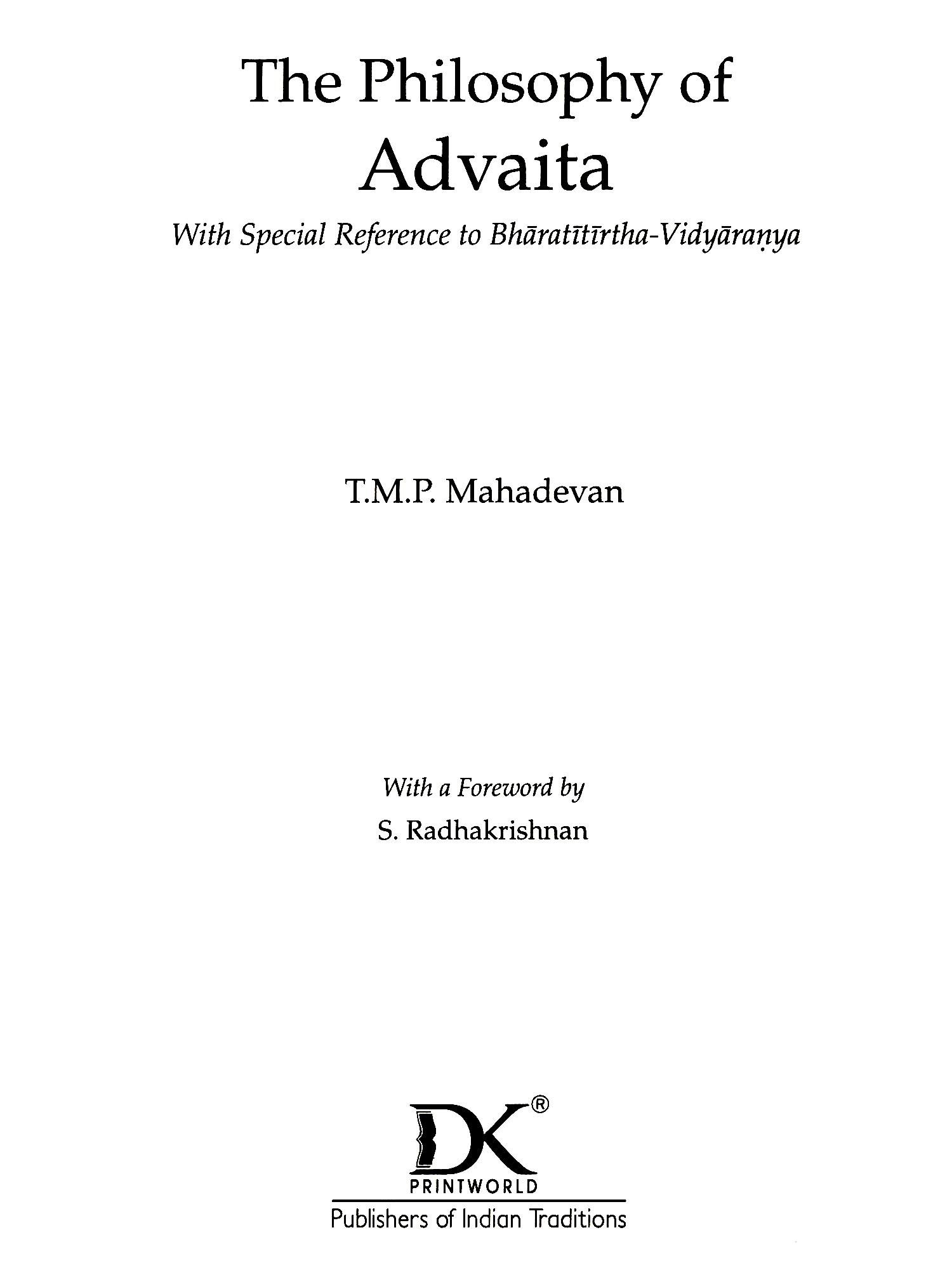 THIS is a revised edition of my doctoral thesis first published in 1938. The thesis was written during the years 1933-35 under the guidance of the late Professor S.S. Suryanarayana Sastri. After the publication of this work which represents an important phase of the post-Sankara dialectics, I have had occasion to bring out a study of the philosophy of the great pre-Sańkara Advaitin, Acārya Gaudapāda. This work entitled Gaudapada: A Study in Early Advaita was published by the University of Madras in 1952 (second edition, 1954). Just at present a translation of Sureśvara's Sambandha-Värttika, with introduction, notes and extracts from three unpublished commentaries, is in the press, and will be released shortly by the University. Thus my studies in Advaita which started in 1933 have been a source of solace to me; and it is my conviction that they will continue to inspire me. The scope of the present work is indicated in the Preface to the first edition. While revising this work I have made no substantial change. The first edition was sponsored by Messrs Luzac & Company, London. The present one is published by Messrs Ganesh & Company, Madras, who are well known for their books on Indian philosophy and religion. Dr V.A. Devasenapathi and Shri P.K. Sundaram, my colleagues in the Department of Philosophy, University of Madras, have helped me in preparing the revised edition for the press and by reading the proofs.