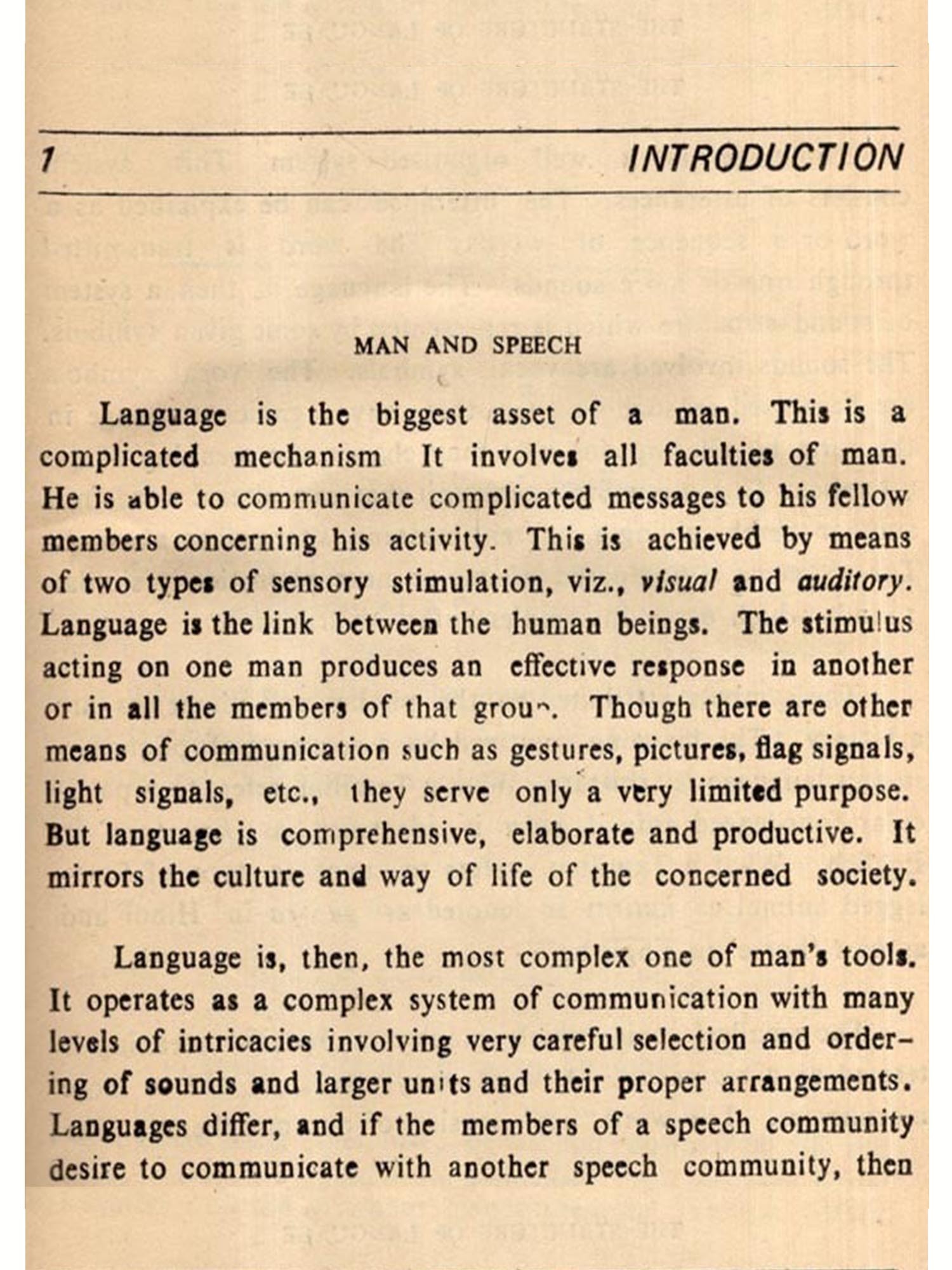 Language is the biggest asset of a man. This is a complicated mechanism It involves all faculties of man.