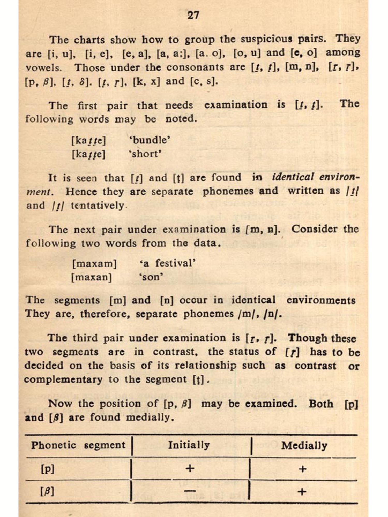 Language is a well organised system. This system consists of utterances. The utterance can be explained as a word or a sequence of words. The word is transmitted through one or more sounds. The language is, then, a system of sound structure which is represented by some given symbols. The sounds involved are vocal symbols. The vocal symbols are organised in such a way that any significant change in the form by altering one unit may change the meaning of the utterance. This minimum vocal unit that can alter a word into another thereby giving a different meaning is termed as phoneme. The phoneme is composed of one or more phonetically similar sounds which occur in complementary distribution.