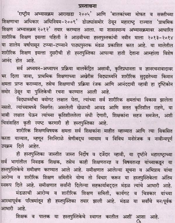 शारीरिक शिक्षण हस्तपुस्तिका (इयत्ता आठवी): Physical Education Handbook Class-8 (An Old and Rare Book in Marathi)