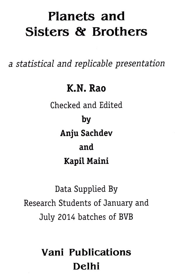 This is the third statistical research being produced this year: the first is the near accurate timing of the birth of a child through Jaimini astrology given in the Advanced Use of Jaimini's Chara Dasha, the second the Importance of the Ages of 36 and 72 and the third this one Planets and Sisters and Brothers.
