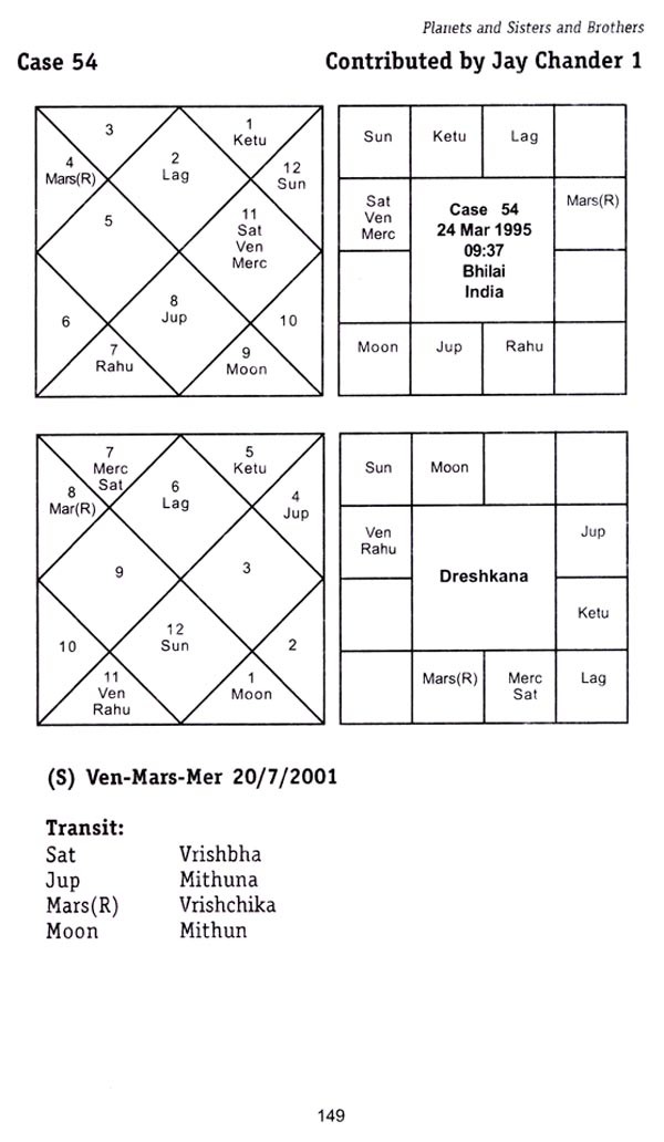 A statistical and replicable astrological research through the techniques of Hindu astrology is not easy as it involves use of vargas and dashas with transits. In this way, if one horoscope is used it means the use of Dreshkona for this chosen research, Vimshottari dasha of three levels and transits of Saturn, Jupiter, Mars and Moon nine factors are taken into consideration. In this way, one hundred horoscopes will mean using nine hundred ones. And then the analysis includes the aspects of different planets which includes the special aspects of Saturn, Mars and Jupiter.