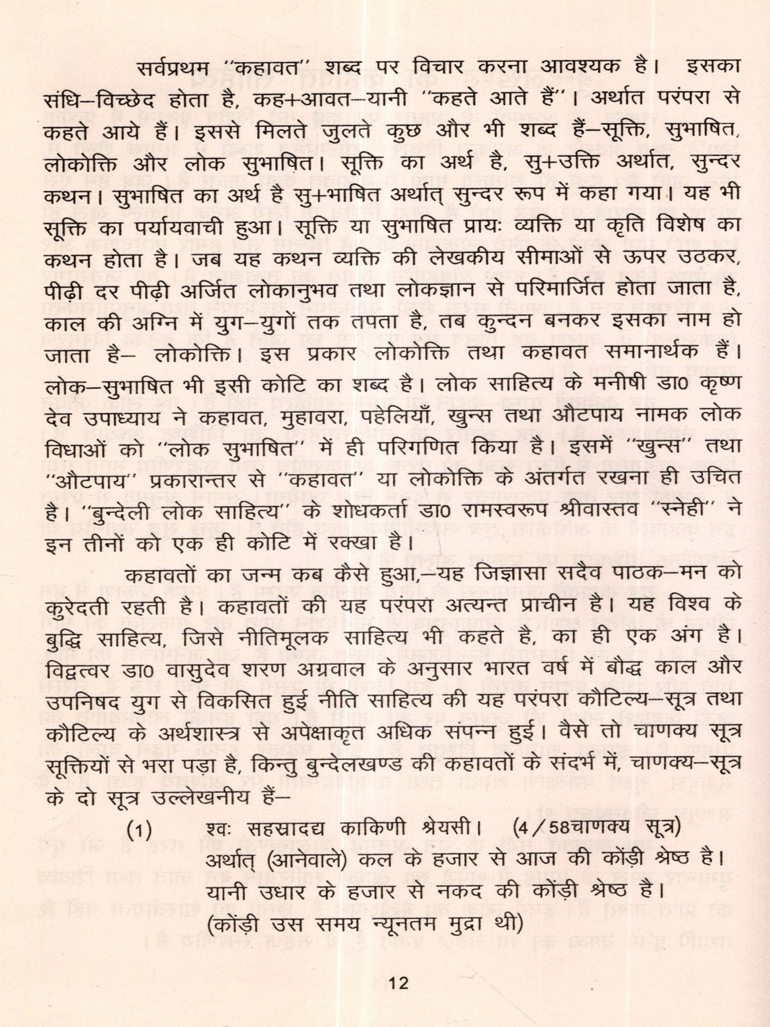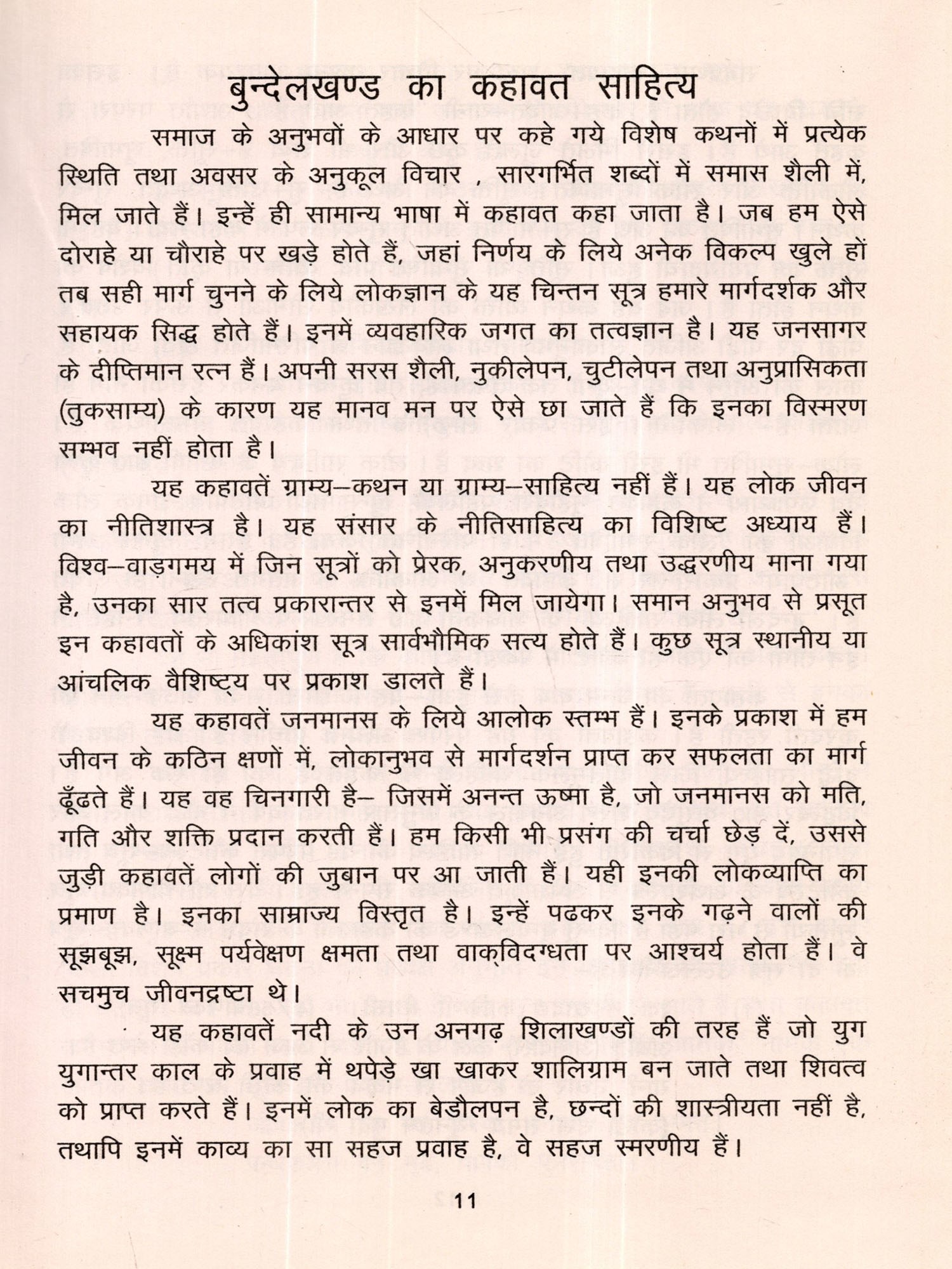 यह कहावतें ग्राम्य-कथन या ग्राम्य-साहित्य नहीं है। यह लोक जीवन का नीतिशास्त्र है। यह संसार के नीति साहित्य का विशिष्ट अध्याय है। विश्व-याङ्ङ्गमय में जिन सूत्रों को प्रेरक, अनुकरणीय तथा उद्धरणीय माना गया है, उनका सार तत्व प्रकारान्तर से इनमें मिल जायेगा। समान अनुभव से प्रसूत इन कहावतों के अधिकांश सूत्र सार्वभौमिक सत्य होते हैं। कुछ सूत्र स्थानीय या आंचलिक वैशिष्ट्य पर प्रकाश डालते हैं।