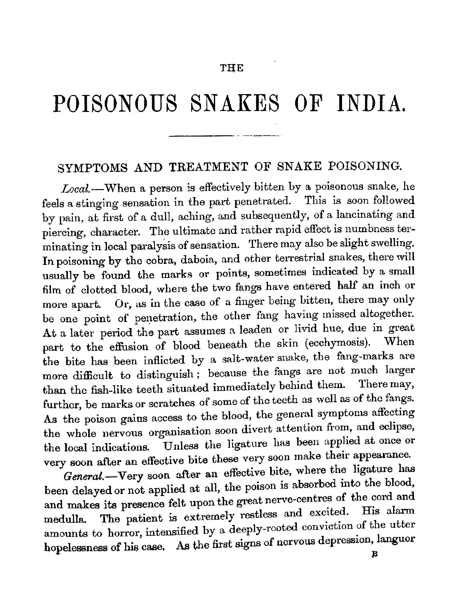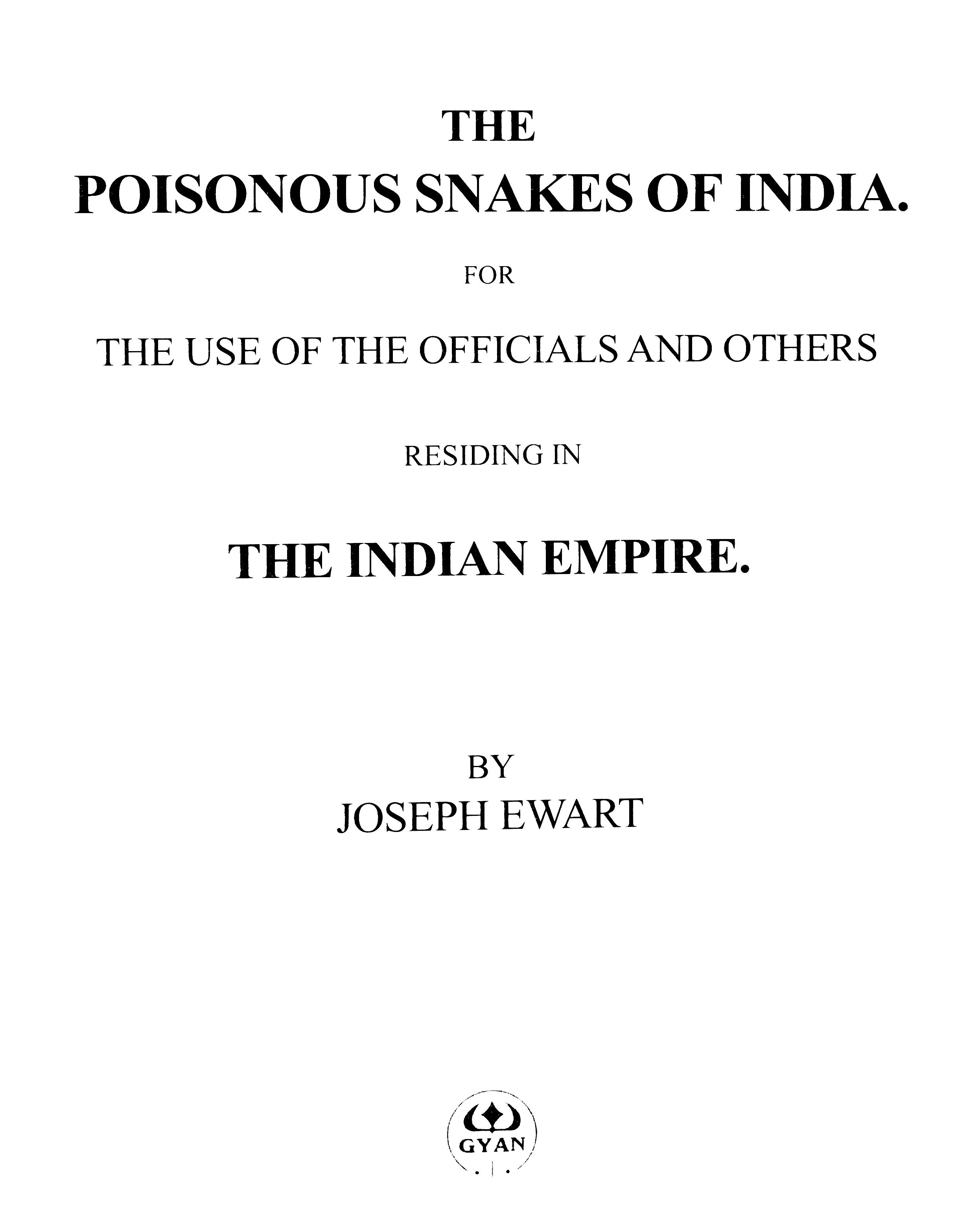 The Poisonous Snakes of India for the Use of the Officials and Others Residing in the Indian Empire