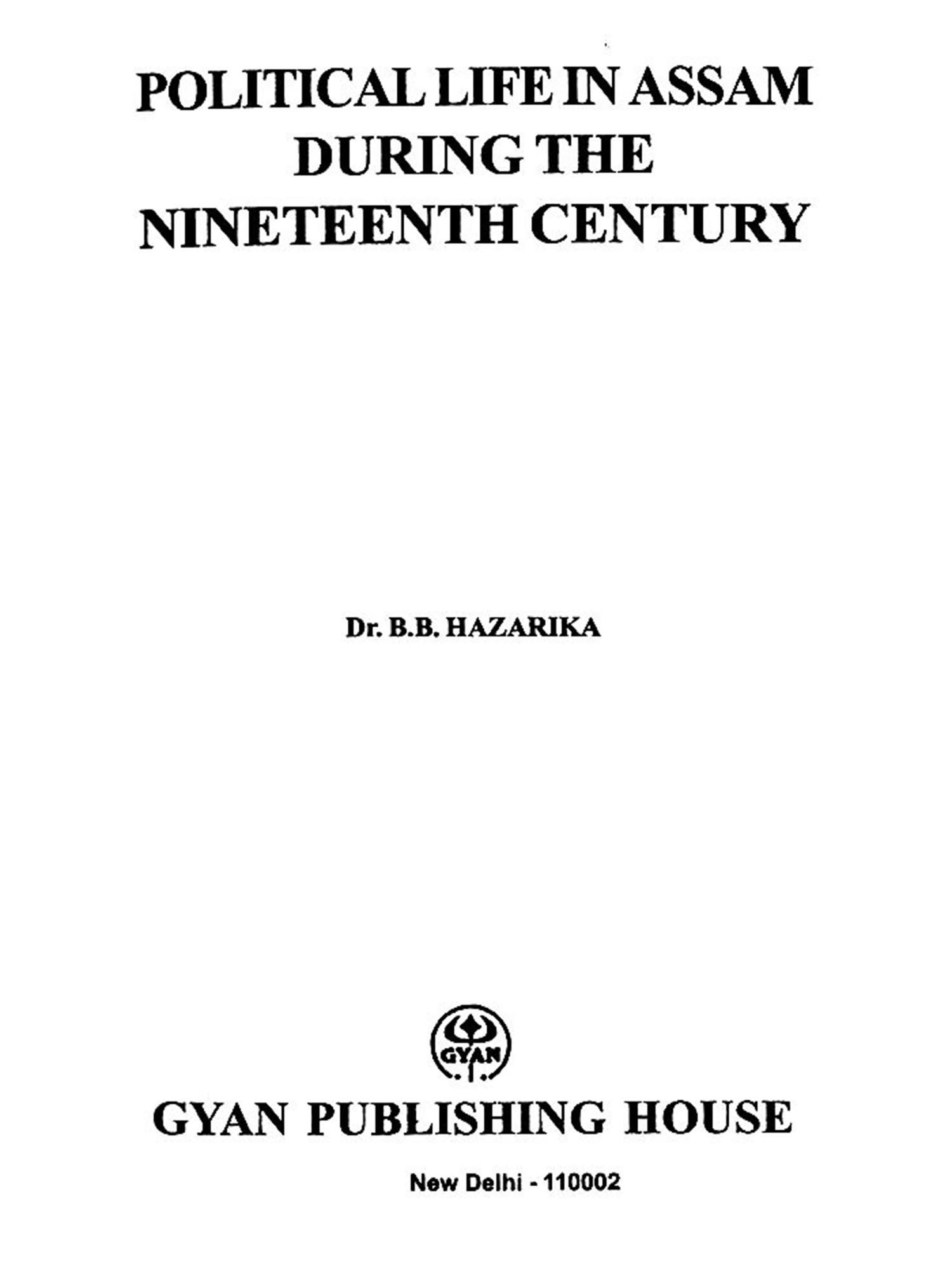 The present work is a critical analysis of the political life of the people of Nineteenth Century Assam which was then besides the Brahmaputra Valley and Barak Valley comprised of the areas now known as the States of Arunachal Pradesh, Manipur, Meghalaya, Mizoram, Nagaland, Sikkim and Tripura and as such the work may also be said a study of the political life of the people of North Eastern Region of india. The period was replete with events and changes which were uneven in respect of the plain and hill people. The author, Dr. Hazarika, has presented in this volume a comprehensive and analytical study of the political evolution of North Eastern Region of India during the course of the Nineteenth Century.