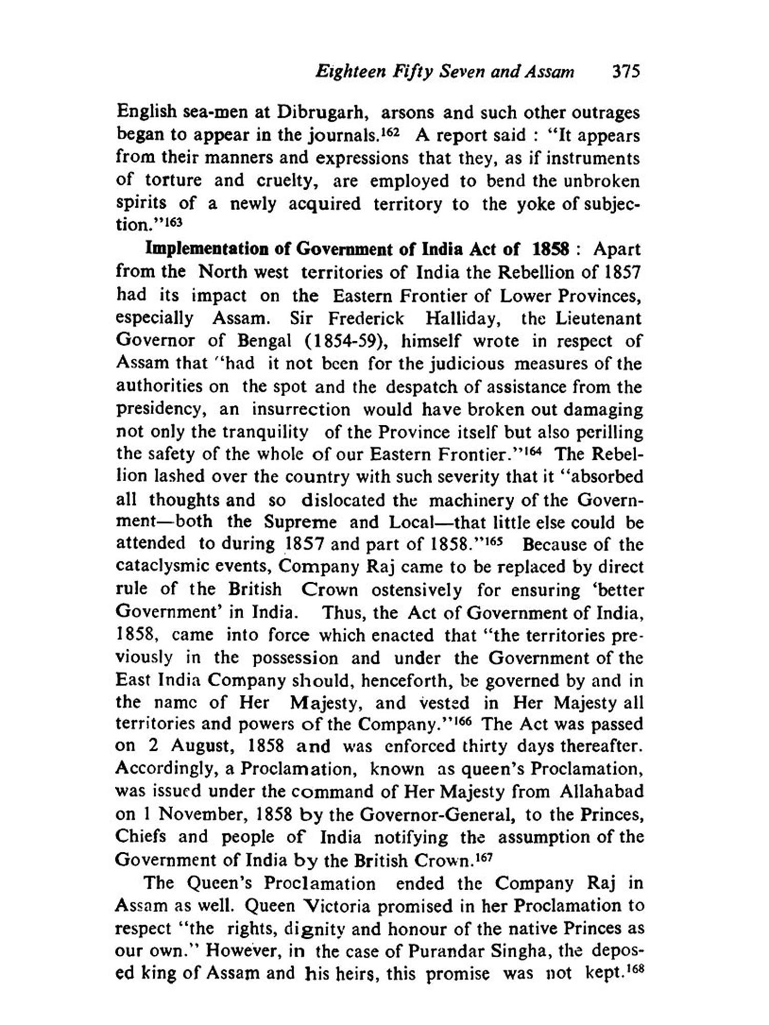 Chapter 6 is a study on the impact of the Rebellion of 1857 on Assam and its consequences for the Province.