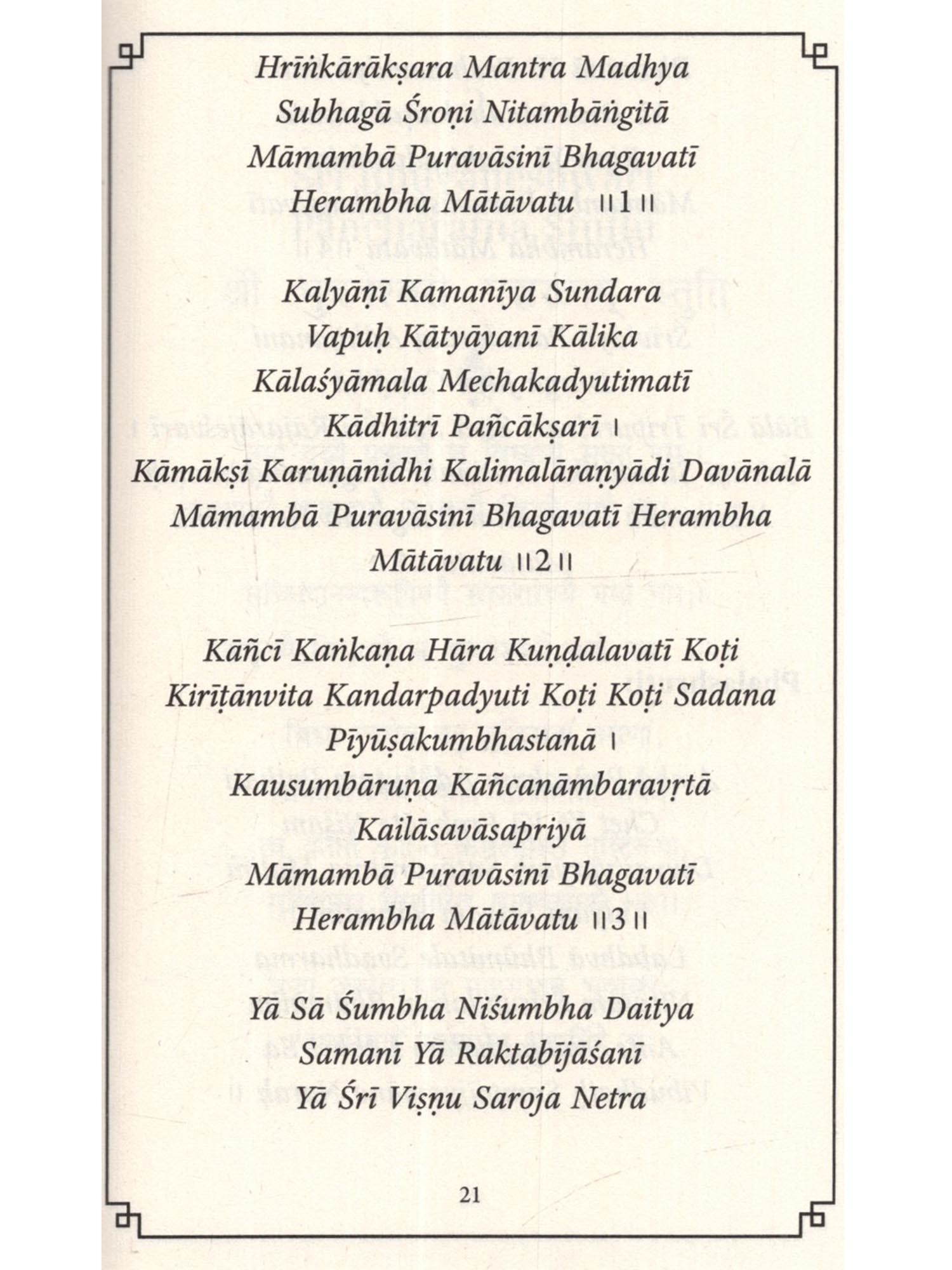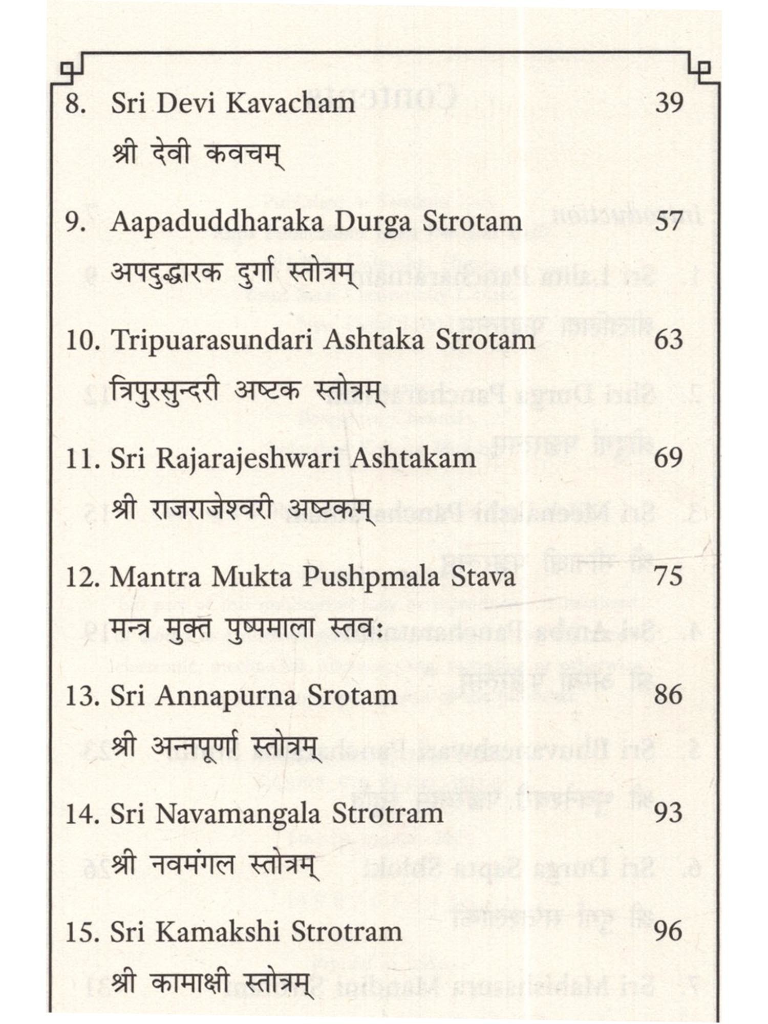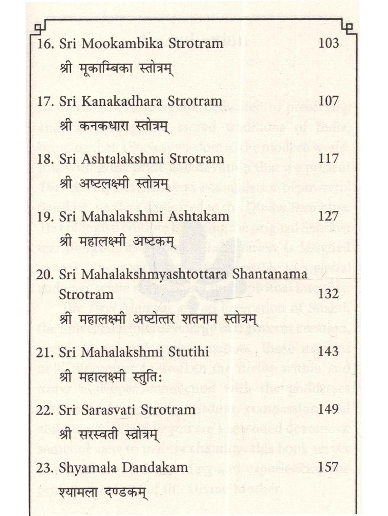 At Sanskriti Press, we are dedicated to preserving and celebrating the sacred traditions of India, bringing their timeless wisdom to the modern world. It is with great pride and devotion that we present The Power of Devi Mantras, a compilation of powerful Sanskrit mantras dedicated to the Divine Feminine. This bilingual edition, featuring the original Sanskrit text alongside its English transliteration, is designed to make these sacred chants accessible to a global audience while maintaining their spiritual integrity. The Devi Mantras are an invocation of Shakti, the universal feminine energy that governs creation, preservation, and transformation. These mantras hold the power to awaken the divine within and foster a deeper connection with the goddesses who embody strength, wisdom, compassion, and abundance. Whether you are a seasoned devotee or someone new to mantra chanting, this book serves as a guide to understanding and experiencing the profound energy of the Divine Mother. Through these mantras, we celebrate goddesses such as Durga, Lakshmi, Saraswati, Kali, and Parvati, each representing unique aspects of Shakti. Their vibrations, when chanted with devotion, are believed to purify the mind, heal the soul, and attract positive energies into one's life. This edition includes meticulously crafted English transliterations to ensure that those unfamiliar with Sanskrit can chant these mantras correctly. With this offering, we aim to bridge the gap between ancient traditions and contemporary seekers, helping you immerse yourself in the transformative power of Devi's blessings. We at Sanskriti Press are honored to bring Devi Mantras to your hands, hoping it enriches your spiritual practice and deepens your connection to the Divine Feminine. May the timeless wisdom of these mantras illuminate your path and fill your life with grace and abundance.