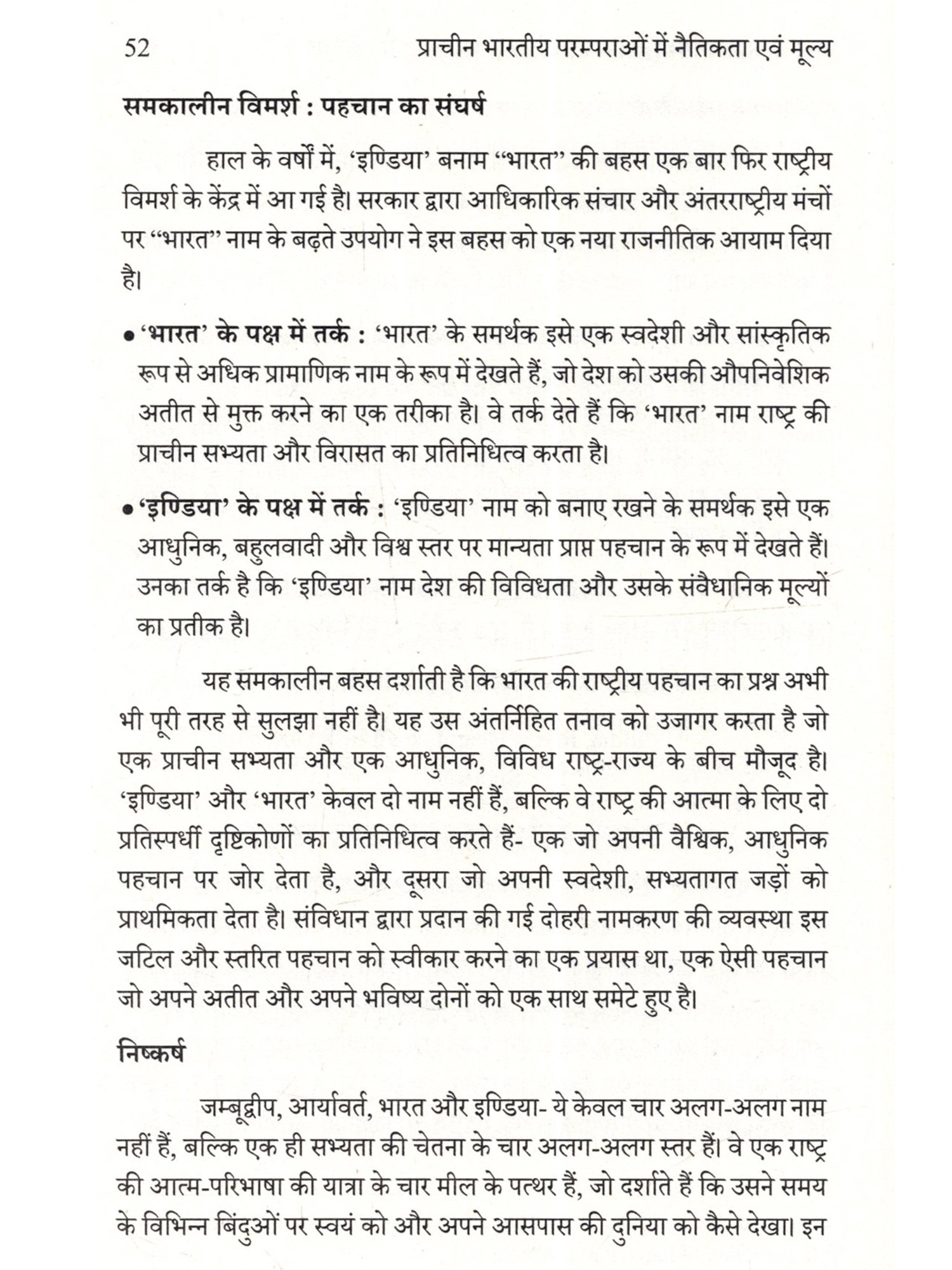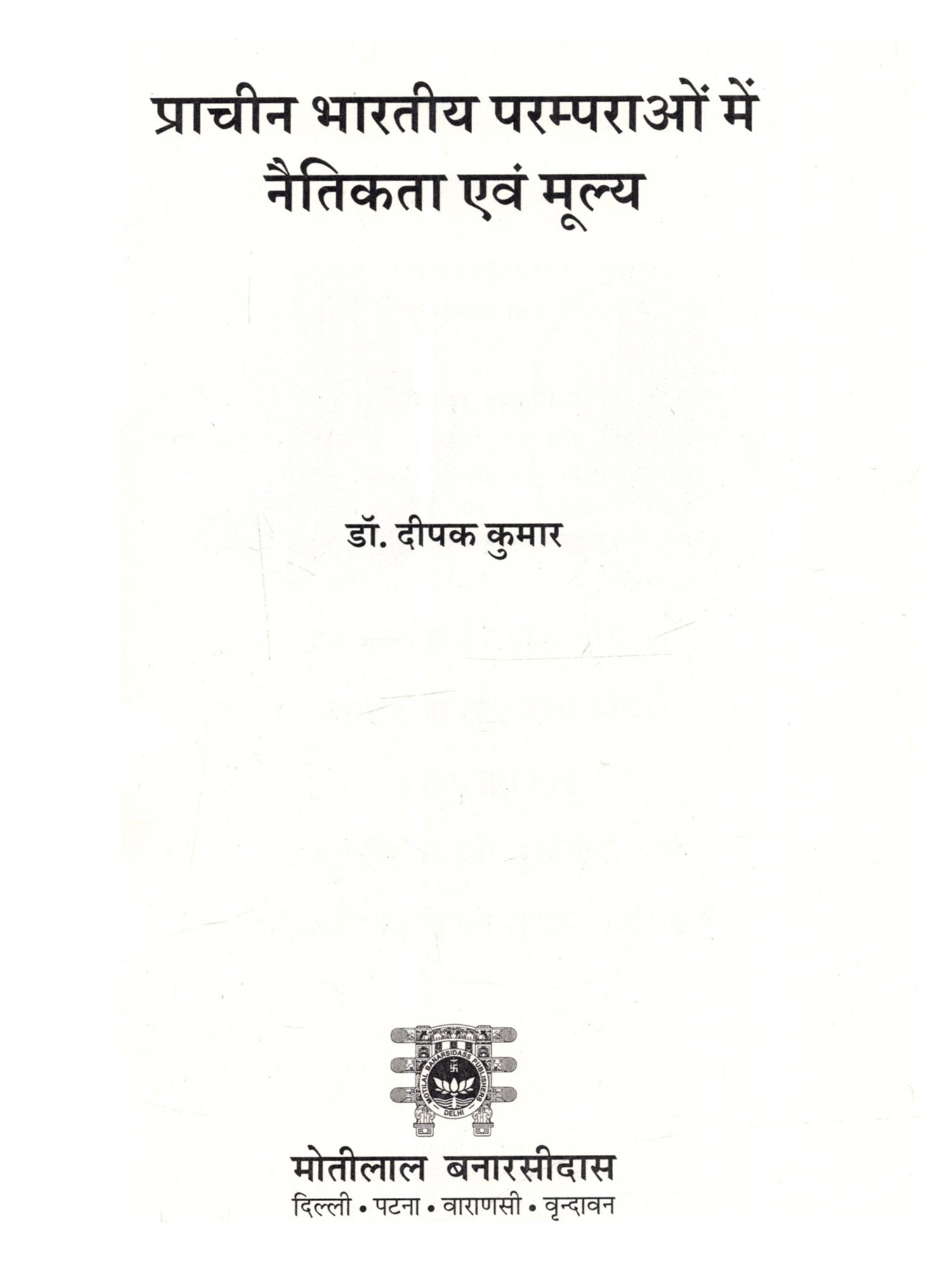 प्राचीन भारतीय परम्पराओं में नैतिकता एवं मूल्य यह पुस्तक प्राचीन भारत के उन शाश्वत जीवन मूल्यों की गहराई से पड़ताल करती है, जिन्होंने सदियों से भारतीय सभ्यता का मागर्दशर्न किया है। इसमें वेदों, उपनिषदों, धर्मशास्त्रों, श्रीमद्भगवङ्गीता, रामायण, महाभारत, तथा जैन और बौद्ध दशर्न में निहित नैतिक शिक्षाओं का विश्लेषण किया गया है। नई शिक्षा नीति 2020 के अनुरूप, यह पुस्तक दिल्ली विश्वविद्यालय द्वारा निर्धारित VAC पाठ्यक्रम के सभी इकाइयों को समग्रता समग्रता से समाहित करती है। पुस्तक में जटिल दार्शनिक अवधारणाओं को भी छात्रों और आम पाठकों के लिए अत्यंत सरल, सहज और रोचक भाषा-शैली में प्रस्तुत किया गया है। यह पुस्तक न केवल अकादिमक आवश्यकताओं की पूर्ति करेगी, बल्कि भारतीय मूल्यों को गहराई से समझने के इच्छुक विद्यार्थियों सहित प्रत्येक पाठक को अपनी सांस्कृतिक जड़ों से जुड़ने और एक अधिक सार्थक एवं नैतिक जीवन जीने के लिए प्रेरित करेगी।