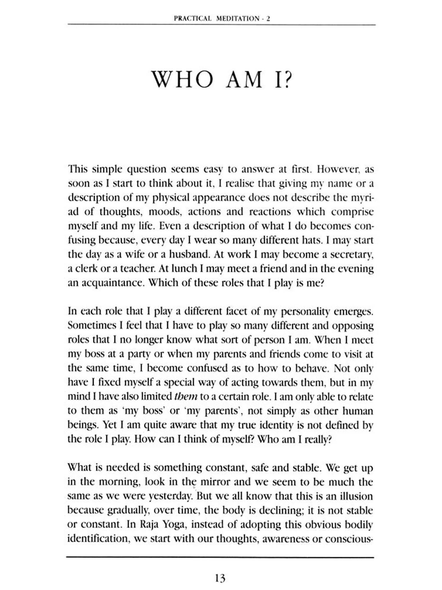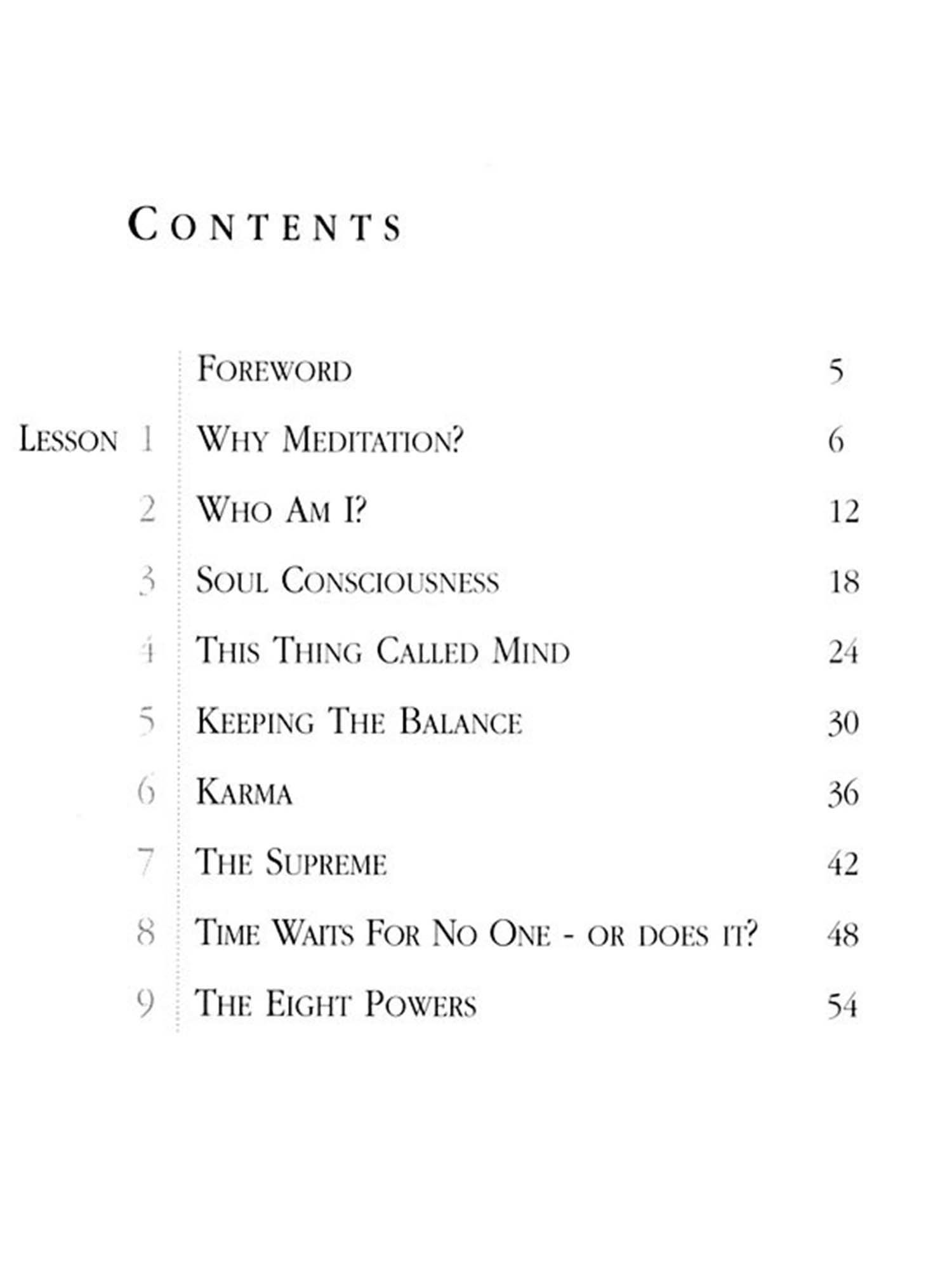 These nine lessons were originally given as a lecture series at an evening institute in Leeds, England. The lessons can be practised alone with great benefit. However, it would be particularly beneficial to study these lessons in conjunction with attending the free course in meditation at any one of the Raja Yoga Centres. The atmosphere at the Raja Yoga Centres and the experience of other meditation practitioners greatly enhance the experiences and understanding gained from the study of this book. By introducing meditation into one's own practical life, one not only gains real peace of mind, but also a more positive and healthy attitude towards life.