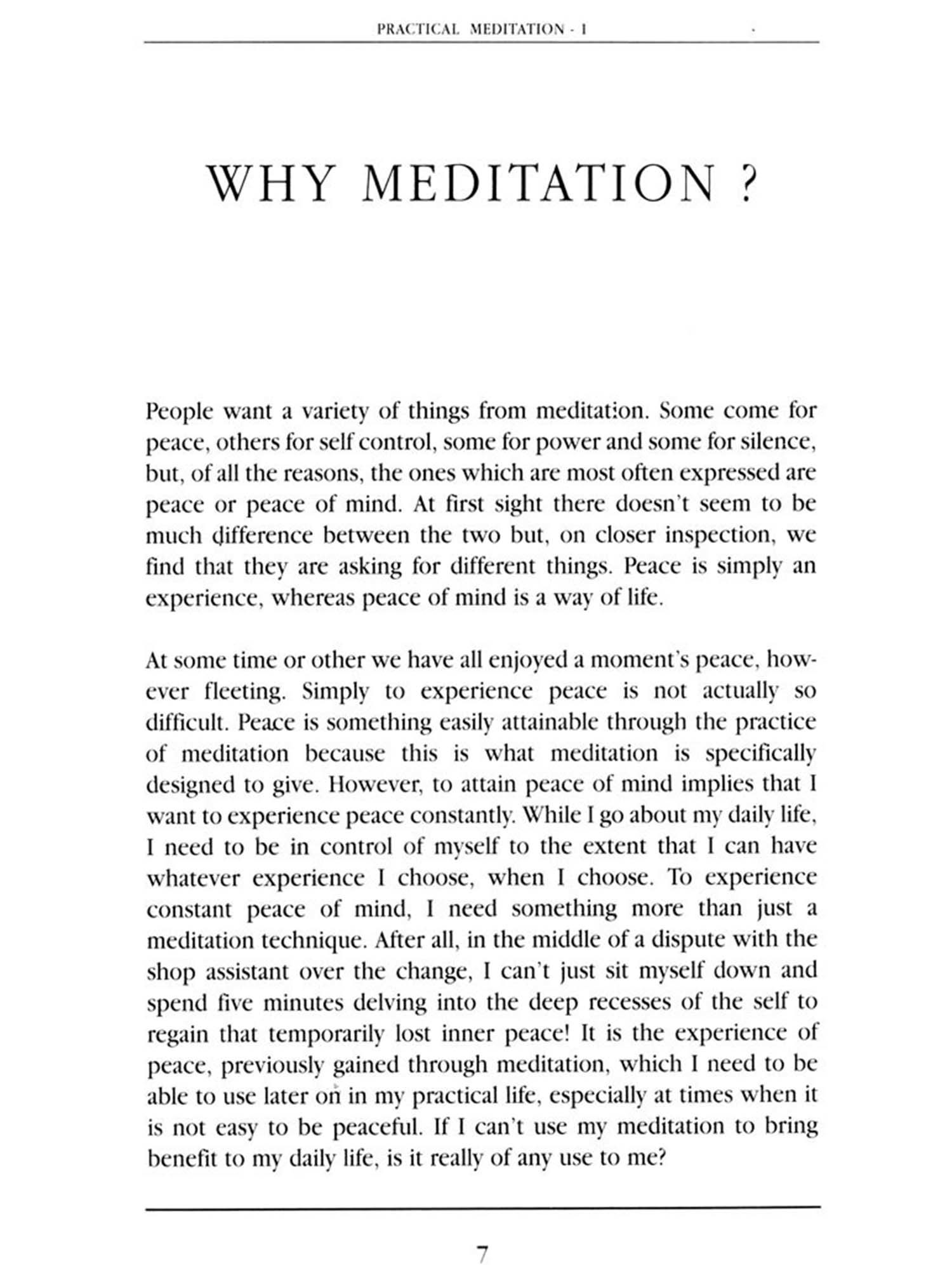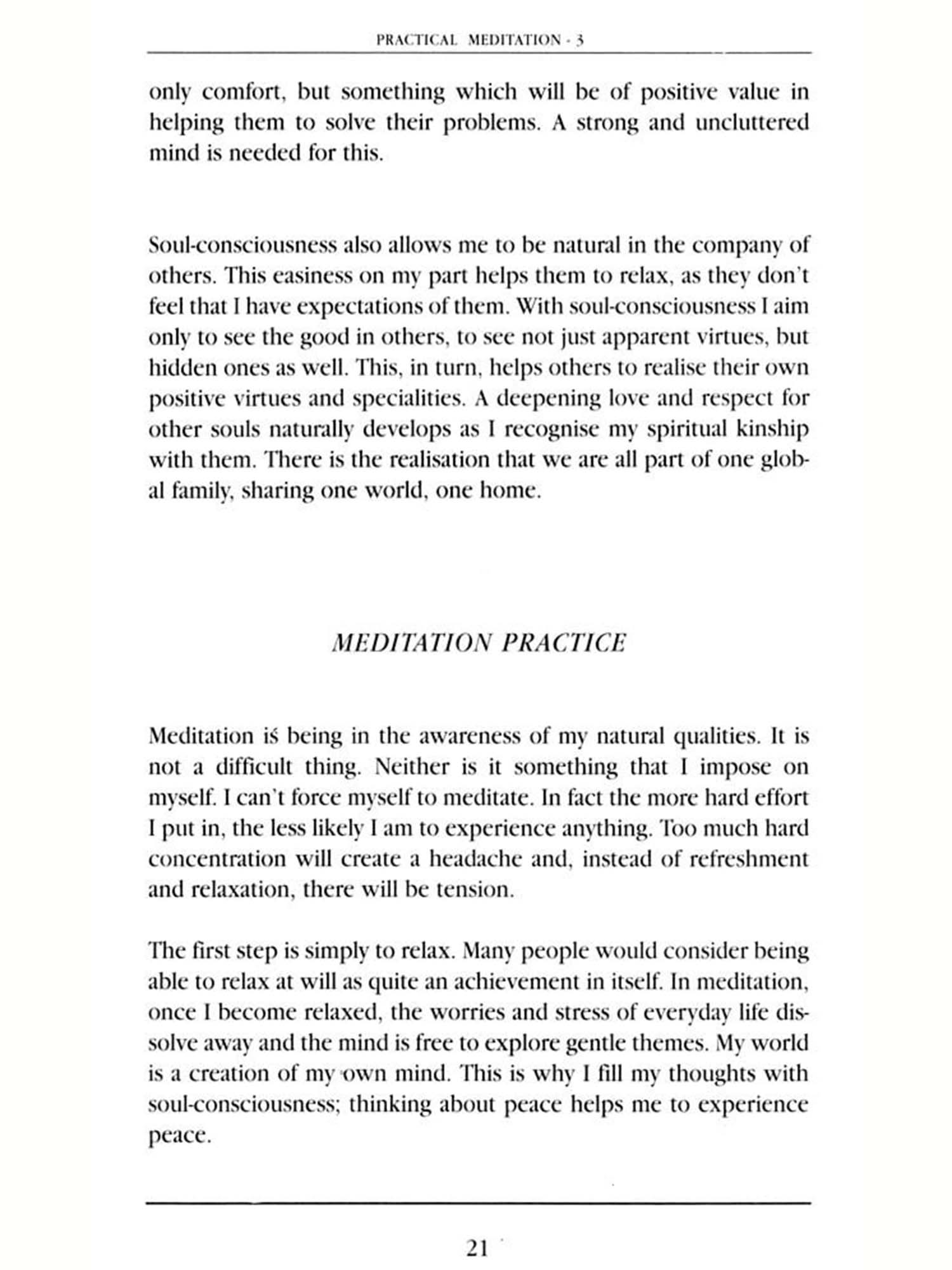 Practical Meditation is highly recommended for those who are beginning to discover the beauty and strength of their own inner world. More and more, we human beings are realising the need to develop the power of the mind, as we try to keep up with the ever-increasing pace of life and its complexities.