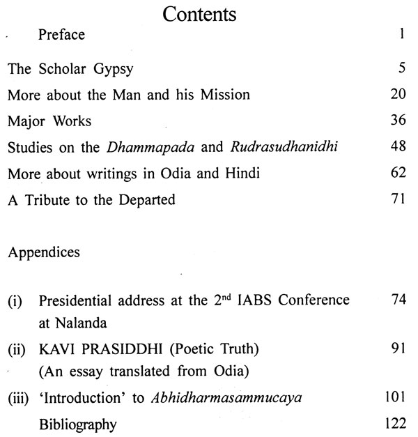 Prahlad Pradhan was primarily a Buddhist scholar of international repute. With a sound Sanskrit background he had mastered various other languages like English, Hindi, Bengali, Tibetan, Chinese and Japanese which enabled him to retranslate and restore into Sanskrit and edit two basic Buddhist treatises, namely, Abhidharmasamuccaya and Abhidharmakosabhasya from Tibetan and Chinese sources, which were lost in India. Besides other Sanskrit texts he has worked on Pali Dhammapada. He has also contributed substantially to the study of Odishan as well as Indian culture and literature by writing in Odia and Hindi.