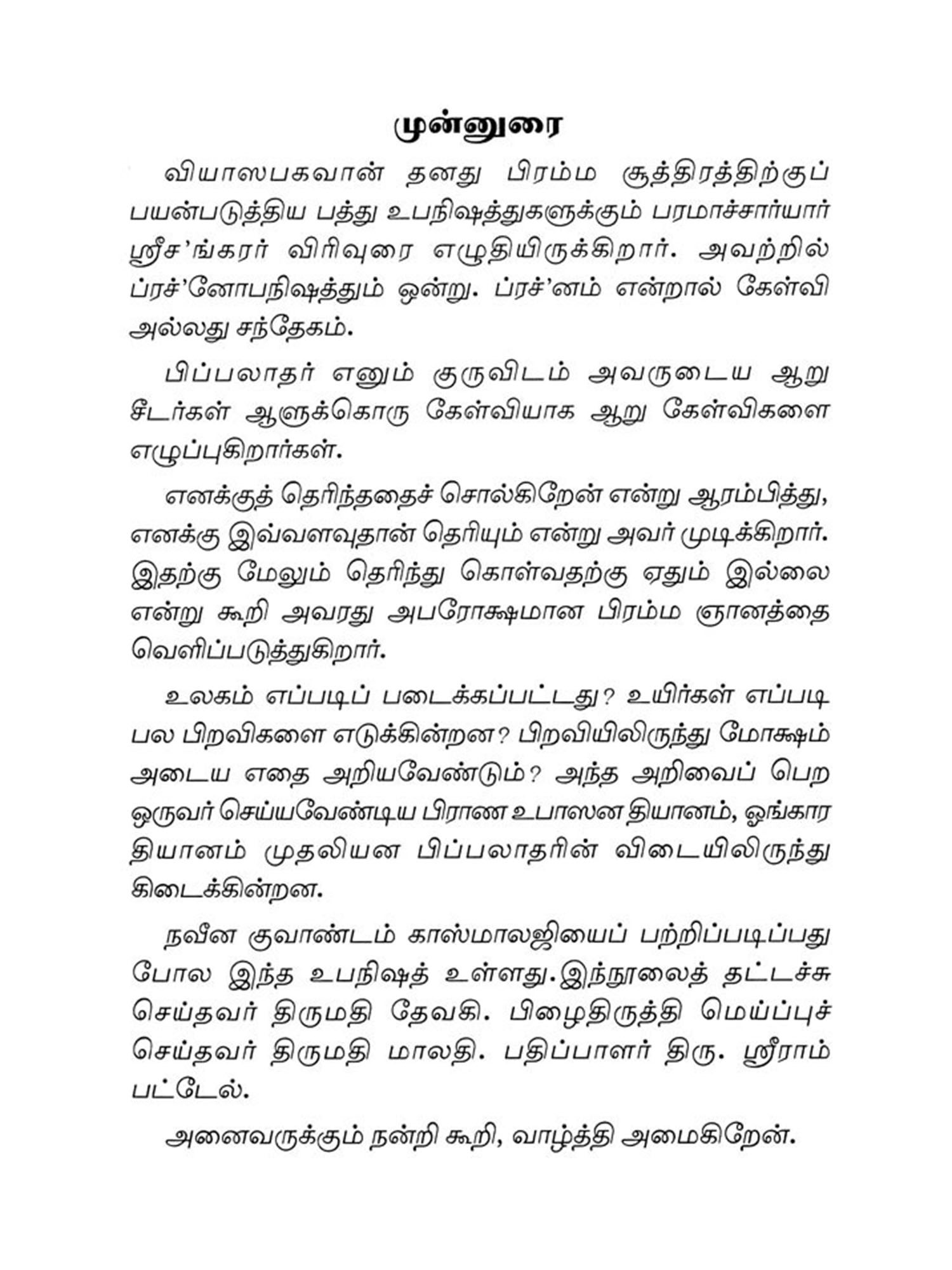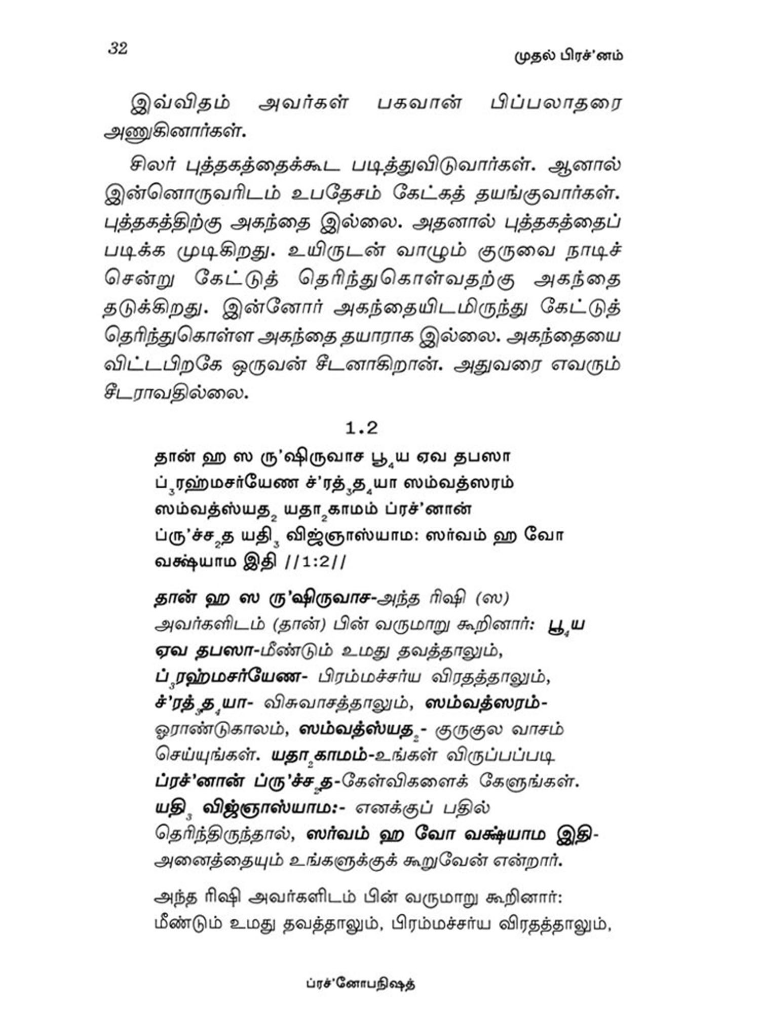 ப்ரச்'னோபநிஷத்: Prajna Upanishad (Tamil)