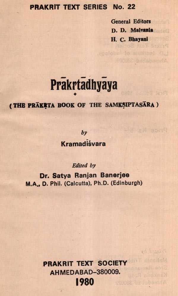 प्राकृताध्यायः- Prakrtadhyaya- The Prakta Book of the Samksiptasara (An Old and Rare Book Only One Quantity Available)