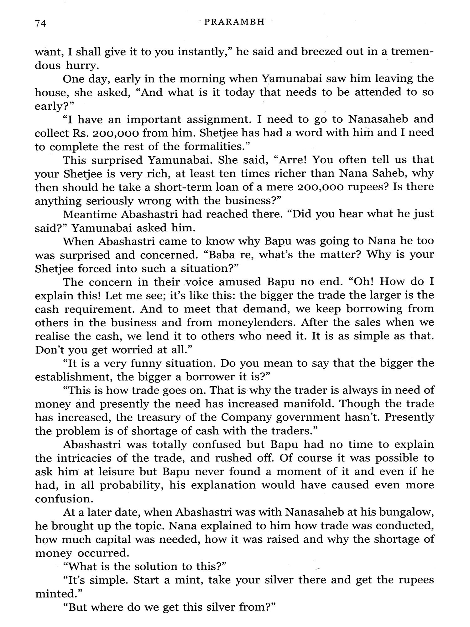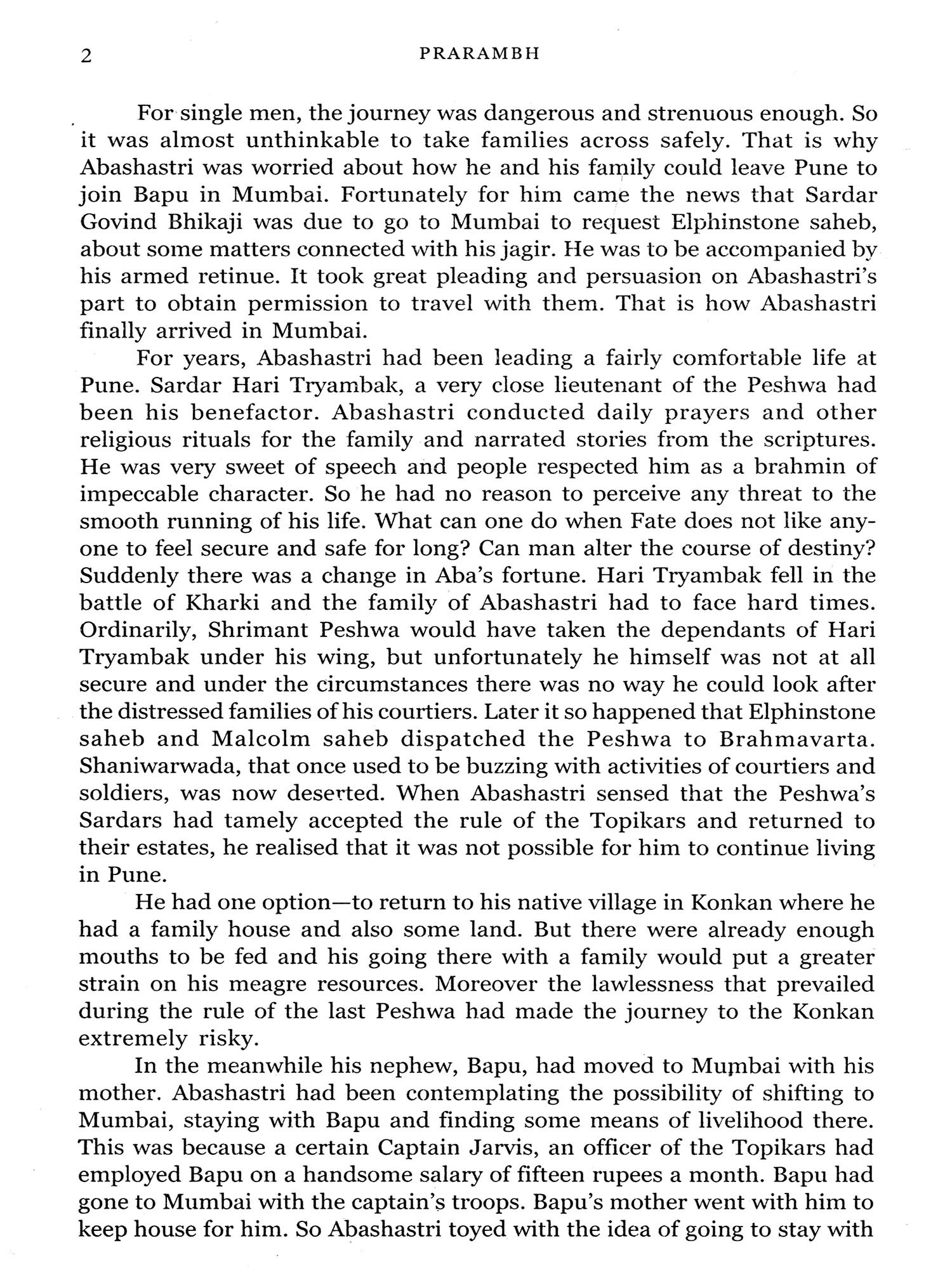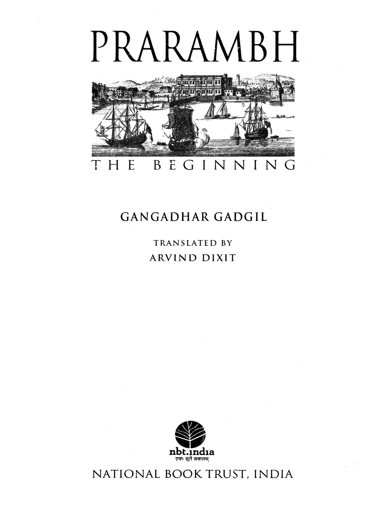 I feel greatly honoured to have been asked by the National Book Trust, India, to write this foreword to Professor Gadgil's Prarambh, a historical novel of epic proportion. He is senior to me in all respects, and hence introducing this magnum opus to non-Marathi readers is for me, a truly humbling experience.