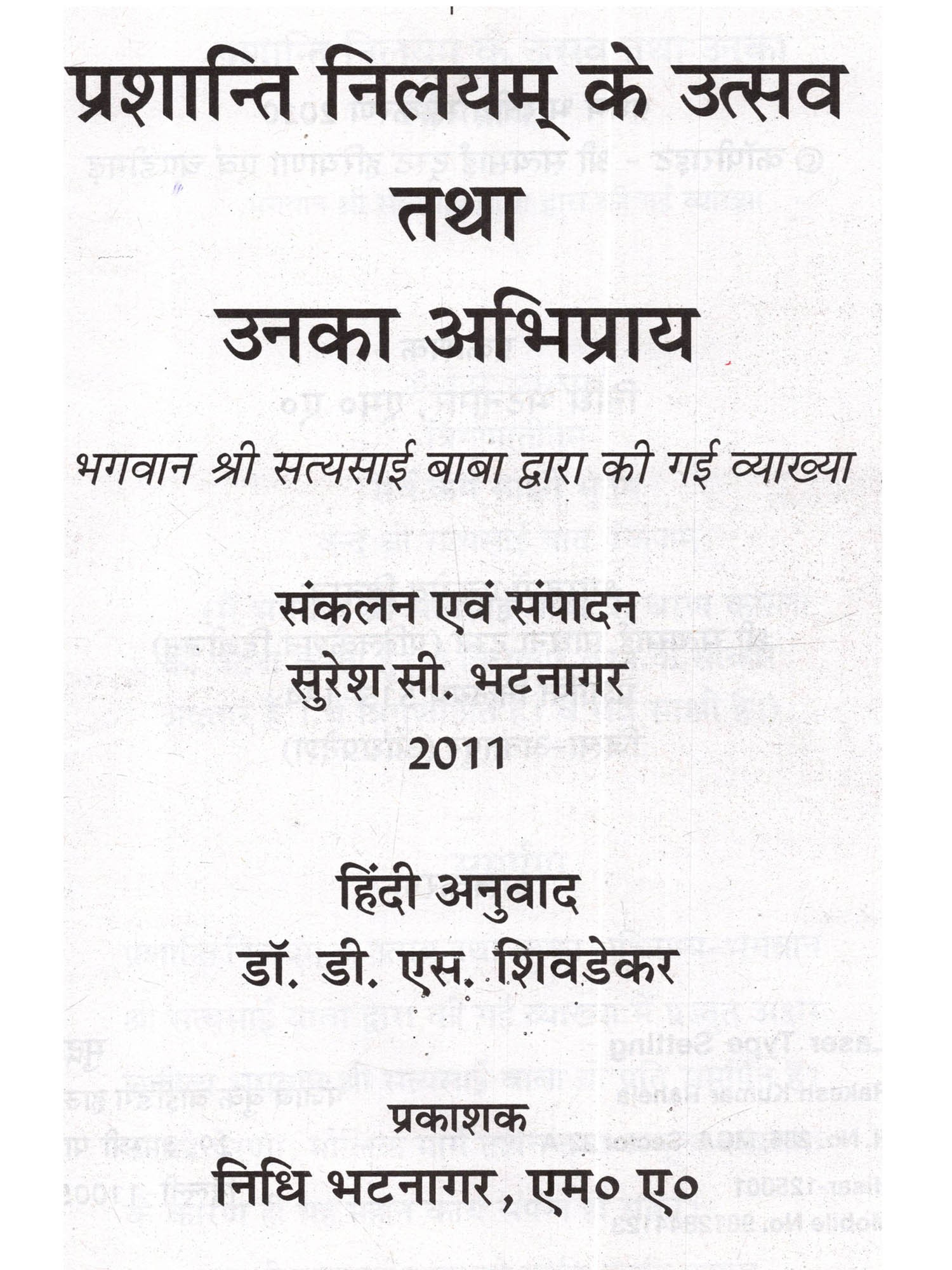 प्रशान्ति निलयम् के उत्सव तथा उनका अभिप्राय (भगवान श्री सत्यसाई बाबा द्वारा की गई व्याख्या): Prashanti Nilyam Ke Utsav Tatha Unka Abhipryein (Bhagwan Sri Sathyasai Baba Dwara Ki Gai Vyakhya)