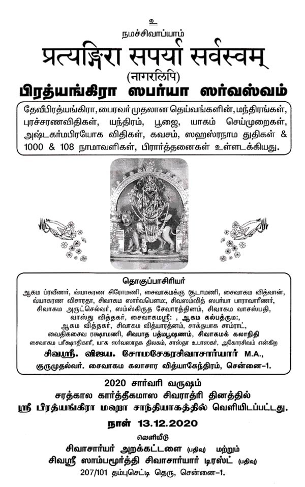 பிரத்யங்கிரா ஸபர்யா ஸர்வஸ் (प्रत्यङ्गिरा सपर्या सर्वस्वम): Pratyangira Sarpaya Sarvasvam