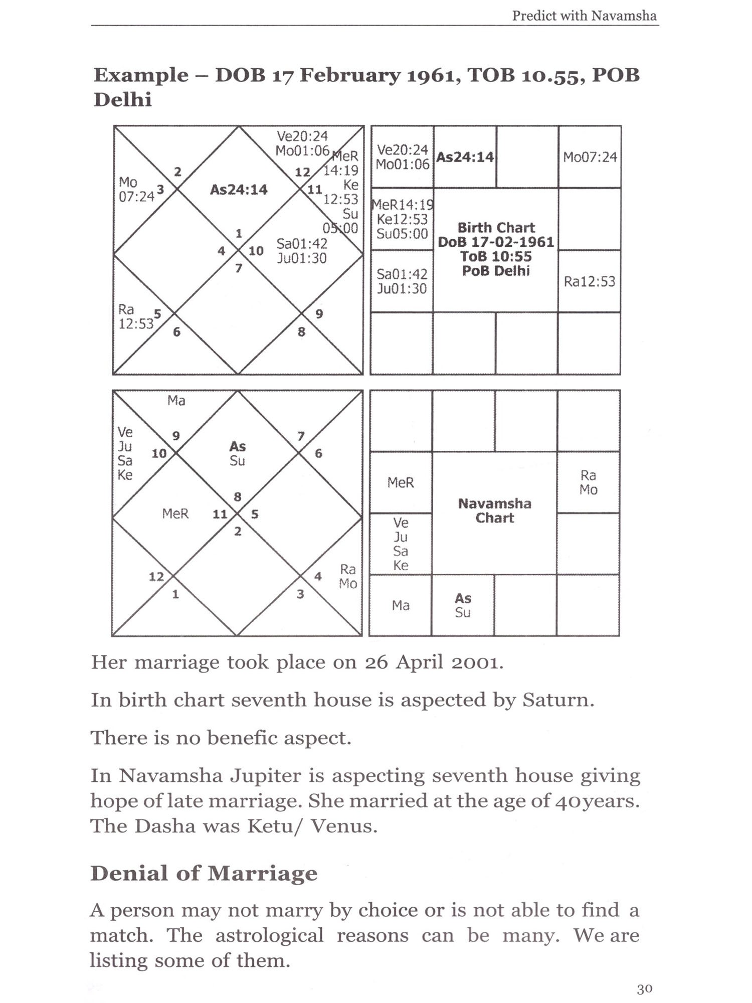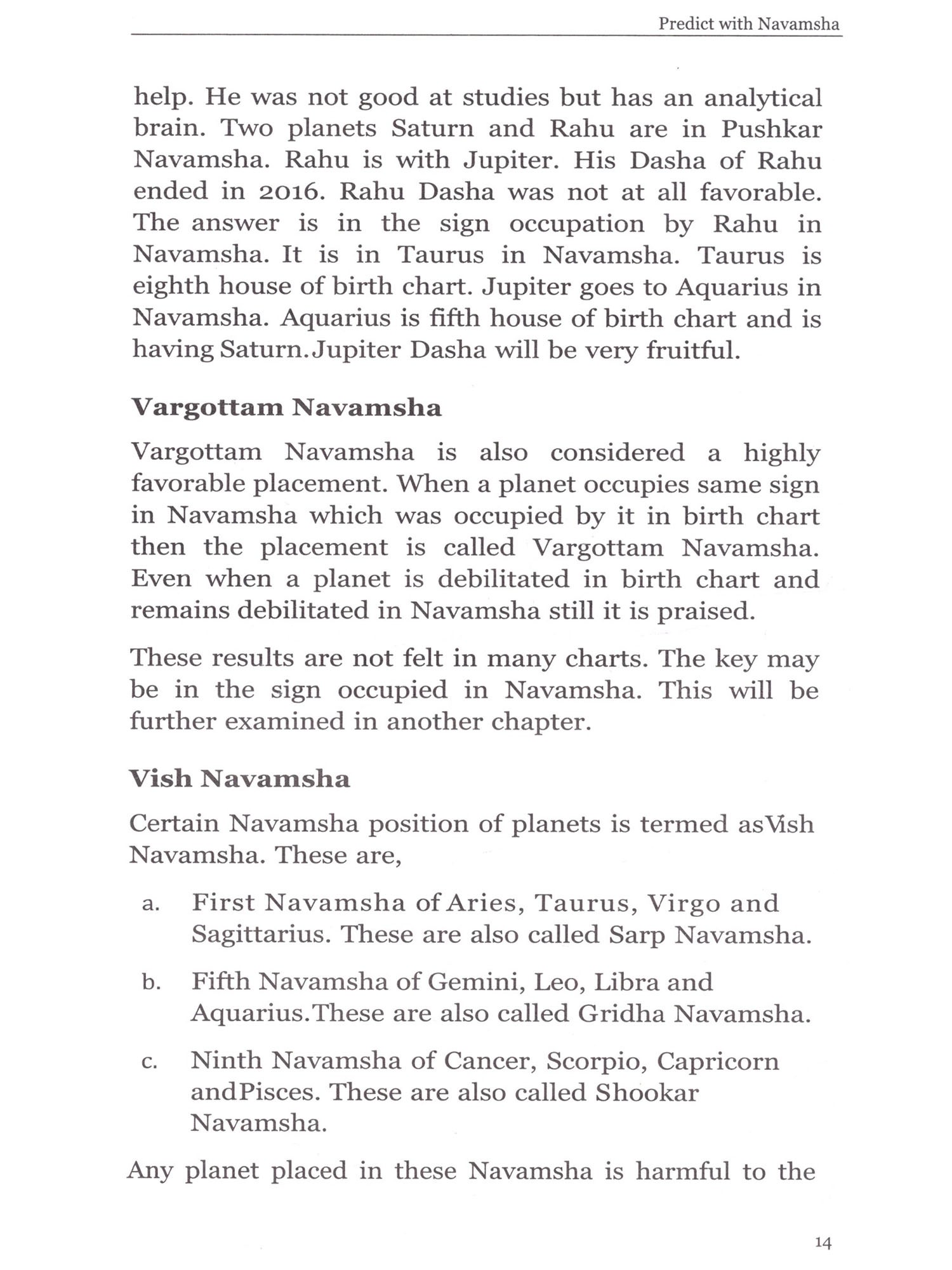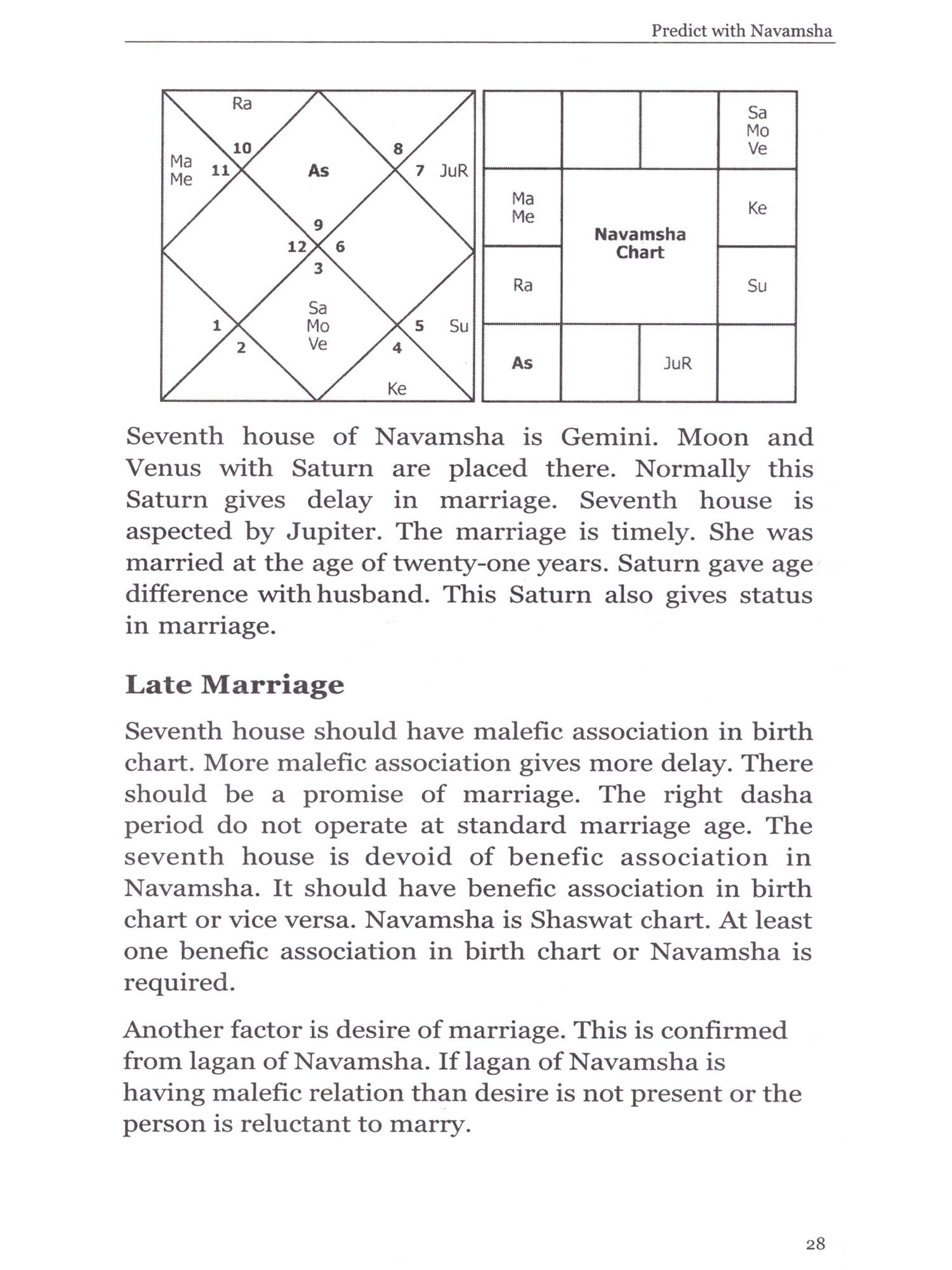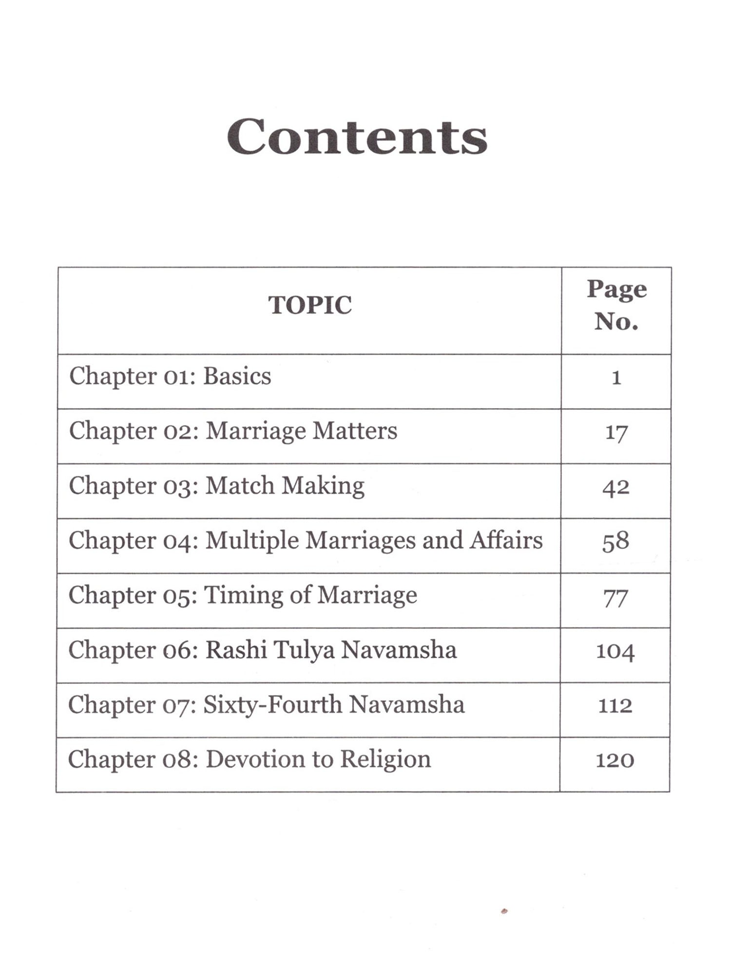 The book deals with practical application of navamsha. many aspects of navamsha like marriage, religious devotion, sixty-fourth navamsha, vish navamsha and timing of marriage are discussed with real-life examples. Rules for judging various aspects of marriage are given. These can be applied to almost all marriage related queries. A must read book for all astrologers.