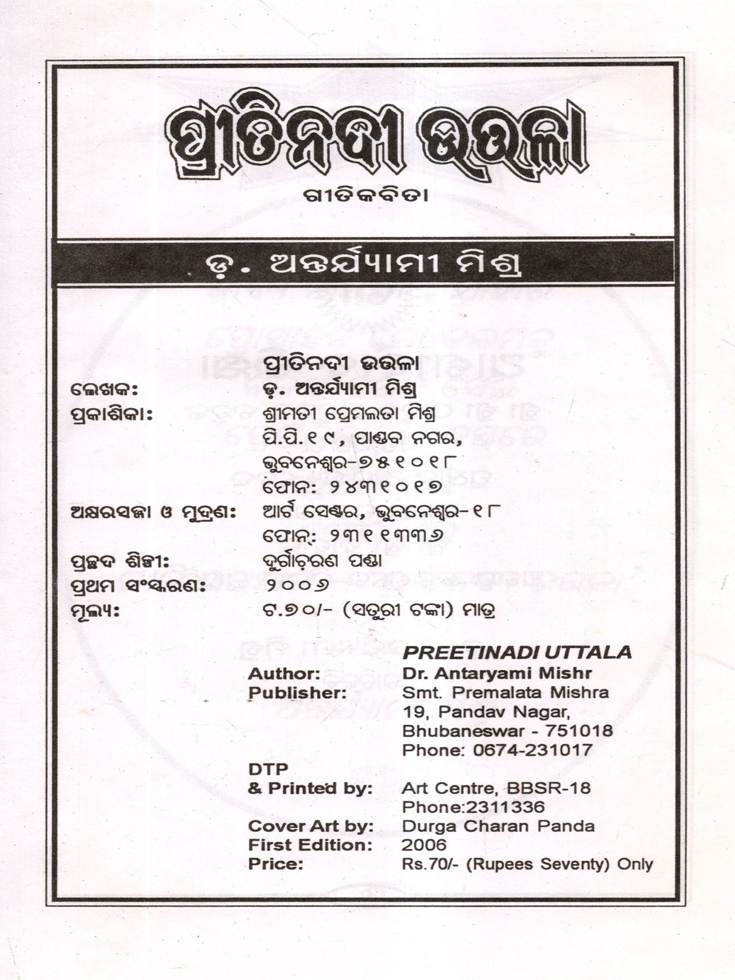 ଉତ୍ତରପକ୍ଷ: Uttara Pakshya in Oriya Poetry (An Old and Rare Book)
