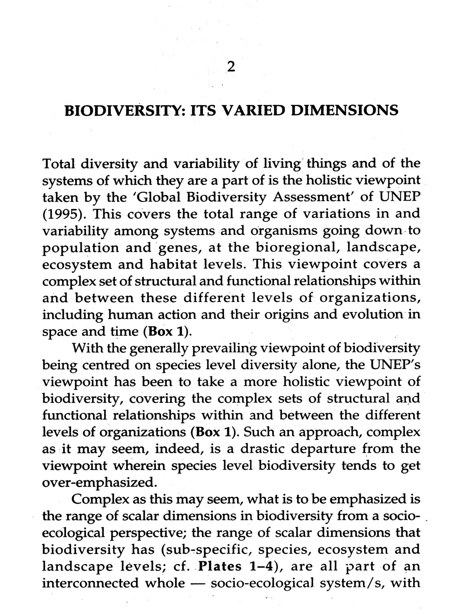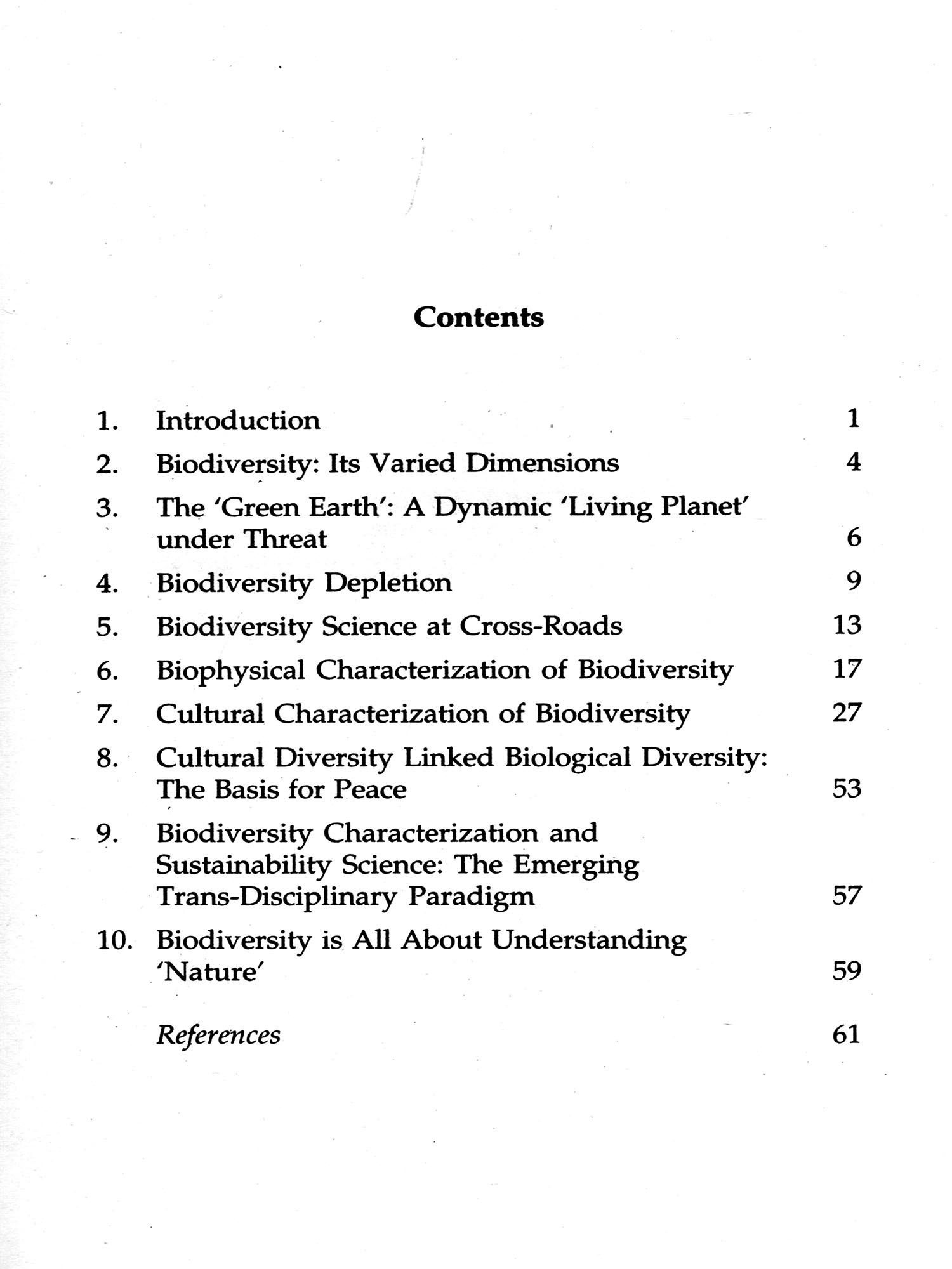 Having a feel for varied characteristic features of biodiversity is an important first step to undertake effective steps towards conserving this important resource. Unfortunately, it is rapidly getting depleted due to ill-conceived human actions, and what is needed is a view towards and for its effective utilization for addressing a whole range of contemporary concerns of a wide range of stakeholders, as in the Indian situation: