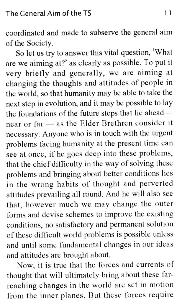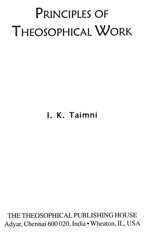 The work of the Theosophical Society can be organized efficiently only when the large majority of its members scattered throughout the world understand clearly the aims of the Society and the general principles which should guide them in planning and carrying out this work. There is need of a book which sets forth these aims and general principles in a clear and concise manner.