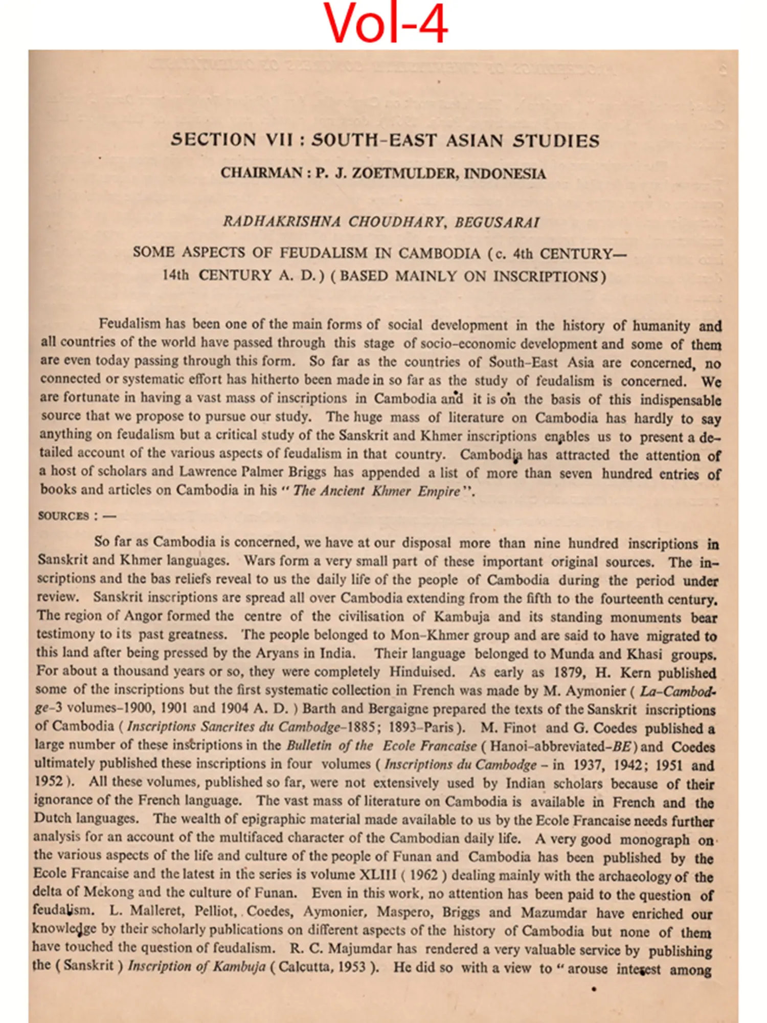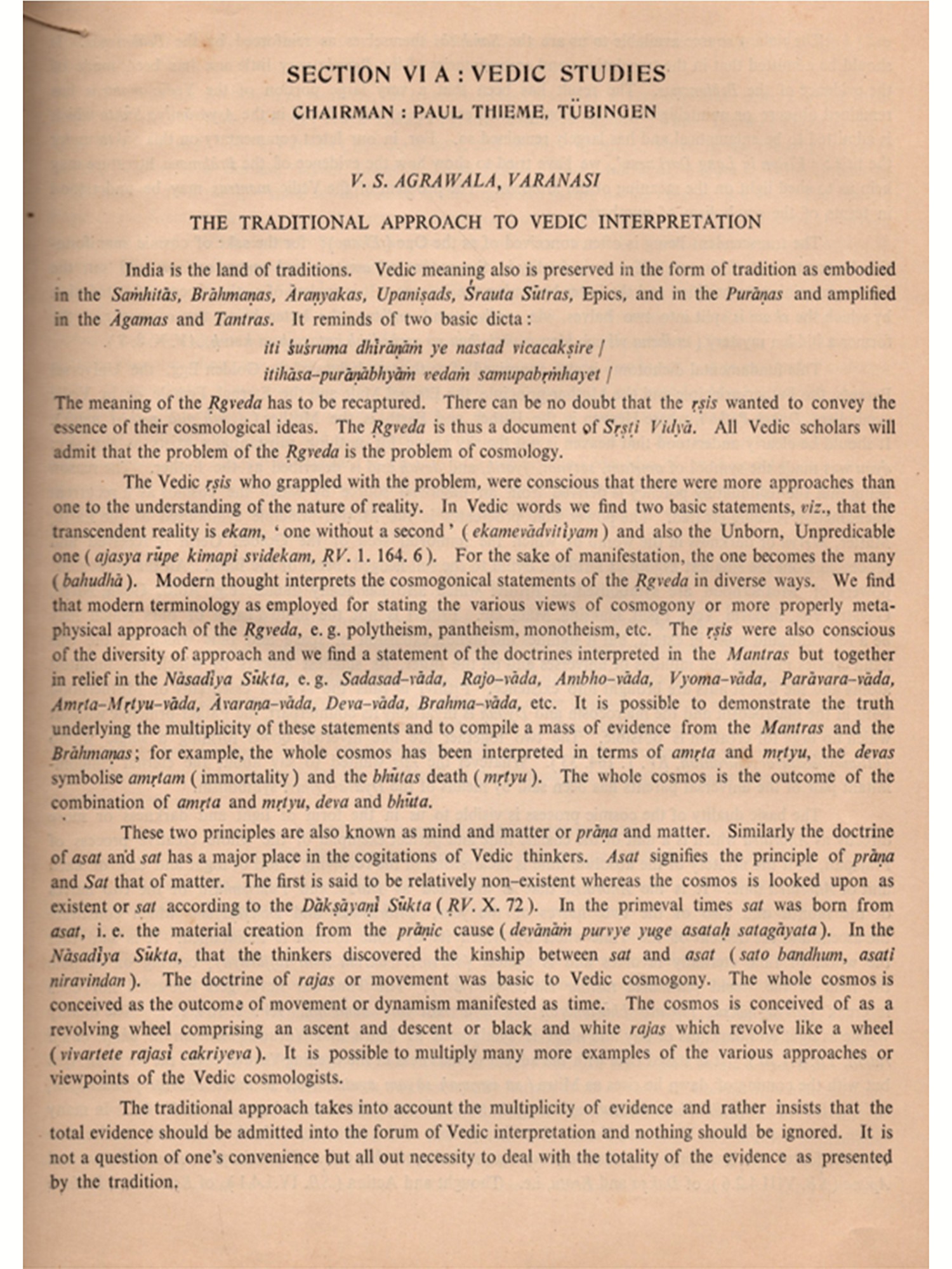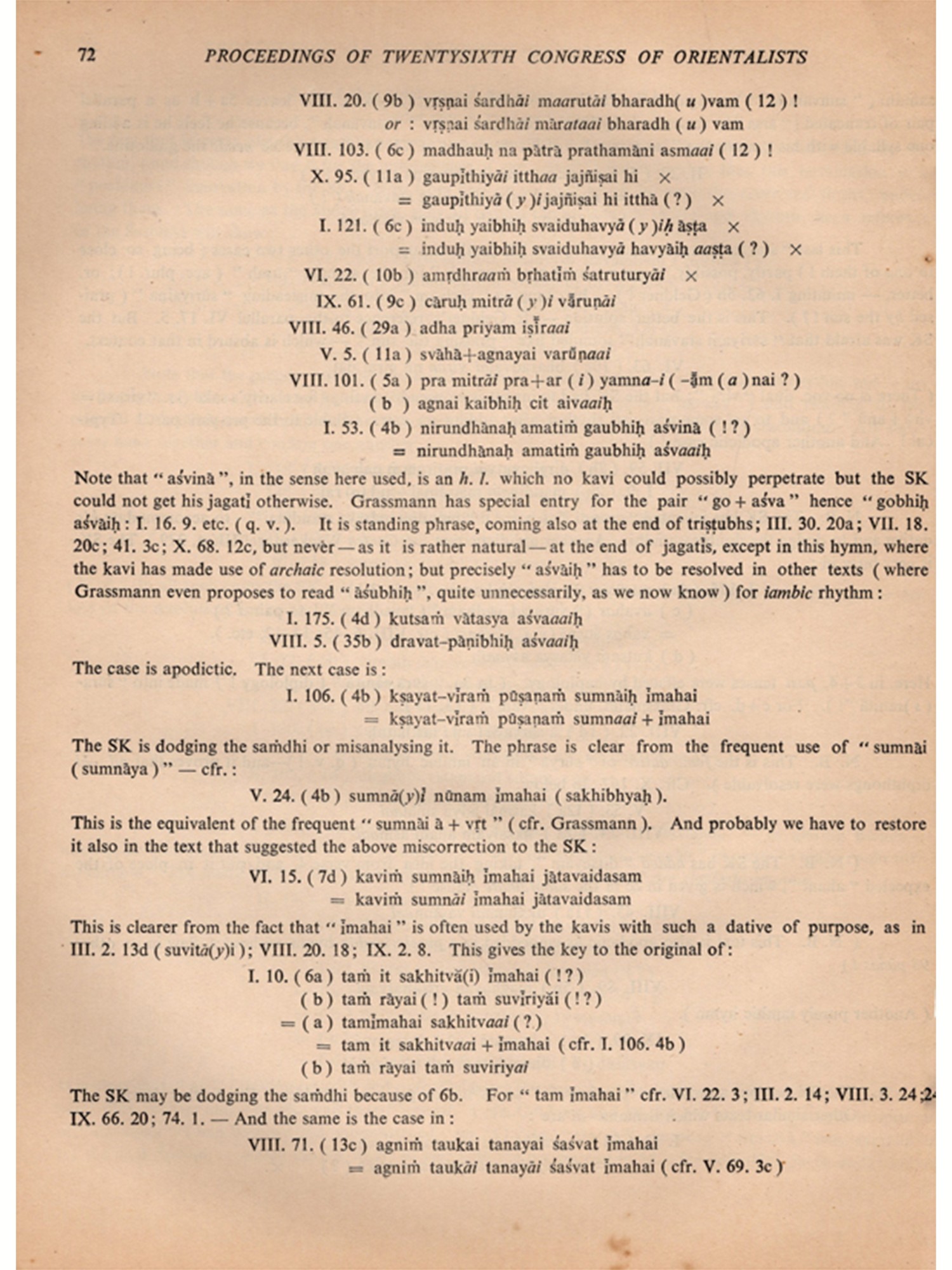 The XXVI session of the Congress had certain features which distinguish it from earlier sessions. It was mainly the initiative of Sir William Jones and the then Royal Asiatic Society of Bengal which started a sustained and scientific interest in Oriental lore. Indology was perhaps the core of these studies in their initial stages and as such the session of the congress in India was like a long awaited homecoming Another.