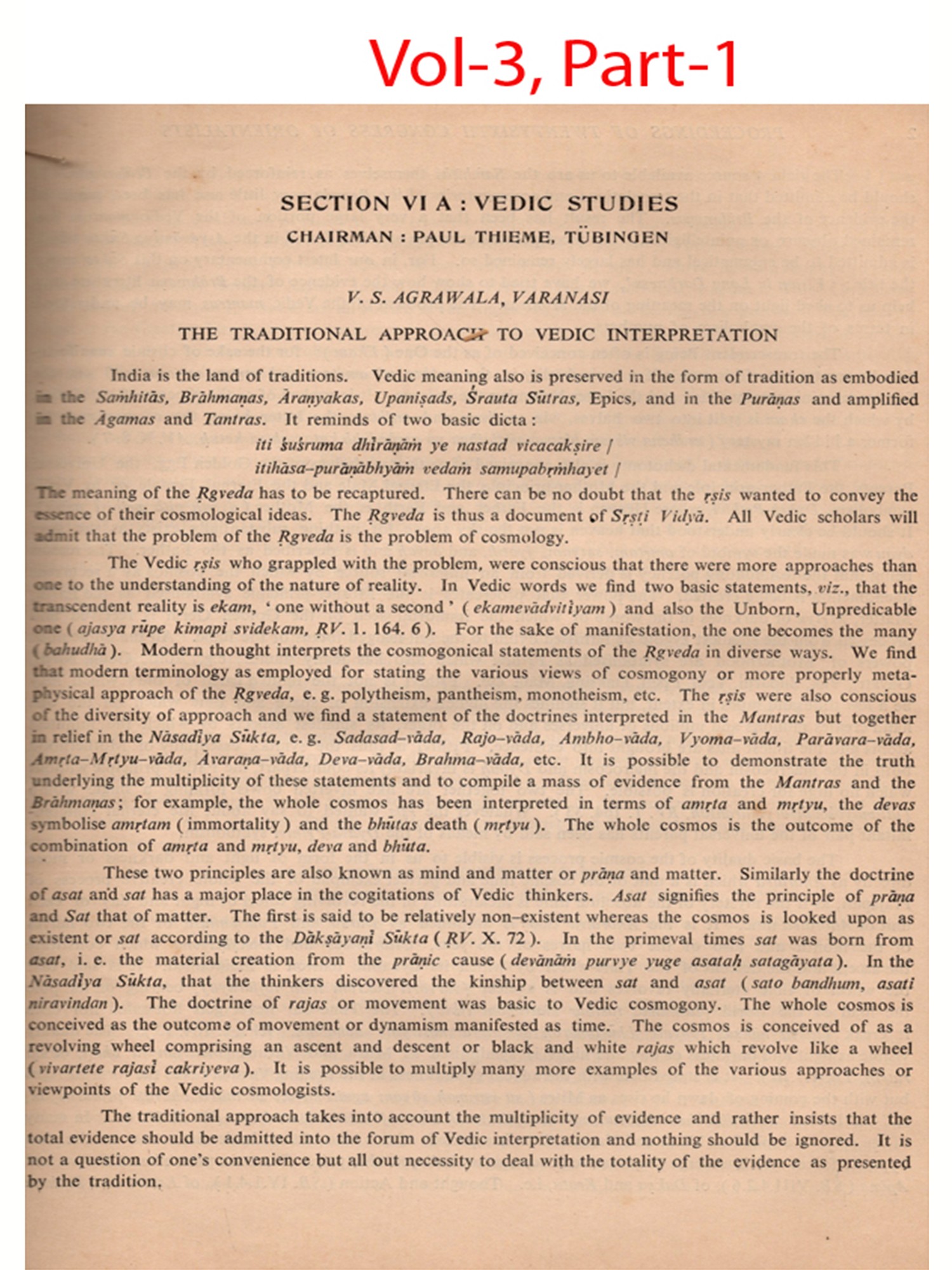 I have great pleasure in releasing to the public the first volume of the Proceedings of the twenty sixth international Congress of Orientalists It was our hope that this volume would be available by the end of 1965 but those who have experience of publishing a book with contributions from scholars from many different countries know that with the best effort of both contributors and editors, all articles are not received in time In fact, sometimes one article alone may and does hold up the entire publication.