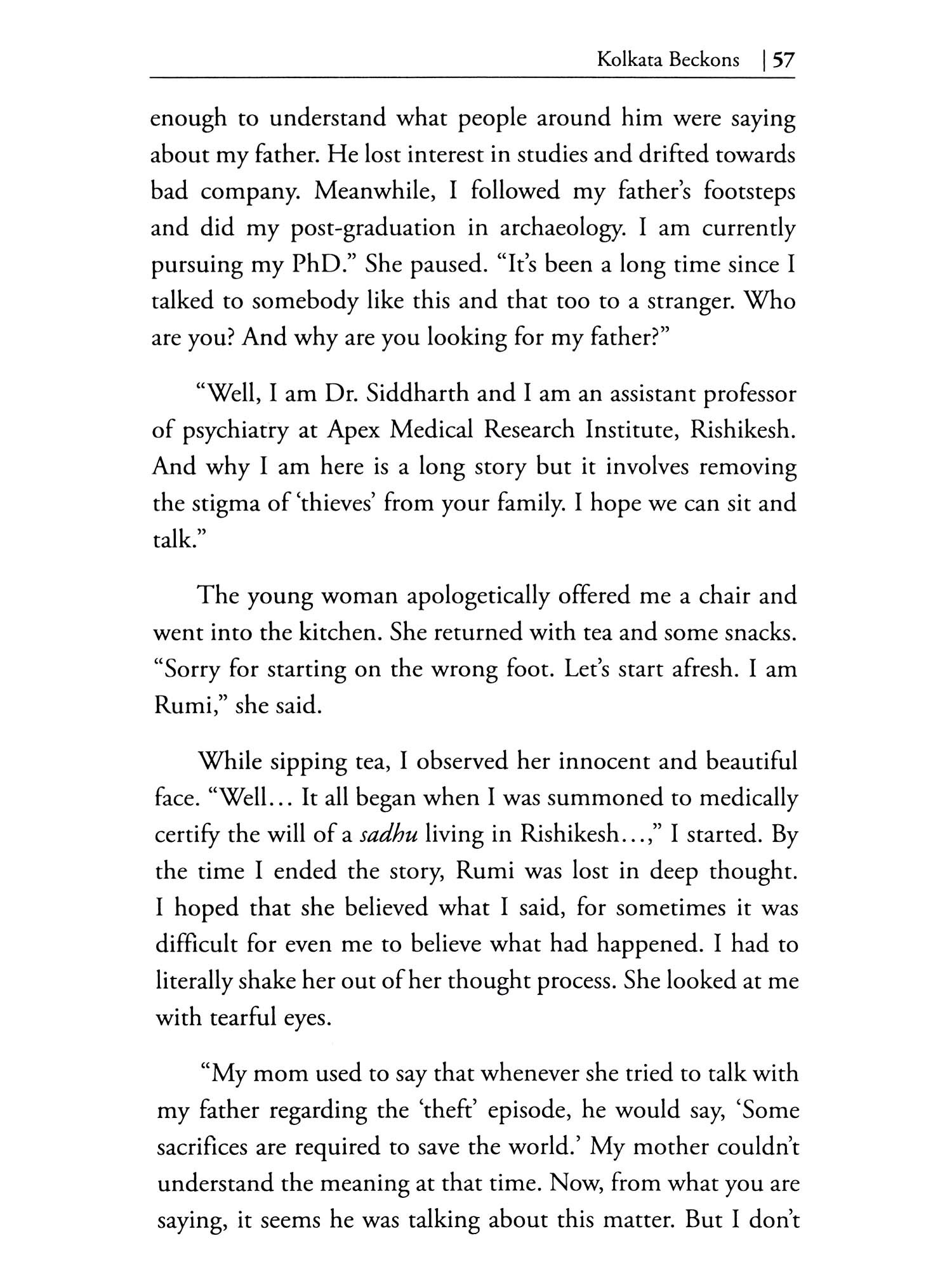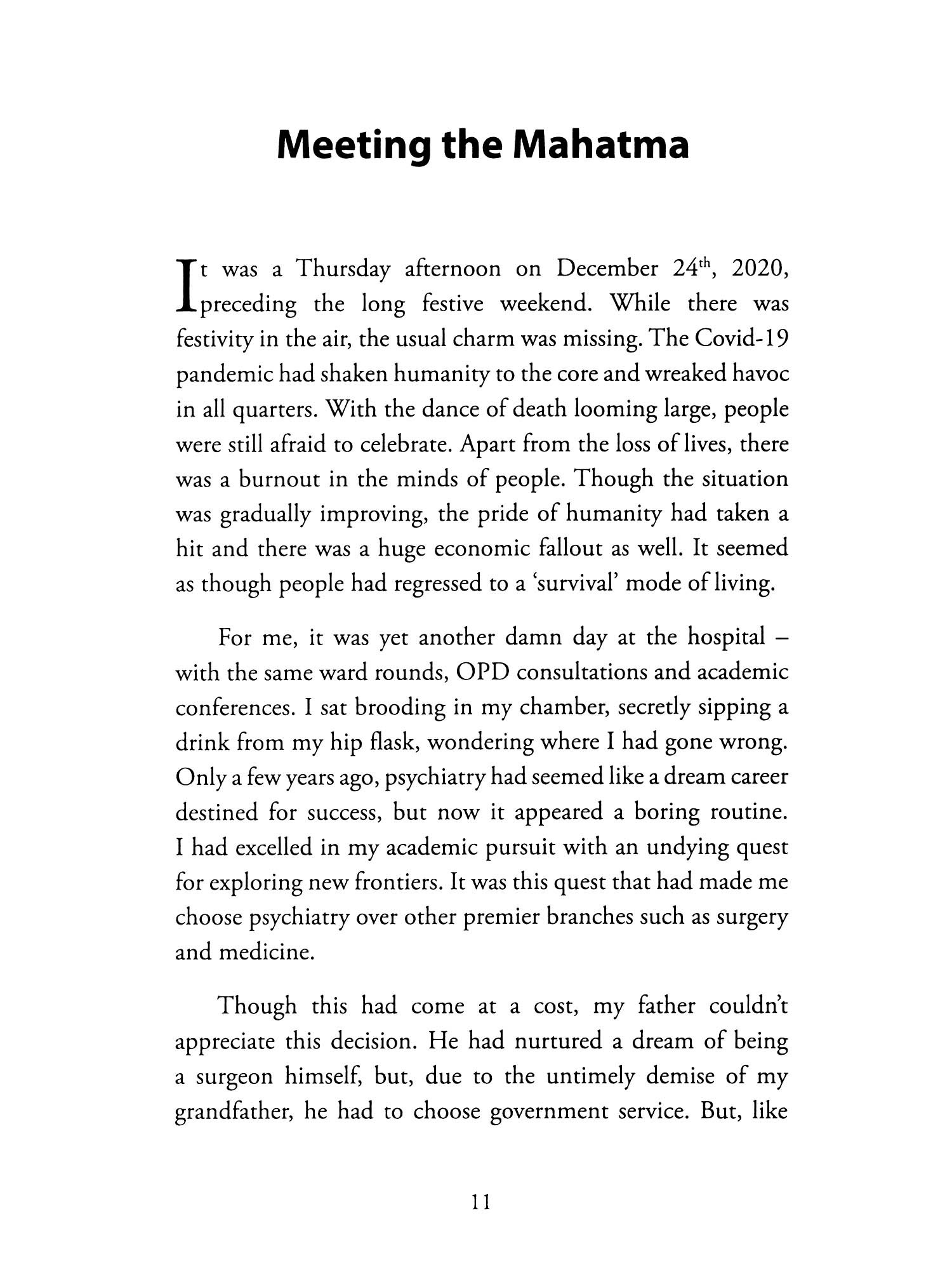 This book is an outcome of an inner journey, which began in the previous decade of my life. This journey started from choosing psychiatry as my specialty, which subsequently led to a fascination for understanding human emotions. Gradually, I became intrigued to see how the trivialities of life drive us, the most intelligent species on the planet. I was surprised to find out how a chunk of our life is wasted on negative emotions and thoughts. Thus, I resolved to work for optimisation of human potential for us to achieve what we are truly capable of. I started Mind Power sessions at my Mind Peace Clinic and interacted with thousands of people from all walks of life. What was surprising to me was that the issues that stopped us from being truly happy were common to all of us, irrespective of age, gender, social or economic class. Simultaneously, I developed an interest in our ancient knowledge of the importance of purpose, happiness and peace in life. Cumulatively, all my efforts led to a distillation of wisdom in the form of insights, which brought about a radical change in the lives of people. This also formed the basic tenets of this book. The characters in the book, Dr. Siddharth and Rumi, are ordinary people like us, looking for meaning in their lives. They discover answers to the most vital questions of life but not before they get engulfed in an edgy thrilling adventure. Keep a close watch on the events unfolding in this book, for they might be the answers you were searching for all your life!