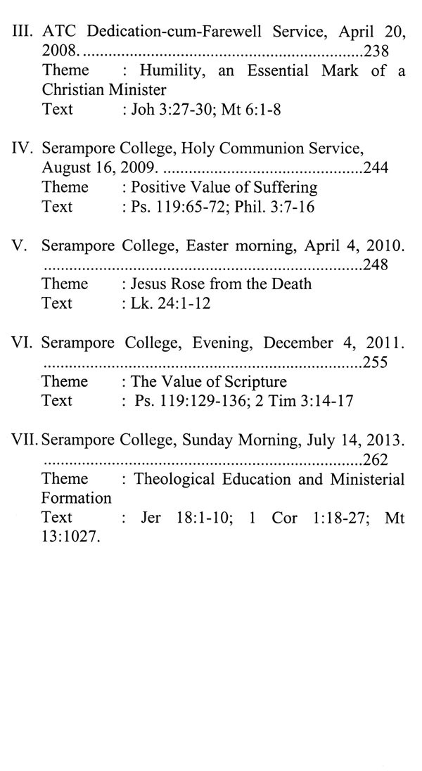 While working in the ATC as the Principal, I had the opportunity to present a paper entitled as 'Church's Participation in Theological Education' in the Seminar of the Board of Theological Education of the Senate of Serampore College (BTESSC) at Faith Theological Seminary (FTS), Manakala, Kerala on February 6, 2003. In 2004, April 1-4, I also had the privilege to have been invited to attend the International Conference on Reformed Faith in the University of Stallenbosch, Cape Town in South Africa. In that Conference, I presented a paper entitled as 'Calvin's Doctrine of God in relation to the Indian Context.' In 2009 when the Assembly of the Presbyterian Church of India organized a Consultation in commemoration of Calvin's 500th birth anniversary in the ATC, I was honoured with the opportunity to give a keynote address on the theme, 'A Theology of John Calvin: An Overview.""