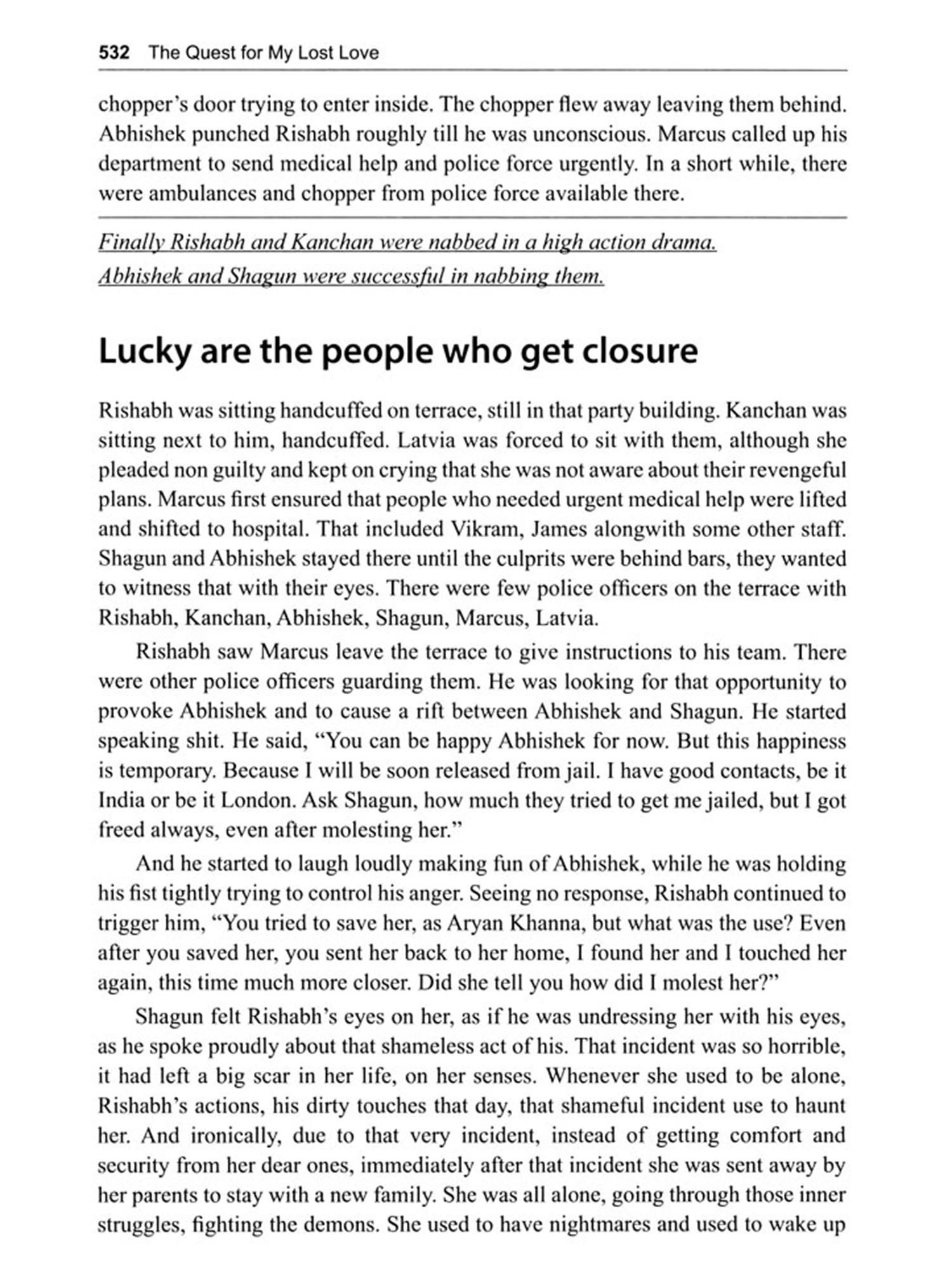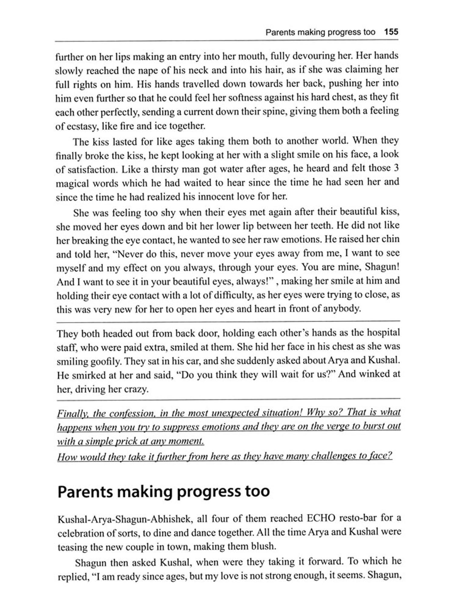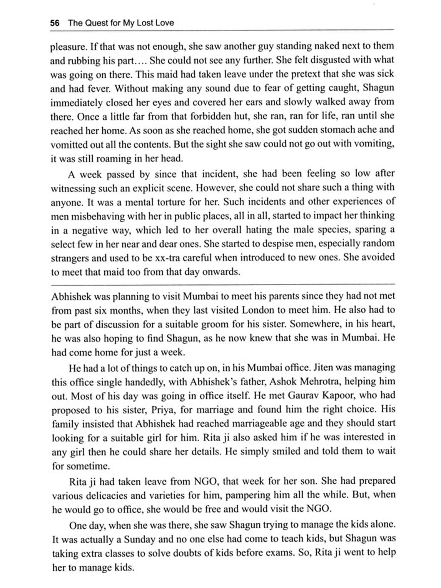 This book talks about the life of a girl, who goes through many ups and downs. Her main support system is often not around, leaving her to take care of her ownself, when she is in vulnerable situations. Although her partner heroically pulls her out of a major hell hole, still, many times she is left struggling for a good life without any inhibitions. She is restricted by factors governing the decisions of her life, in the name of being a good girl. This book touches upon a little on the said/unsaid rules laid for a girl in some middle class households.