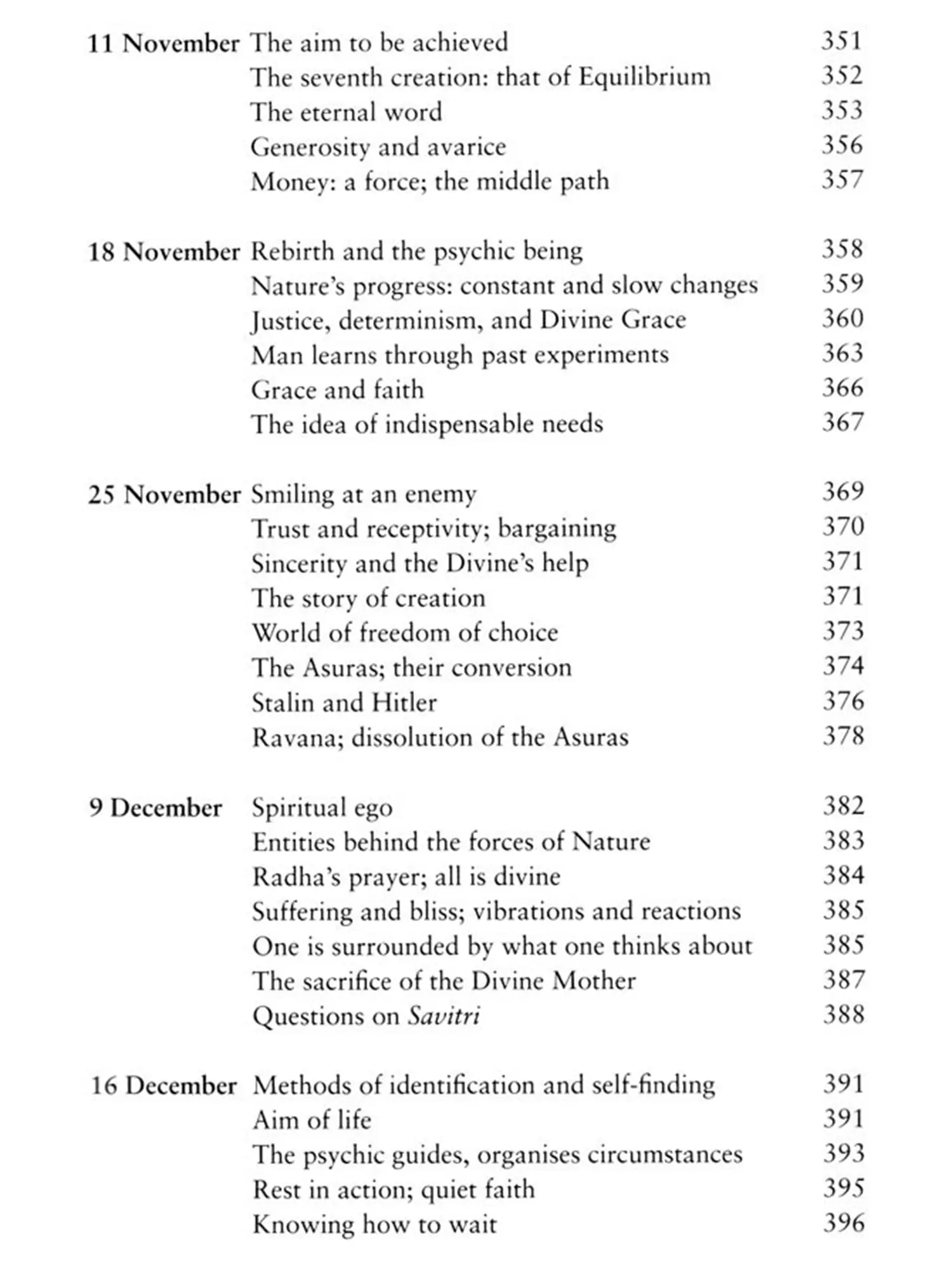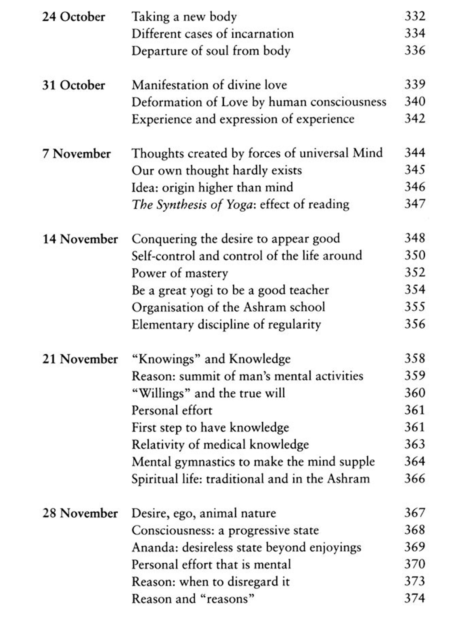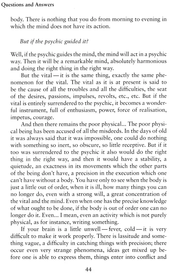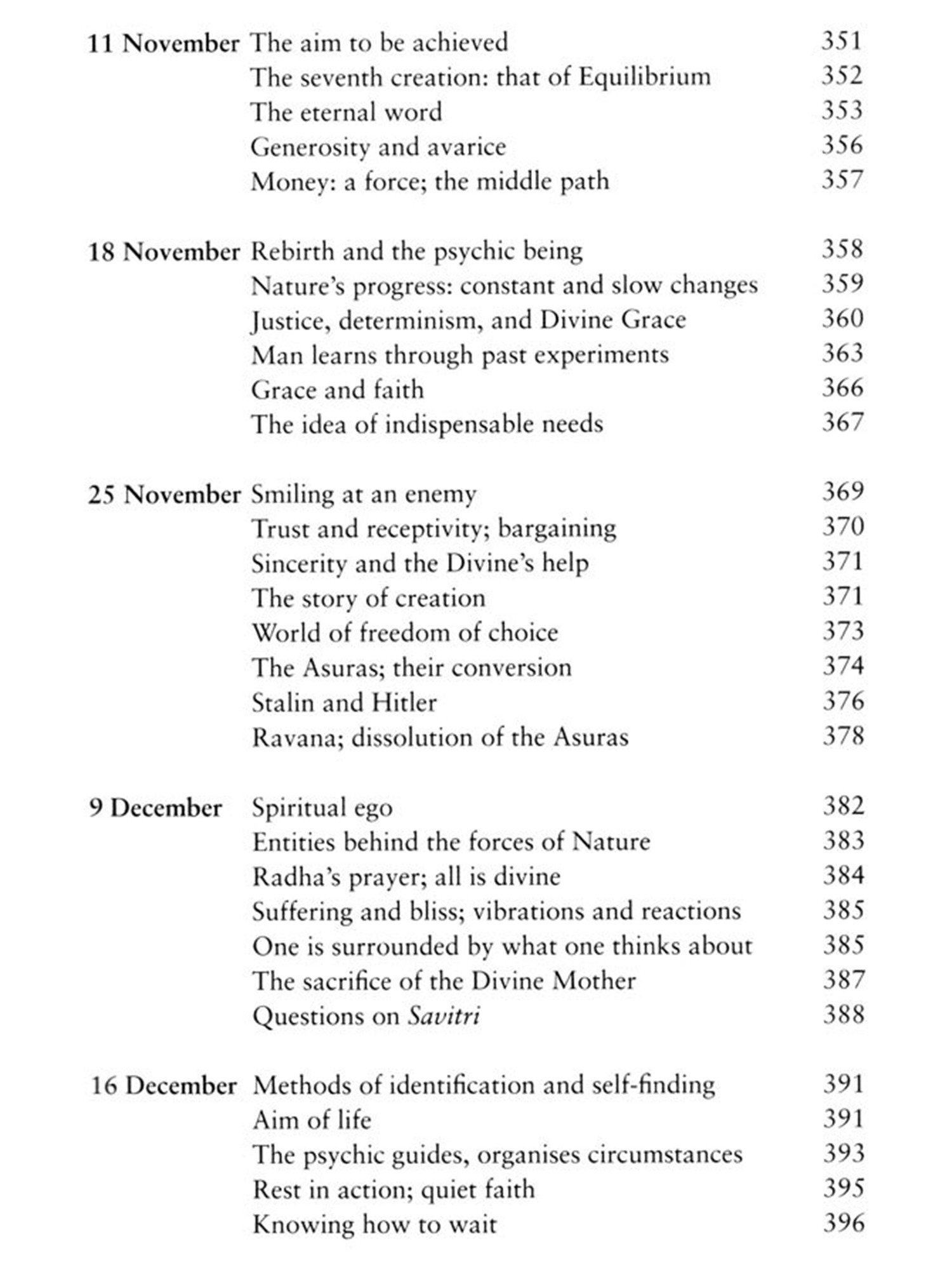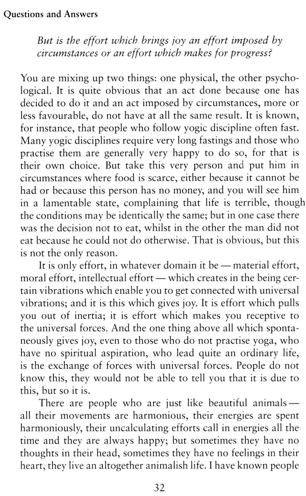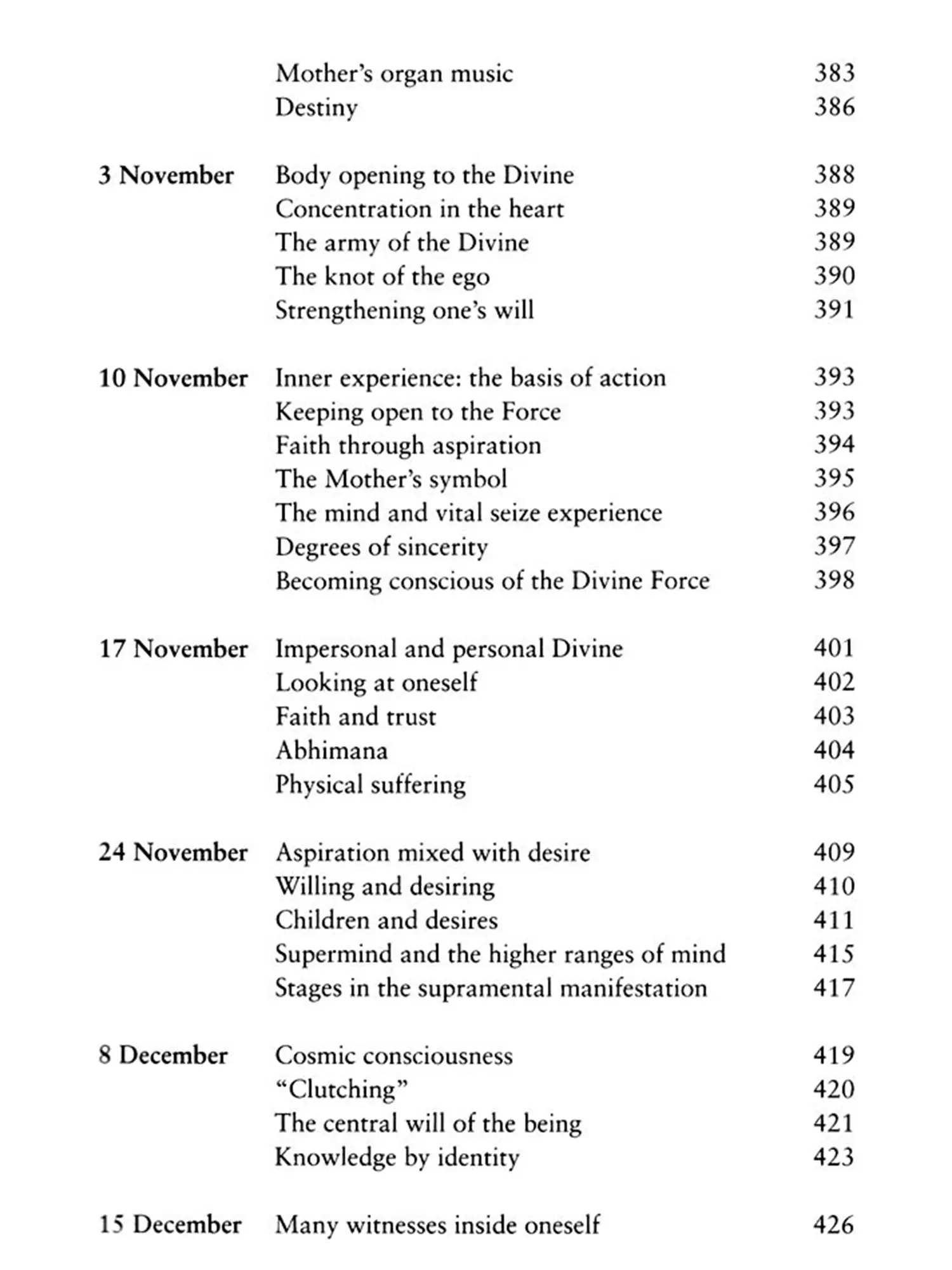 Questions and Answers 1950-1951 contains conversations of the Mother with members of the Sri Aurobindo Ashram and students of the Ashram's school. For most of this period the Mother answered questions about some of her essays on education and her conversations of 1929, which deal with various aspects of spiritual life. Towards the end she discussed some letters of Sri Aurobindo and his book The Mother.