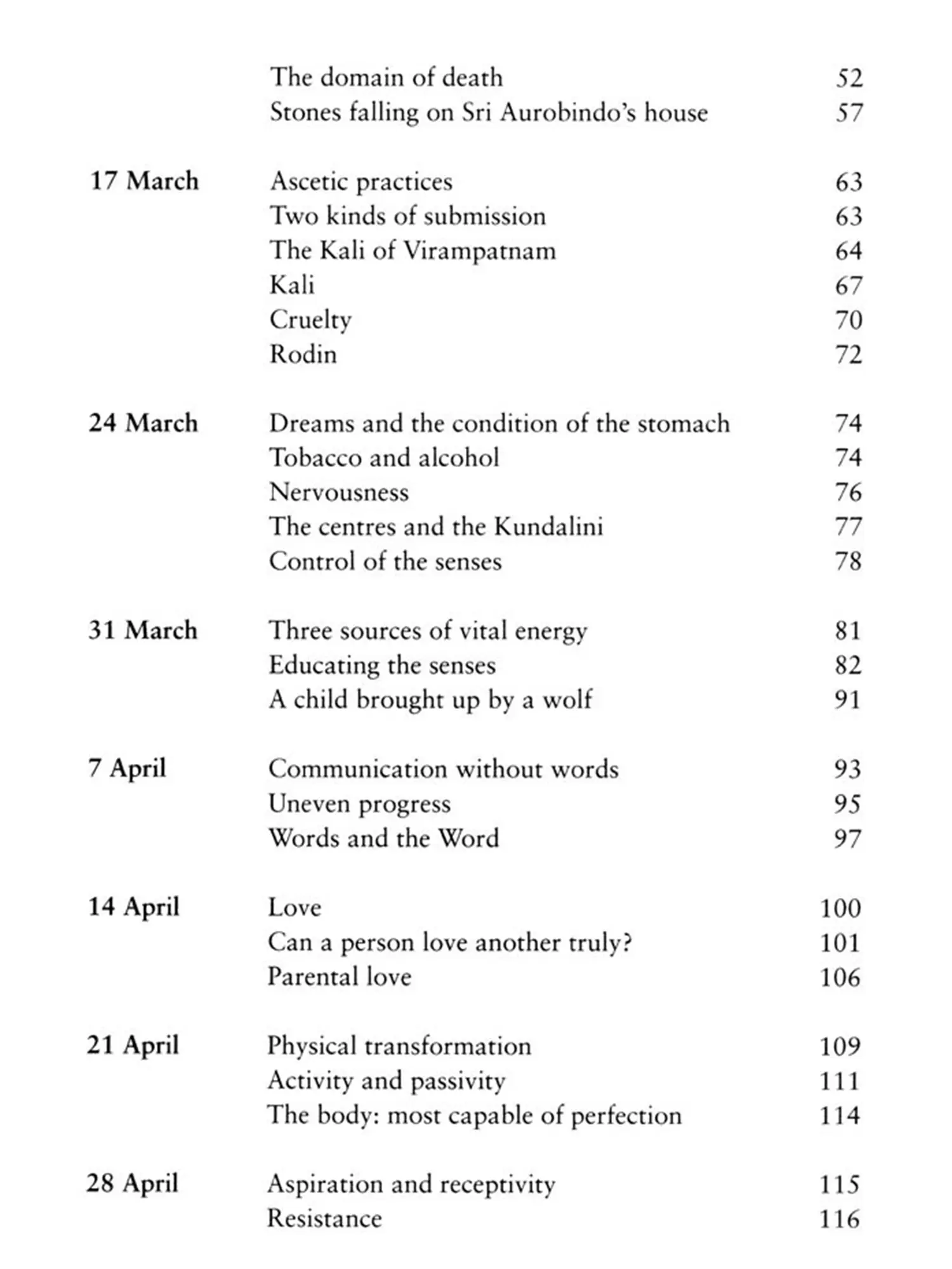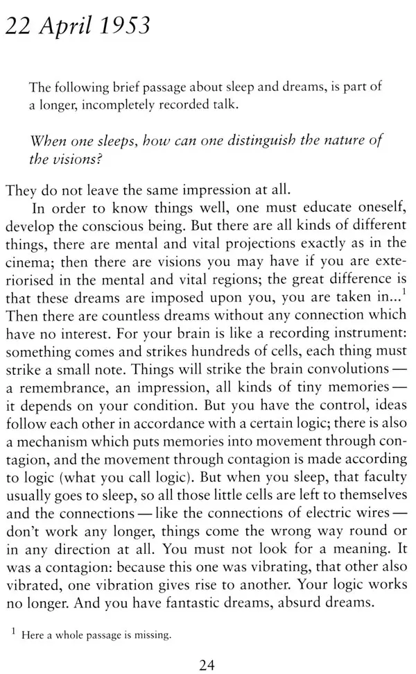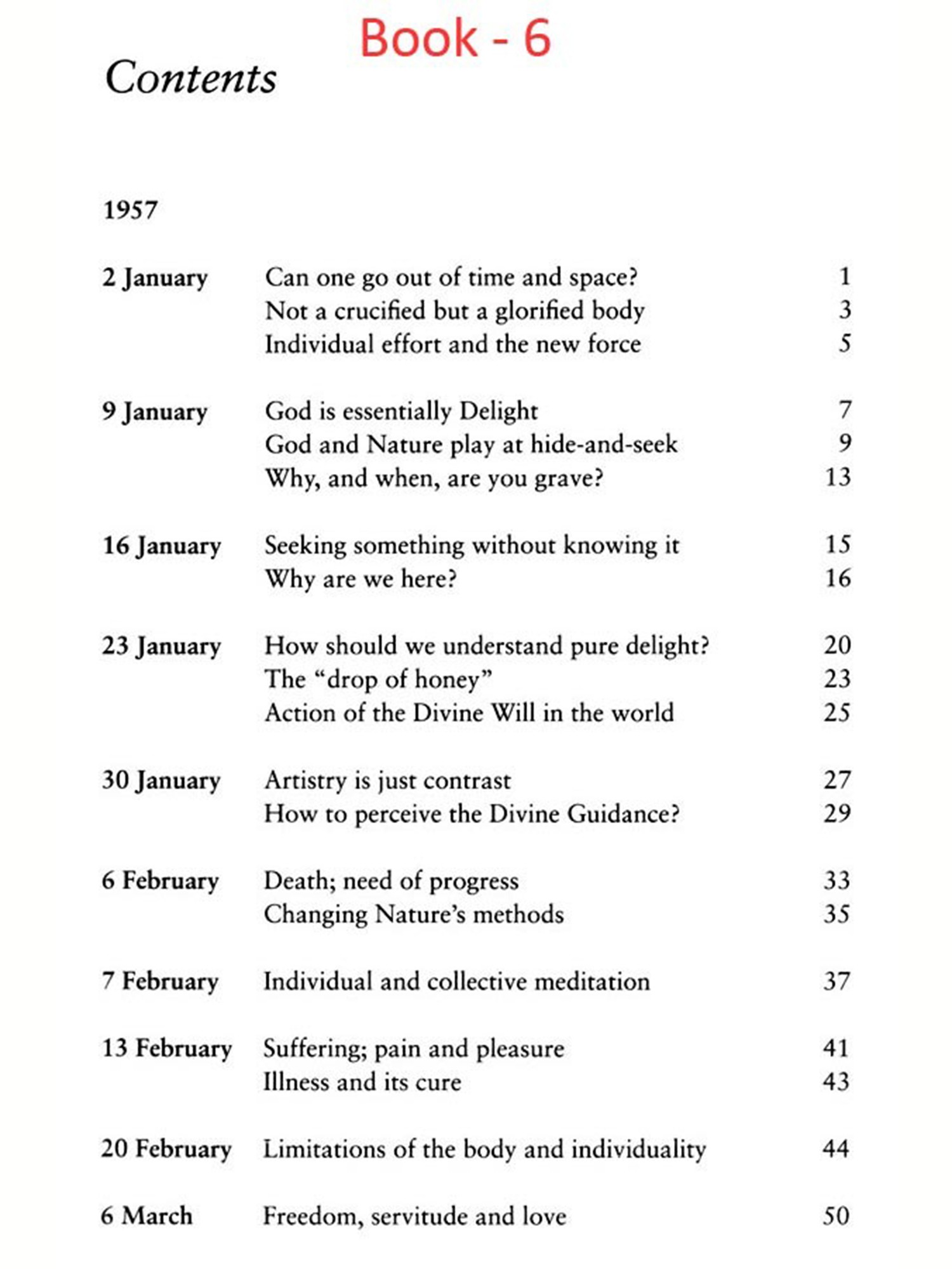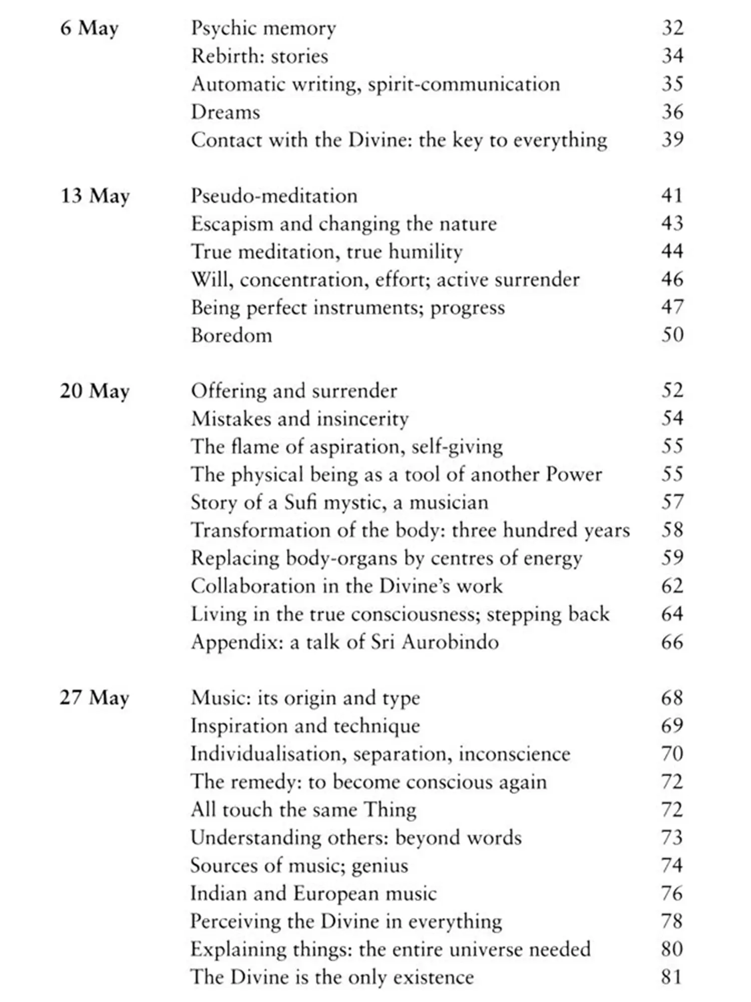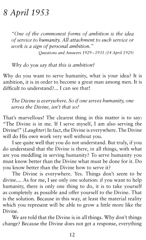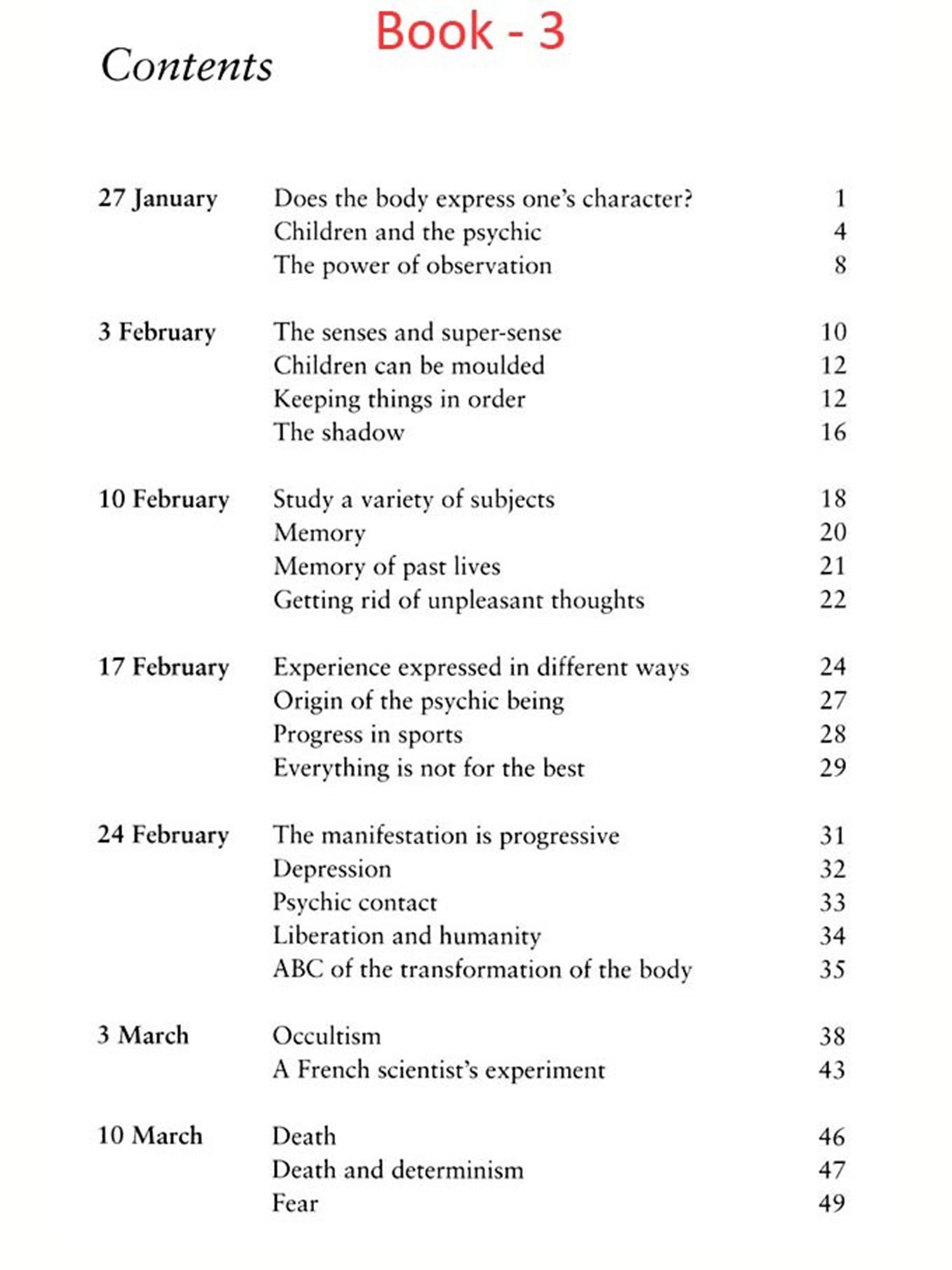 Questions and Answers 1950-1951 contains conversations of the Mother with members of the Sri Aurobindo Ashram and students of the Ashram's school. For most of this period the Mother answered questions about some of her essays on education and her conversations of 1929, which deal with various aspects of spiritual life. Towards the end she discussed some letters of Sri Aurobindo and his book The Mother.