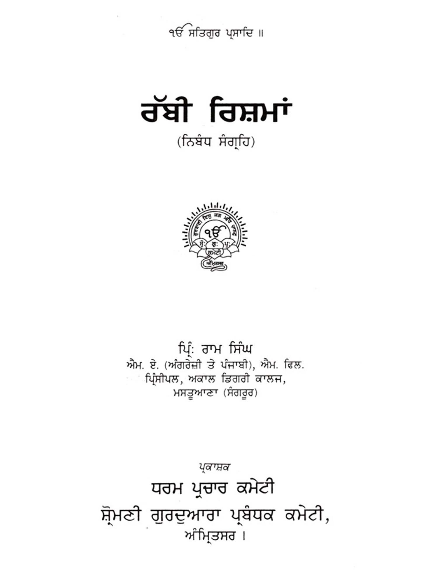 ਗੁਰੂ ਨਾਨਕ ਬਚਨਾਵਲੀ: Sayings of Guru Nanak- A Dictionary of the Thought of Guru Nanak Dev (Punjabi)