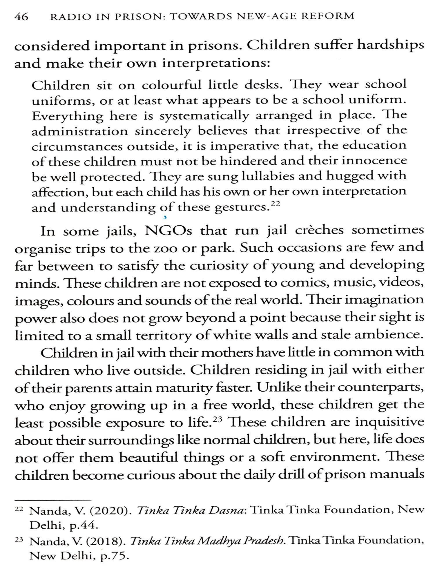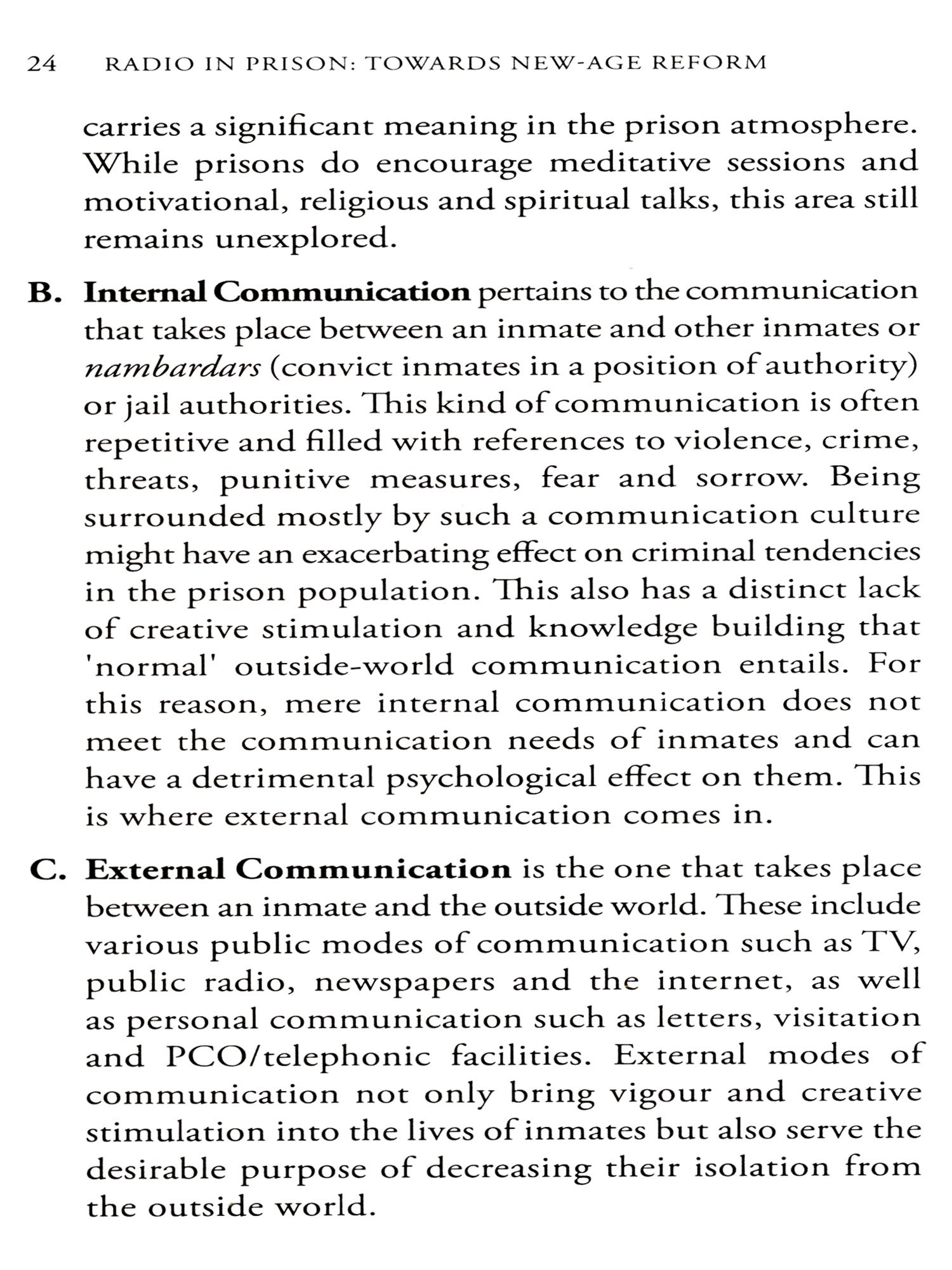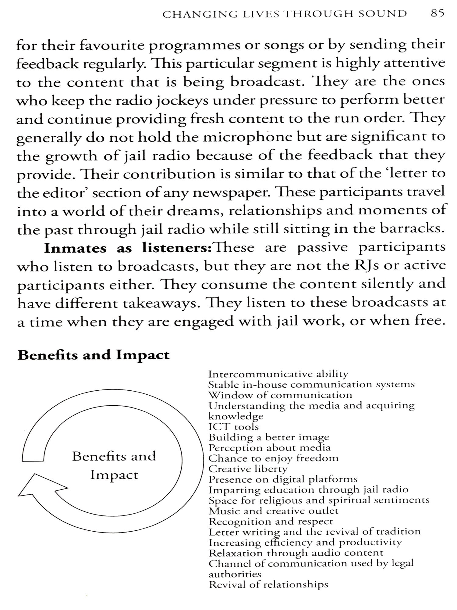 Later, I decided to take up action-oriented work on radio in prisons. This is an ongoing journey that attempts to build on the contributions of inmates to promote a culture of establishing newsrooms in jails, training inmates as Radio Jockeys (RJs) for radio production, musical compositions, paintings, active engagement with the Tinka Prison Research Cell, documenting and preserving prison literature and art through exclusive Tinka Jail Radio podcasts-all these initiatives transformed jails into creative hubs. Several participants (both inmates and staff) volunteered their time to share stories and facts related to the unexplored territories of prison life. These prolonged, conversations with former inmates and their families. visits to numerous prisons across India and the prisons of Norway and Mauritius have added to this experience. Presenting a paper on prison radio in Madrid, Spain, and representing India at the first international prison radio conference in Oslo, Norway, gave me confidence that the Tinka Model of Prison Radio is certainly unique and systematic.