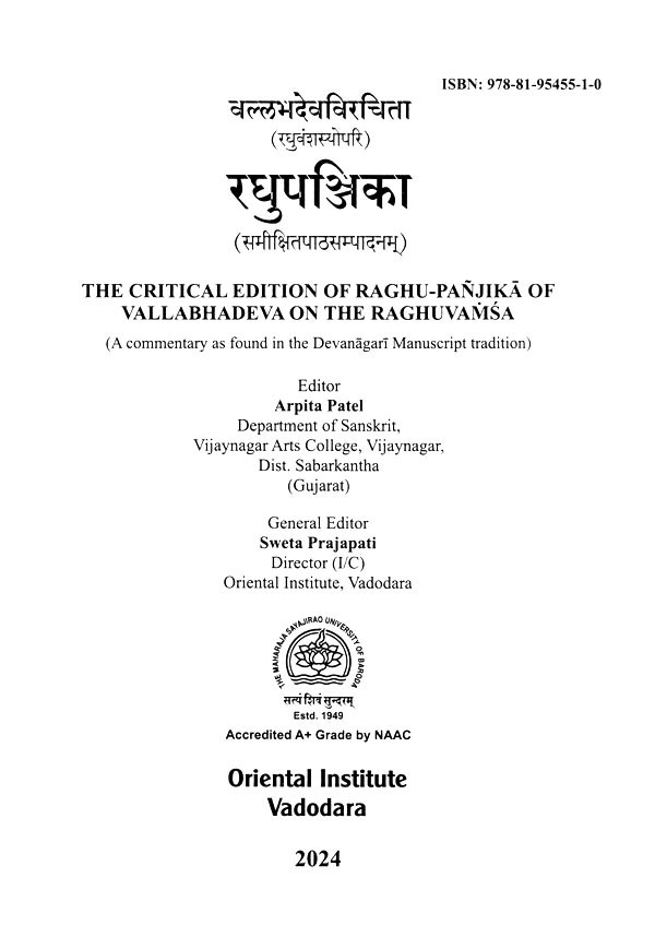 It gives me immense pleasure to present before the world of scholars "The Critical Edition of Raghupanjika of Vallabhadeva on the Raghuvamsa", an earliest commentary composed in tenth century on the celebrated epic Raghuvamsa by Kalidasa edited by Dr. Arpita Patel. The present work is a Ph.D. thesis submitted by the editor at Gujarat University, Ahmedabad in the year 1998. The popularity of this commentary is evident from the number of manuscripts of Raghupanjika (named so in Devanagari tradition) alias Raghupancika (named so in Sarada tradition) available in various manuscript repositories in India and abroad. This particular critical edition is prepared on the basis of Devanagari Manuscripts. Prior to this in 2003 two scholars, Dominic Goodall and Harunaga Isaacson jointly brought to light the critical edition of Raghupancika by Vallabhadeva (upto six sargas) based on Sarada Manuscritps. Both the editors remark: "Certainly a full commentary on the Raghuvamsa would be a marvelous thing to have and a pleasure to write, but a pleasure that we may have to leave to others." Therefore it is an overwhelming moment for Oriental Institute to present the Raghupanjika in its full form for the first time after a long gap of almost 20 years. Prior to Goodall's edition various editors like Shankar Pandit, Gopal Raghunath Nandargikar and Narayan Ram Acharya have referred to many passages from Raghupanjika in their edition of Mallinatha's commentary on Raghuvamsa. Vallabhadeva was the first commentator of 10th century hailed from Kashmir who wrote commentary on Raghuvamsa Other commentators like Mallinatha, Arunagirinatha and Hemadri flourished after Vallabhadeva. Therefore besides exploring the oldest commentary, restoring the original readings of Raghuvamsa nearer to what Kalidasa might have intended will be an additional outcome of this work in future.
