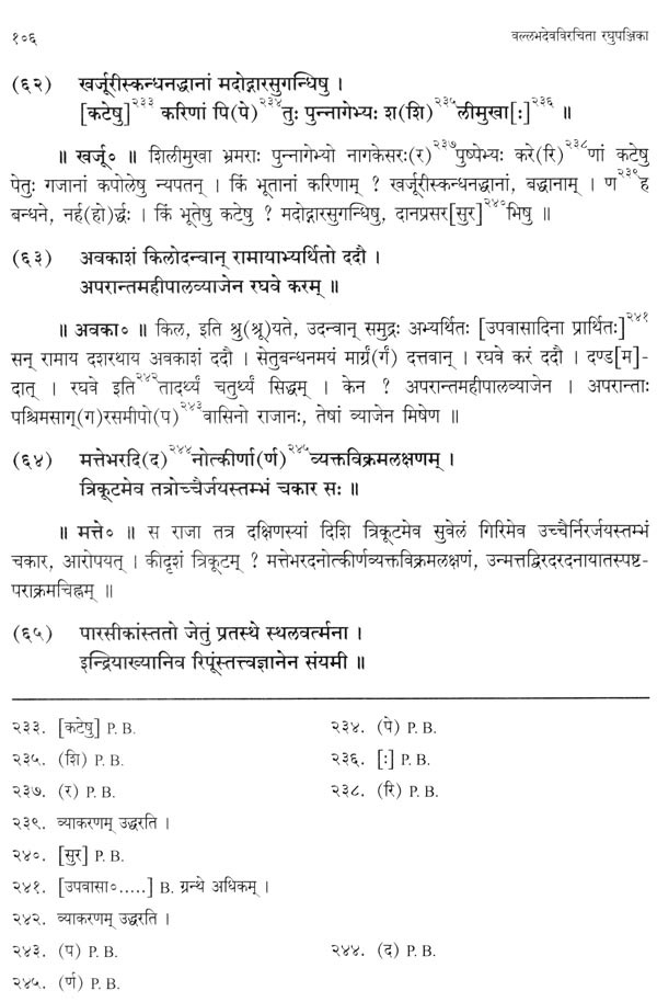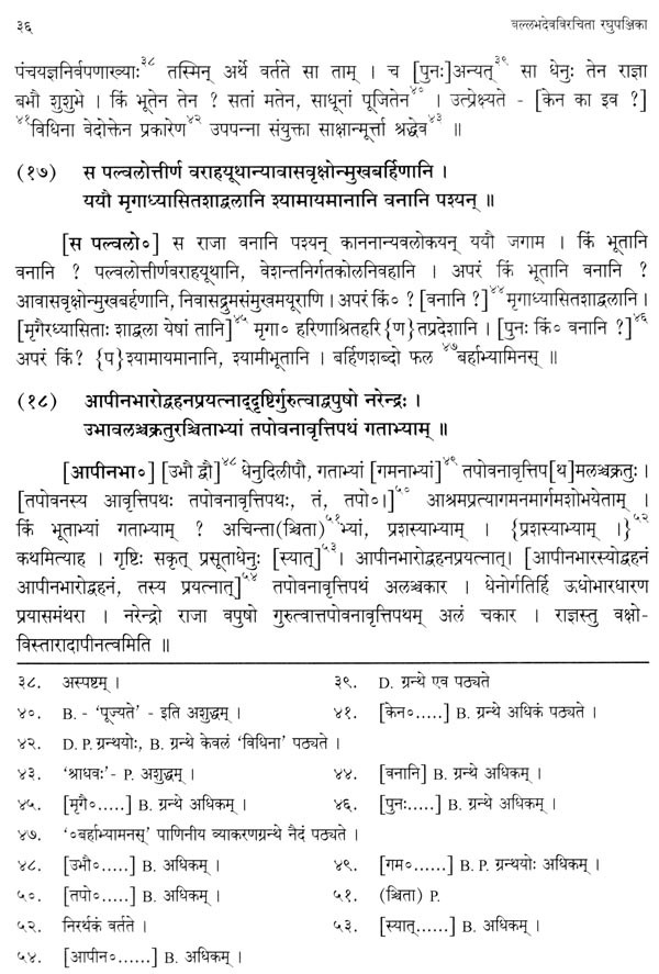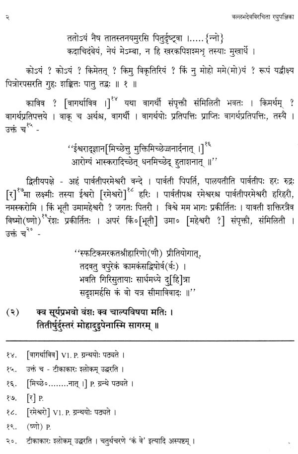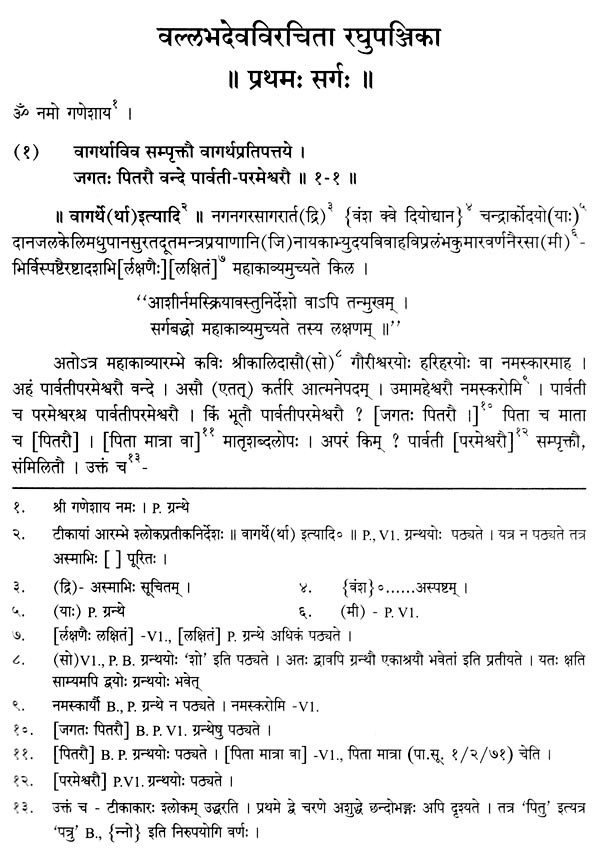 I am glad to put forward The Critical Edition of a commentary called "Raghu-panjika" of Vallabhadeva on the Raghuvamsa (A commentary as found in the Devanagari Manuscript tradition) of Kalidasa. As we know the most popular and well-designed Mahakavya of the poet, Kalidasa is the Raghuvamsa and there are more than 25 commentaries written on the same. Some of them are published so far, but among all these commentaries, Vallabhadeva's commentary, e.g. "Raghu-panjika" which stood first in the chronological order, was not published in it's full length, i. e. from first canto to nineteenth canto till date. So, the galaxy of Sanskrit scholars will be happy and benefited by this publication for their deeper understanding of this precious epic. One can compare this commentary along with other published commentaries too, to find out the different variants, which are available in the Devanagari version of this commentary. It is quite possible that the version of Sarada manuscript tradition of the commentary may provide some other type of variants than this Devanagari tradition. It is very difficult to come at any definite conclusion about the oneness of these two different versions of the commentary. So, I hope that the Devanagari version of this commentary, in its full length, will provide a concrete material to investigate the problem with some evidence.