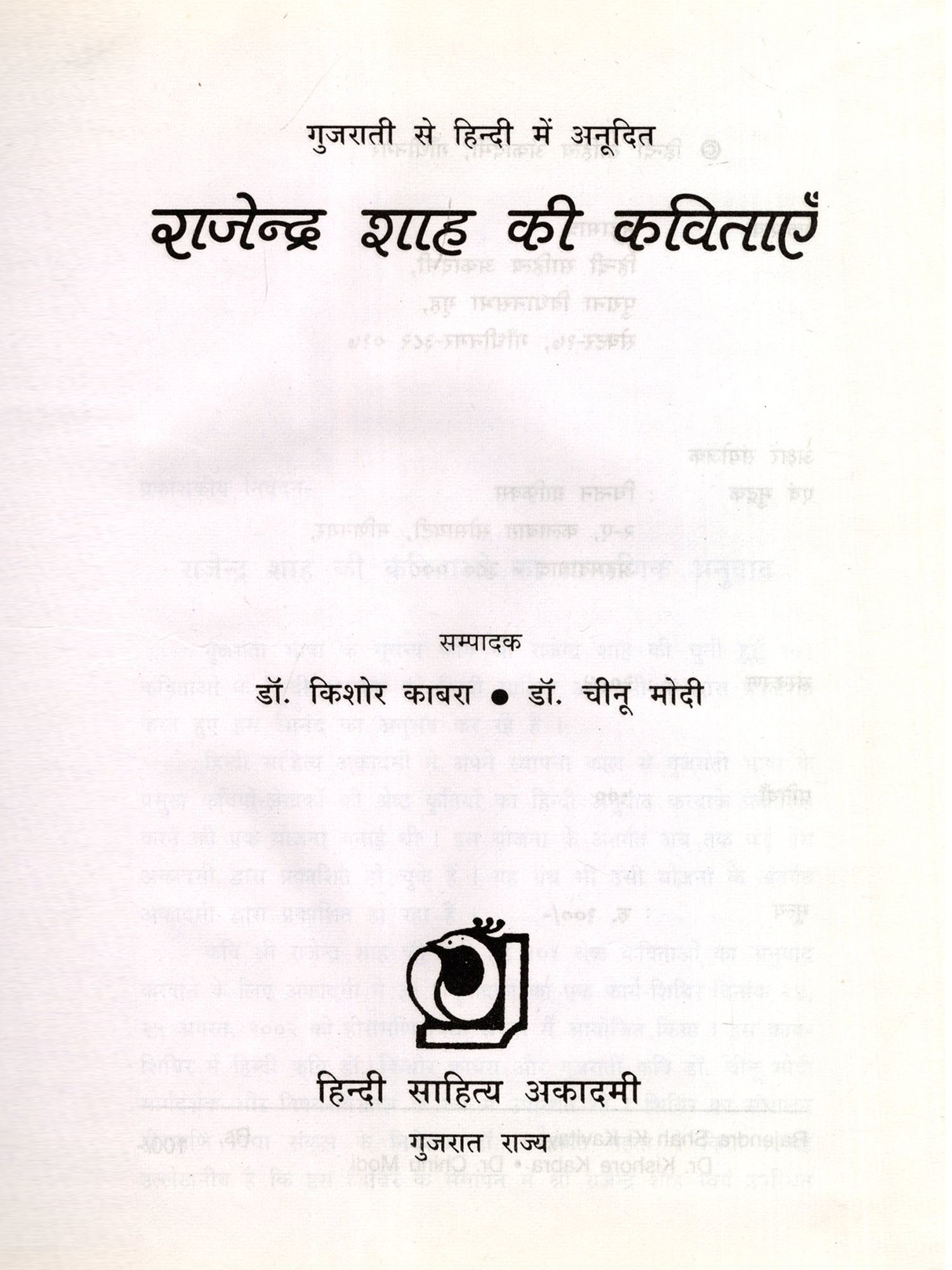 गुजराती भाषा के मूर्धन्य कवि श्री राजेन्द्र शाह की चुनी हुई १०१ कविताओं के हिन्दी अनुवाद को हिन्दी साहित्य अकादमी के द्वारा प्रकाशित करते हुए हम आनंद का अनुभव कर रहे हैं।