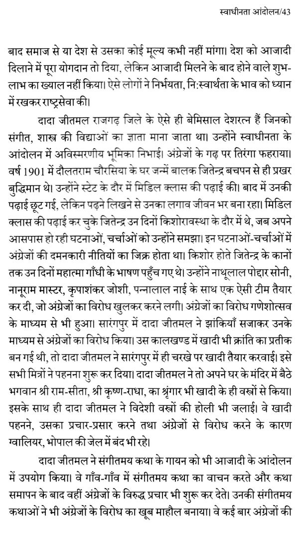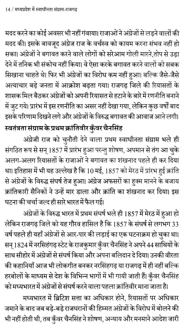 स्वाधीनता संग्राम के दौरान हुई घटनाओं पर केन्द्रित मेरा यह लेखन ज्ञात-अज्ञात शहीदों के प्रति आदरांजलि है। विश्वास है कि यह लेखन राजगढ़ जिले के स्वाधीनता आंदोलन के विषय में तथ्यपूर्ण, रोचक, संग्रहणीय जानकारी उपलब्ध कराने में सफल होगा।