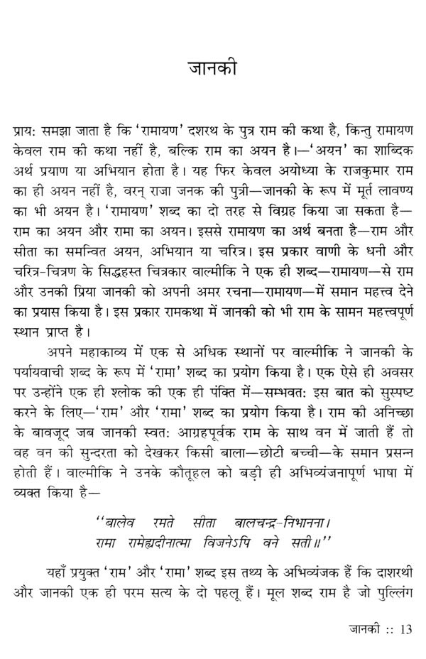 भारतीय चिन्तन के क्षेत्र में विख्यात अर्थवेत्ता व परमार्थवेत्ता श्री चिन्तामणि देशमुख और उनकी पत्नी श्रीमती दुर्गावाई देशमुख की प्रेरणा से प्रस्तुत रचना का प्रणयन हुआ था। आज से लगभग 14 वर्ष पहले की बात है जब श्रीमती दुर्गाबाई देशमुख ने अपनी संस्था 'आन्ध्र महिला सभा' की मुख पत्रिका 'विजयदुर्गा' के लिए एक विचारवर्धक लेख लिखने का मुझसे अनुरोध किया था अँग्रेजी और तेलुगु में प्रकाशित इस पत्रिका के लिए मैंने अंग्रेजी में लेख भेजा था जिसका शीर्षक था: 'जानकी इन वाल्मीकि'। देशमुख दम्पती को यह लेख इतना अच्छा लगा कि वे इसे लेखमाला का रूप देना चाहते थे। उनकी इच्छा के अनुसार जानकी से आरम्भकर शूर्पणखा तक रामायण के विभिन्न महिला पात्रों पर मैंने कुल मिलाकर बारह लेख दिये। यह लेखमाला 'विजयदुर्गा' के बारह अंकों में लगातार एक वर्ष तक प्रकाशित हुई और पाठकों की प्रशंसा से प्रेरित होकर 'आन्ध्र महिला सभा' ने उसे 'वीमेन इन वाल्मीकि' के नाम से पुस्तकाकार में प्रकाशित किया। लेखमाला के रूप में पहली बार अँग्रेजी में प्रकाशित इस रचना के प्रबुद्ध पाठकों में से प्रमुख थे भारत के तत्कालीन उपराष्ट्रपति श्री बी.डी. जत्ती, जिनका 'आमुख' इस प्रयास का प्रभाषक है। यह सारा काम 1976 में हुआ था।
