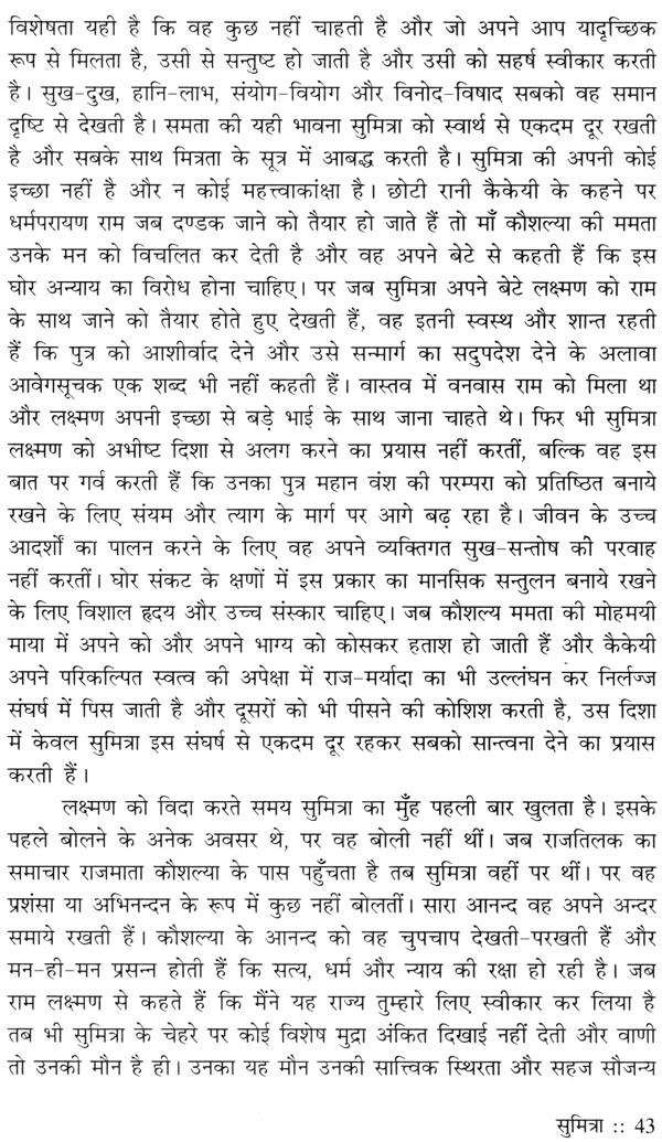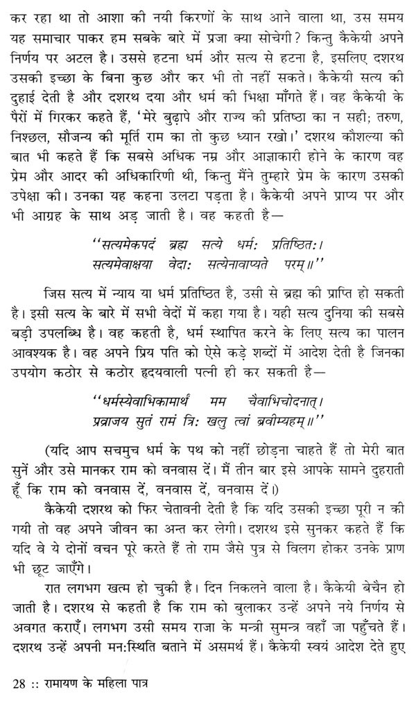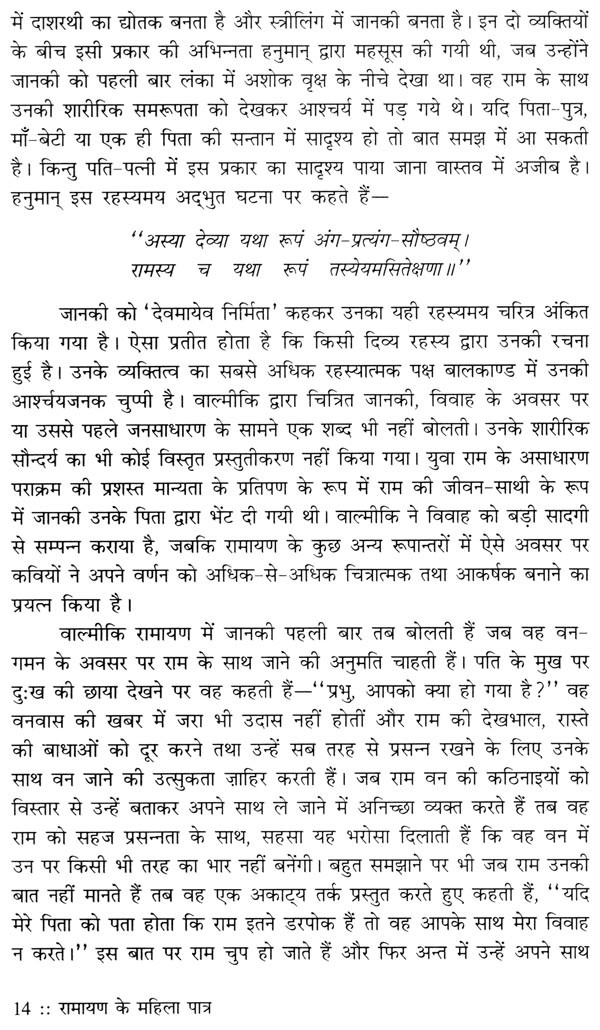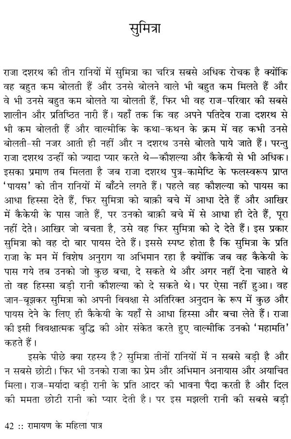 बाद में अखिल भारतीय रामायण सम्मेलन में सम्मिलित होने के लिए जब मैं चित्रकूट गया तो वहाँ पर महात्मा गाँधी के अनुयायी और 'गाँधी मार्ग' के सम्पादक बाबू भवानी प्रसाद मिश्र से भेंट हुई। इस अँग्रेजी पुस्तक पर उनकी सुरुचिपूर्ण दृष्टि पड़ी तो उन्होंने इसका हिन्दी रूपान्तर 'गाँधी मार्ग' में लेखमाला के रूप में प्रकाशित किया। भवानी बाबू की भव्य भावना का परिणाम है प्रस्तुत रचना-'रामायण के महिला पात्र'। न मालूम, किस समाहित क्षण में इस रचना की परिकल्पना मेरे मन में उदित हुई, और उसी का प्रभाव है कि आज यह रचना तेलुगु, कन्नड और बांग्ला में भी उपलब्ध हो रही है। वास्तव में रामायण पिछले तीस वर्षों से लगभग मेरे बहिः प्राण के समान मुझे सहारा देती रही है। रामकथा का भारतीय जनजीवन के साथ भी लगभग इसी प्रकार का सम्बन्ध रहा है। प्राचेतस की प्रतिभा ने इस कथा को इतना रमणीय और मननीय शैली में प्रस्तुत किया कि यह केवल कथा न रहकर गाथा बन गयी है। दैनन्दिन जीवन में मानव-मन को सम्बल और मनोबल प्रदान करने वाली अक्षयनिधि इस महाकाव्य में निहित है। रामकथा के पात्र केवल कवि-कल्पना से प्रसूत कमनीय पात्र नहीं हैं बल्कि जीवन के प्रत्येक क्षण में हमारे अनुभव में आने वाले यथार्थ और मननीय पात्र हैं। रामकथा के समालोचक इन पात्रों को कई दृष्टियों से परखने, समझने और समझाने का प्रयास करते रहे। समीक्षण का यह क्षेत्र इतना उर्वर और व्यापक है कि इस सम्बन्ध में जितना कहा जाय, उतना और कहने को रह जाता है। प्रस्तुत विश्लेषण में मैंने इसी समीक्षण को आत्म-निरीक्षण का रूप देने का विनम्र प्रयास किया है।