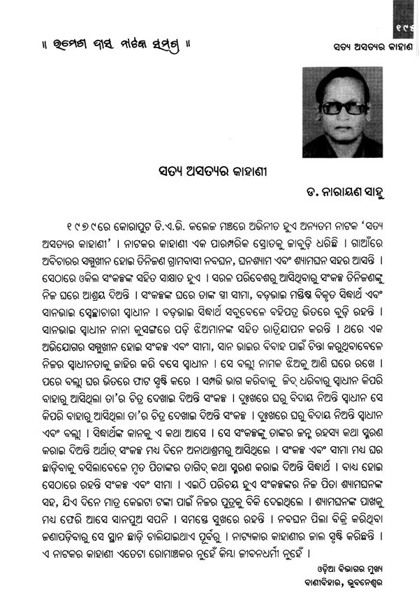 ସରୋଜ ମିଶ୍ରଙ୍କ ନାଟକ ଚତୁଷ୍ଟୟ- Saroj Mishra's Play Chatustaya (Oriya)