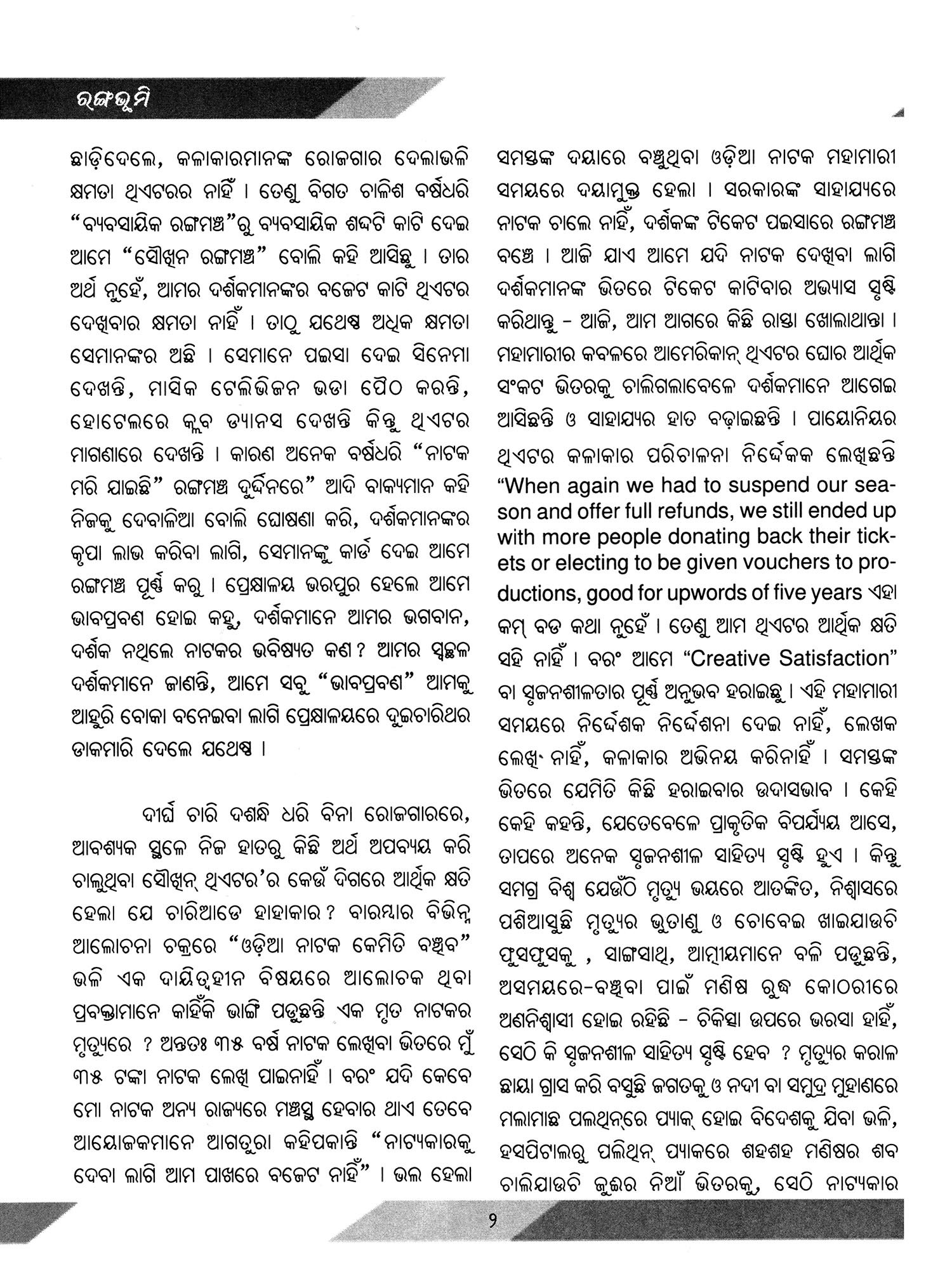ରଂଗଭୂମି- Ranga Bhumi: Eighth Issue 1997 (An Old and Rare Book in Oriya)