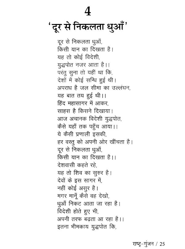 'राष्ट्र-गुंजन - राष्ट्र के प्रति प्रेम और चेतना से ओतप्रोत गीतों की एक खूबसूरत माला है।"