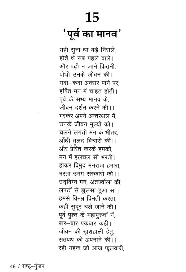 देश की सामाजिक, आर्थिक, राजनीतिक तथा सामरिक आवश्यकताएँ समय और परिस्थितियों के अनुसार बदलती रहती हैं। आज 21 वीं शताब्दी में देश को नए ज्ञान और नए स्वाभिमान की आवश्यकता है। इसी भावना से प्रेरित होकर 'राष्ट्र-गुंजन" के गीतों से स्वर उठते हैं -