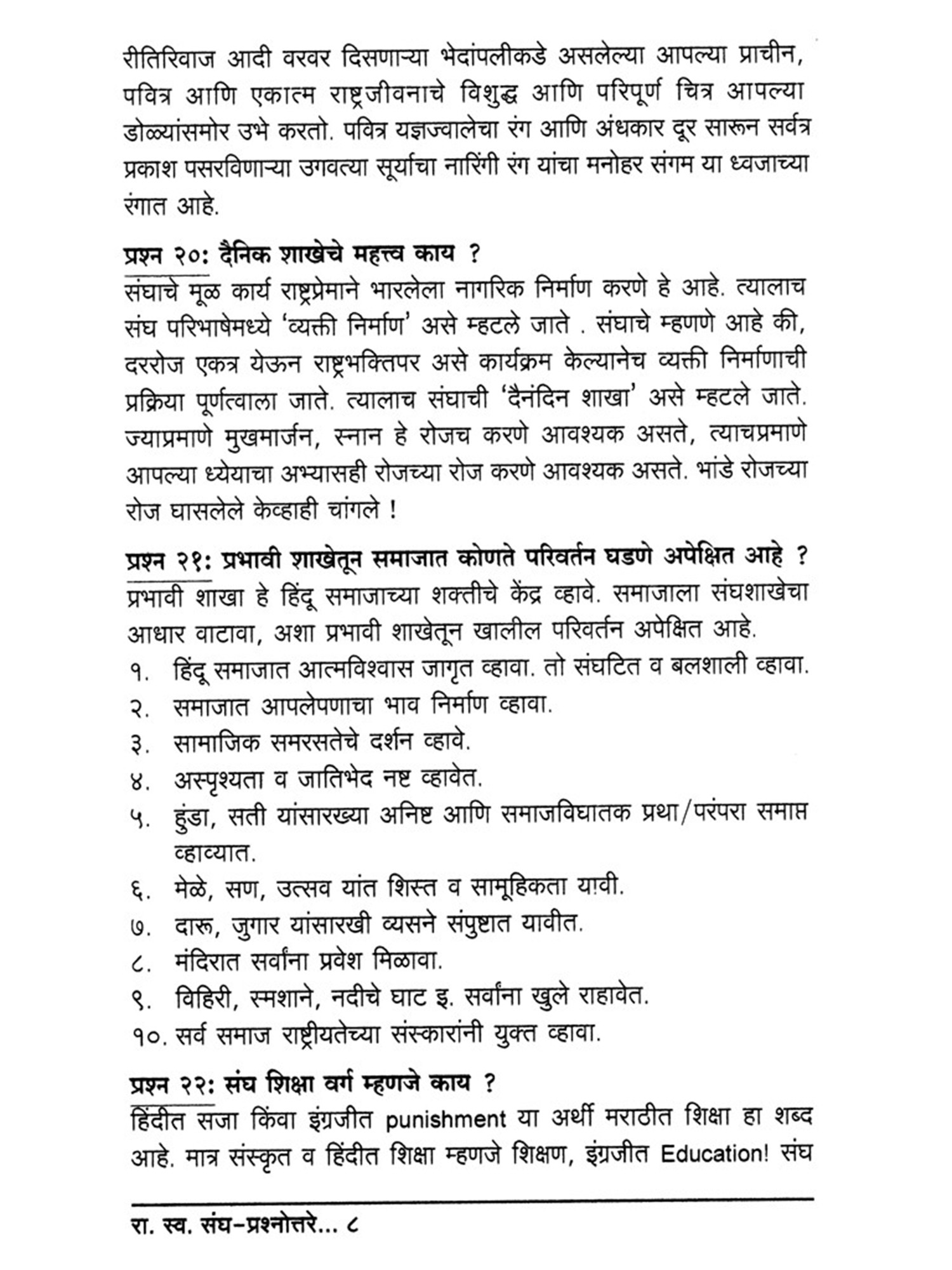 राष्ट्रीय स्वयंसेवक संघ लक्ष्य व कार्य- Rashtriya Swayamsevak Sangh Goals and Work (Marathi)