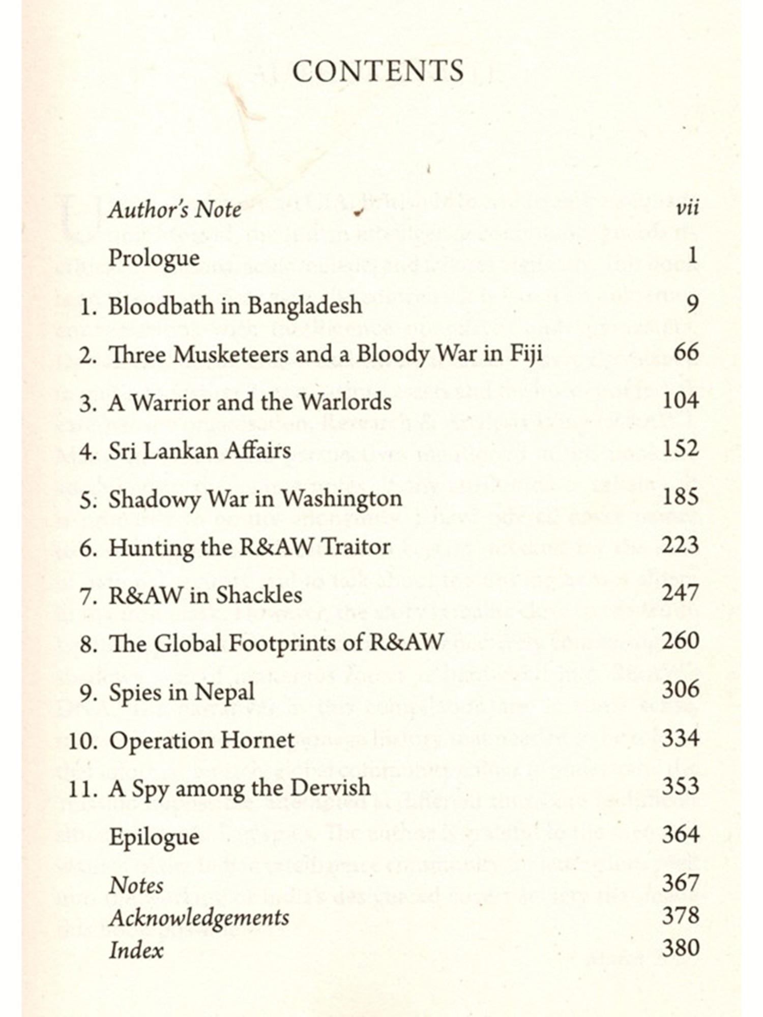 I have also benefitted from the generous help and suggestions of many former R&AW and Foreign Service officers who shared intricate facts on some of the complex events. I owe profound thanks to my closest friends, Dalip Singh, Ajmer Singh and Gyanant Singh. This book has had many inspirations. But two people stand out for encouraging me to go beyond 800 words: Ravi Shankar, a senior journalist and Karthika V.K., the publisher of Westland. Special thanks to my editor Kushal Gulab who worked on the structure and content of the manuscript with great skill and complete devotion. I also wish to express my gratitude to other outstanding members of Westland Publications for their immense contributions, especially Niyati Bhat and Vidhi Bhargava. My family deserves special mention for accepting m abrupt absence from their lives at regular intervals since writ this book has been consuming.
