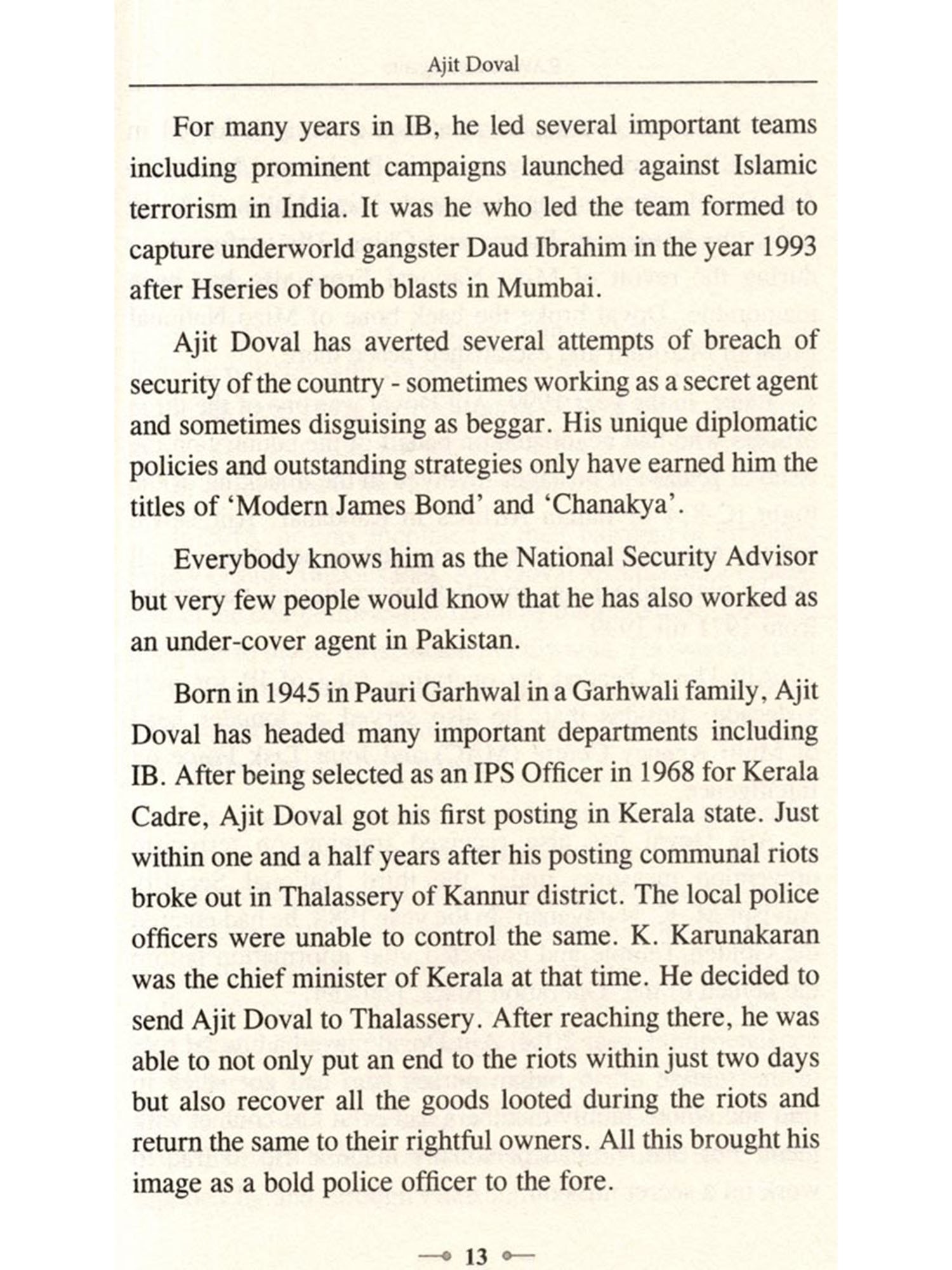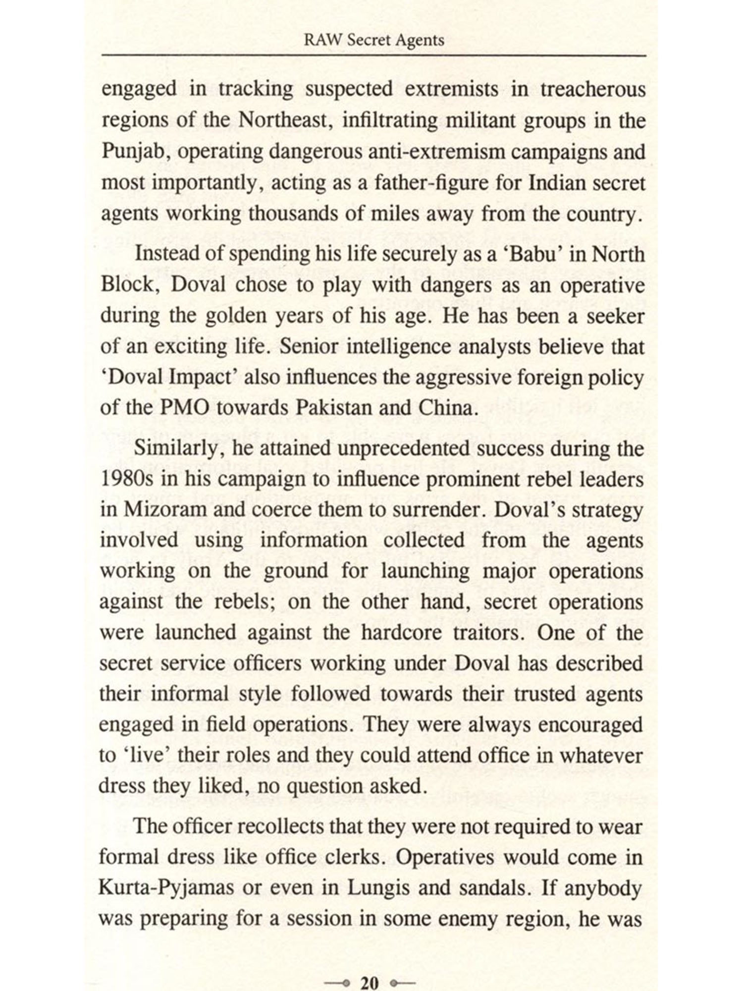 T he emotional stories of the secret agents compiled in this book unveil the tragic fact that the agents mentioned therein were rewarded with hellish lives in their sunset years after they returned having ruined their youth in jails for years at length. For their livelihood, some of them had to pull rickshaws while some others had to work as labourers. Some of them were so traumatised that they lost their mental balance. But, as has been explained earlier, this is what the rule of this game is and that probably may not change in the years to come. The life of a spy is not like that of James Bond. They are just ordinary people performing extraordinary tasks. They are never required to disclose to anybody that they are secret agents, as they are not permit-ted to do that.