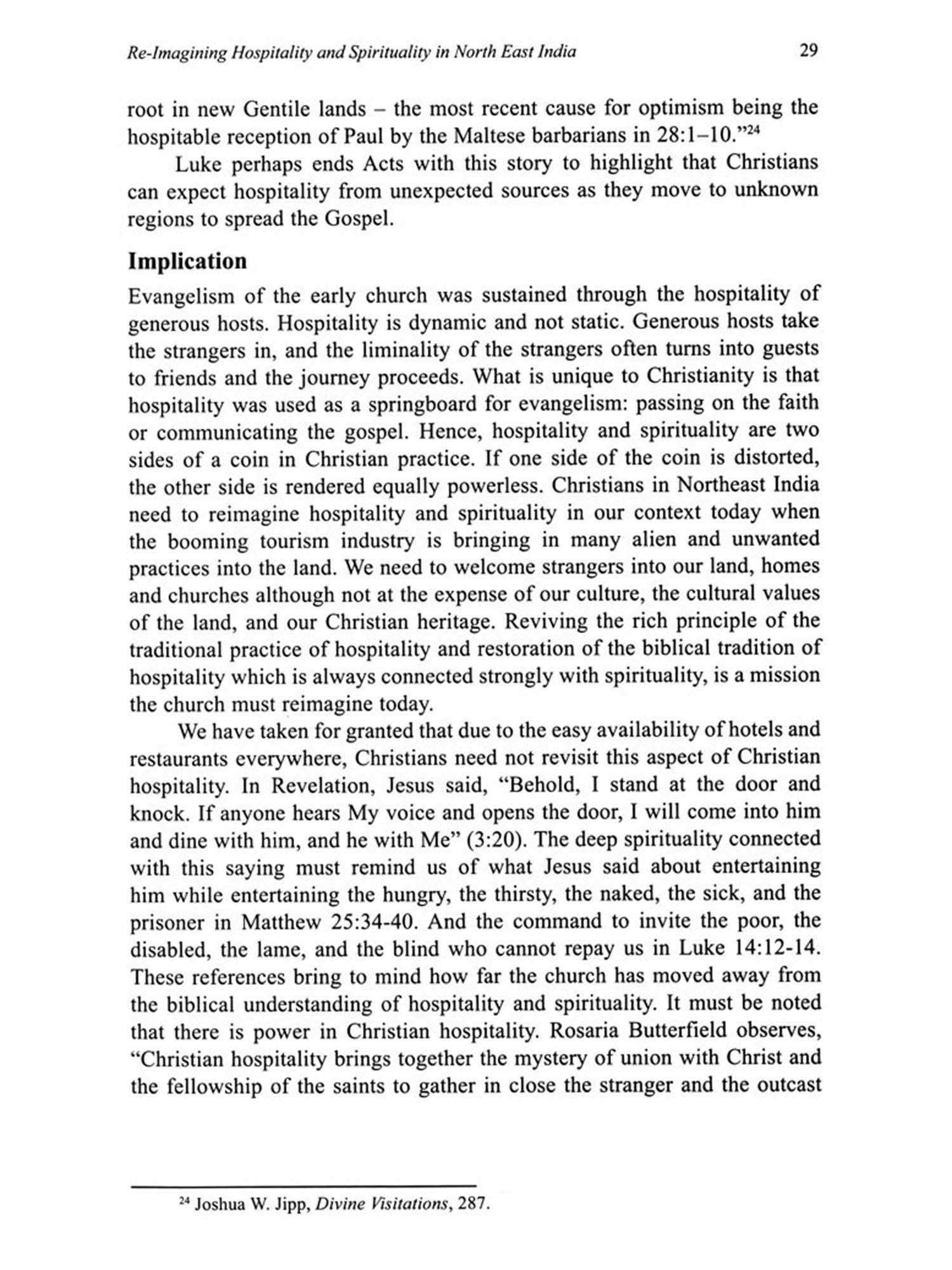 The book seeks to reimagine the concepts of hospitality and spirituality. In its exploration, it delves into the vibrant and diverse traditions of hospitality and spirituality practiced by various indigenous and tribal communities. These traditions offer invaluable insights into building community ties and fostering inclusive environments. Additionally, the book thoughtfully incorporates elements from biblical teachings and theological-ethical discourses, enriching the dialogue surrounding these important topics.