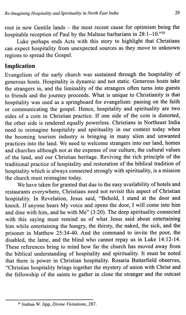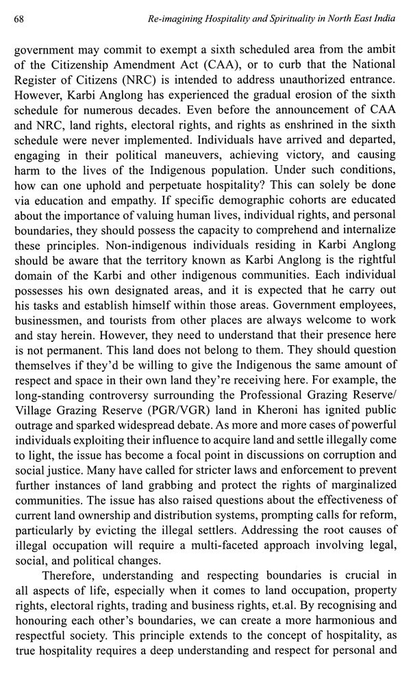 The book offers a comprehensive exploration of hospitality and spirituality, posing critical questions about their contemporary interpretations, particularly within the complex socio-cultural landscape of North East India. This region faces a myriad of challenges, including the effects of globalization, the boom in tourism, the plight of refugees and illegal migrants, ecological degradation, and ongoing ethnic and communal conflicts. Each of these issues has profoundly influenced the lives and identities of the local population.