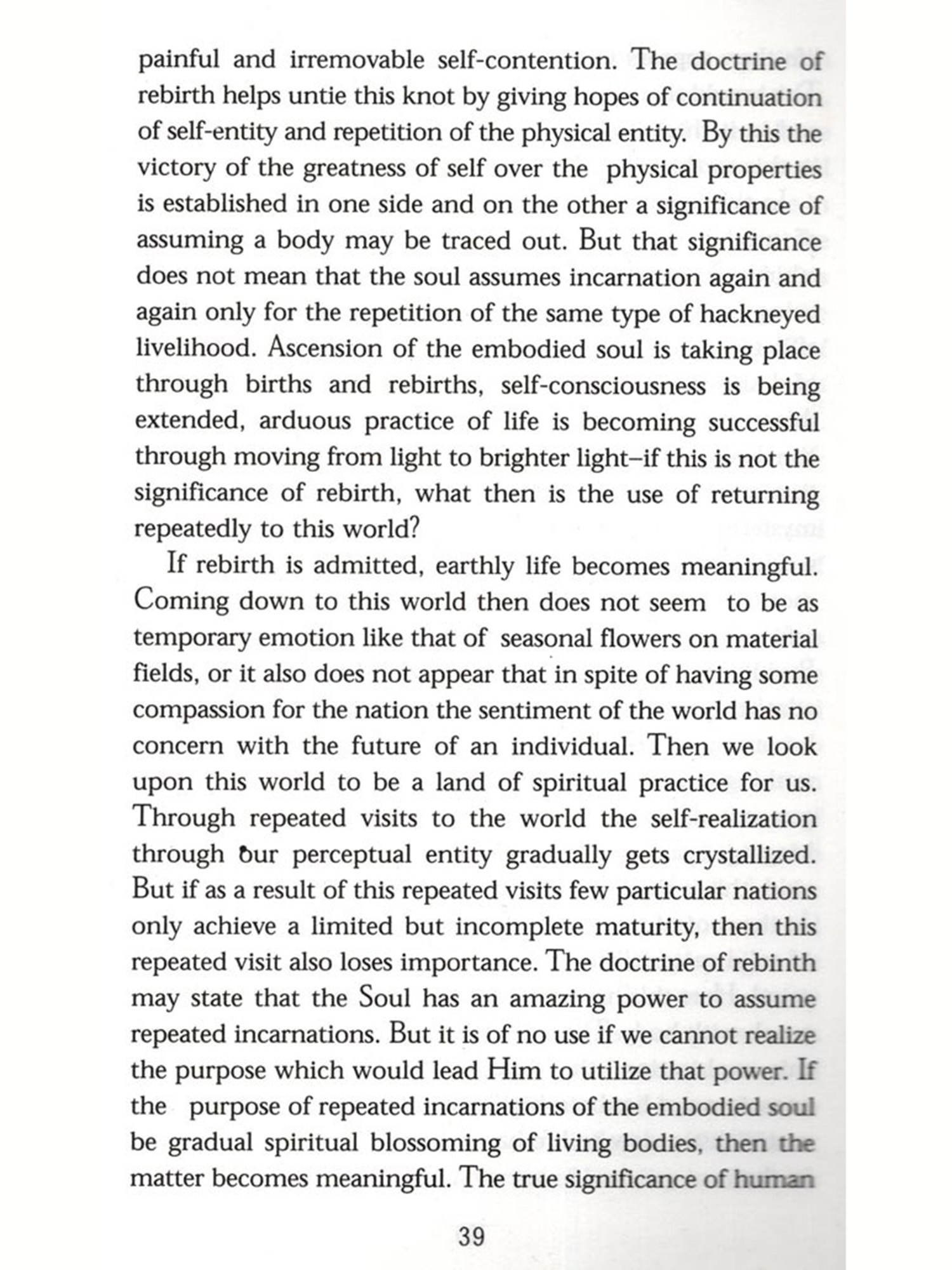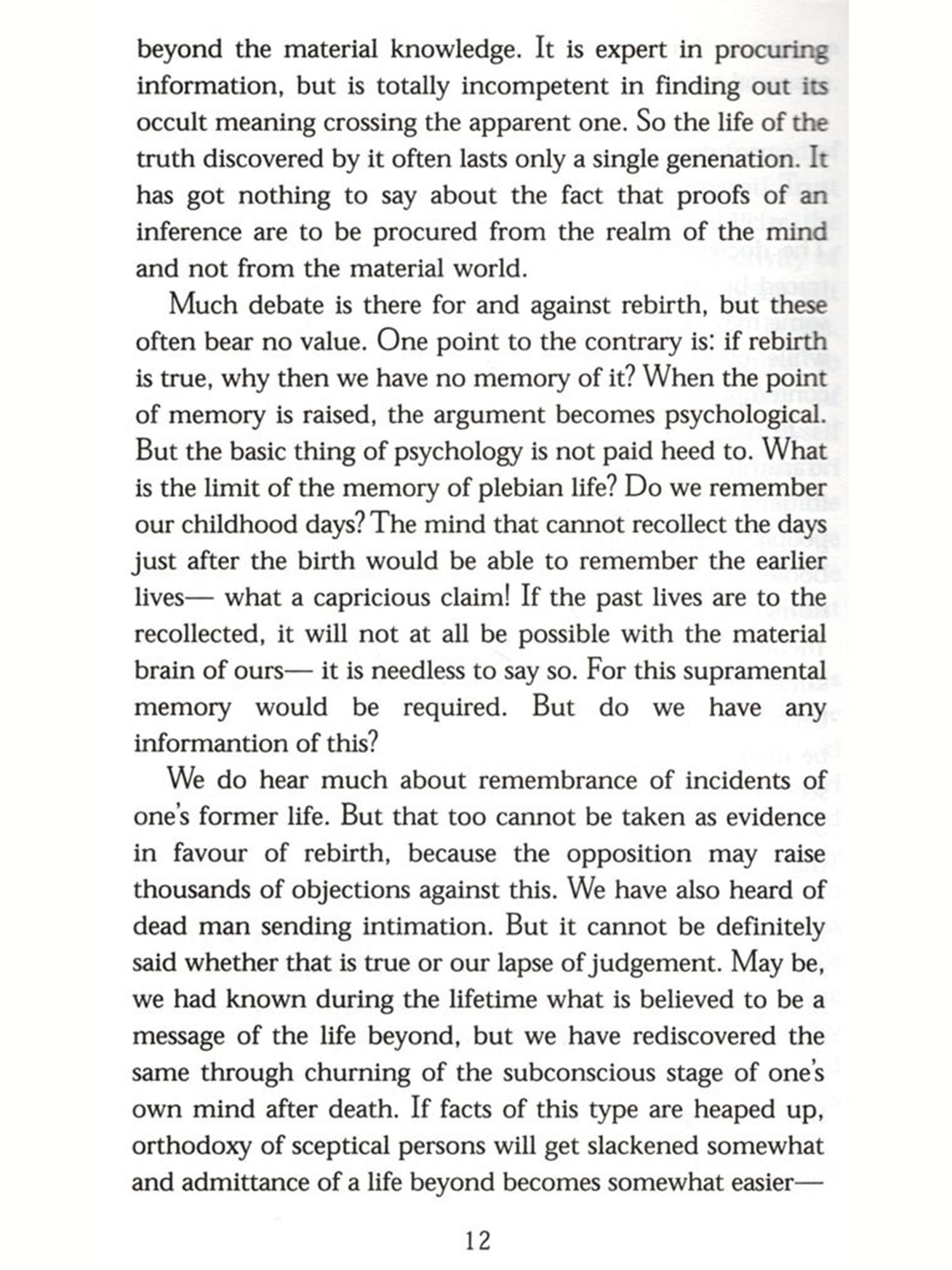 But the present generation of ours is quite uninformed of this rich heritage. Hopefully Sri Anirvan Halmavati Trust has come forward with a noble venture to publicize the literary works of Sri Anirvan. Aiming at the collectivity of the readers outside Bengal they have aspired to bring out English version of a number of Sri Anirvan's books. Considering the importance of the book "Punarjanma" to be, translated thus they vested the responsibility of translation on my humble self, which made me think myself blessed., "Rebirth" is the fruit of this venture. Here Sri Anirvan has dived deep into Sri Aurobindo's idea on the subject. Sri Aurobindo placed the subject against a large canvas of involution and evolution and dealt with the subject scientifically to show that there is no disagreement between science and spirituality in this case.